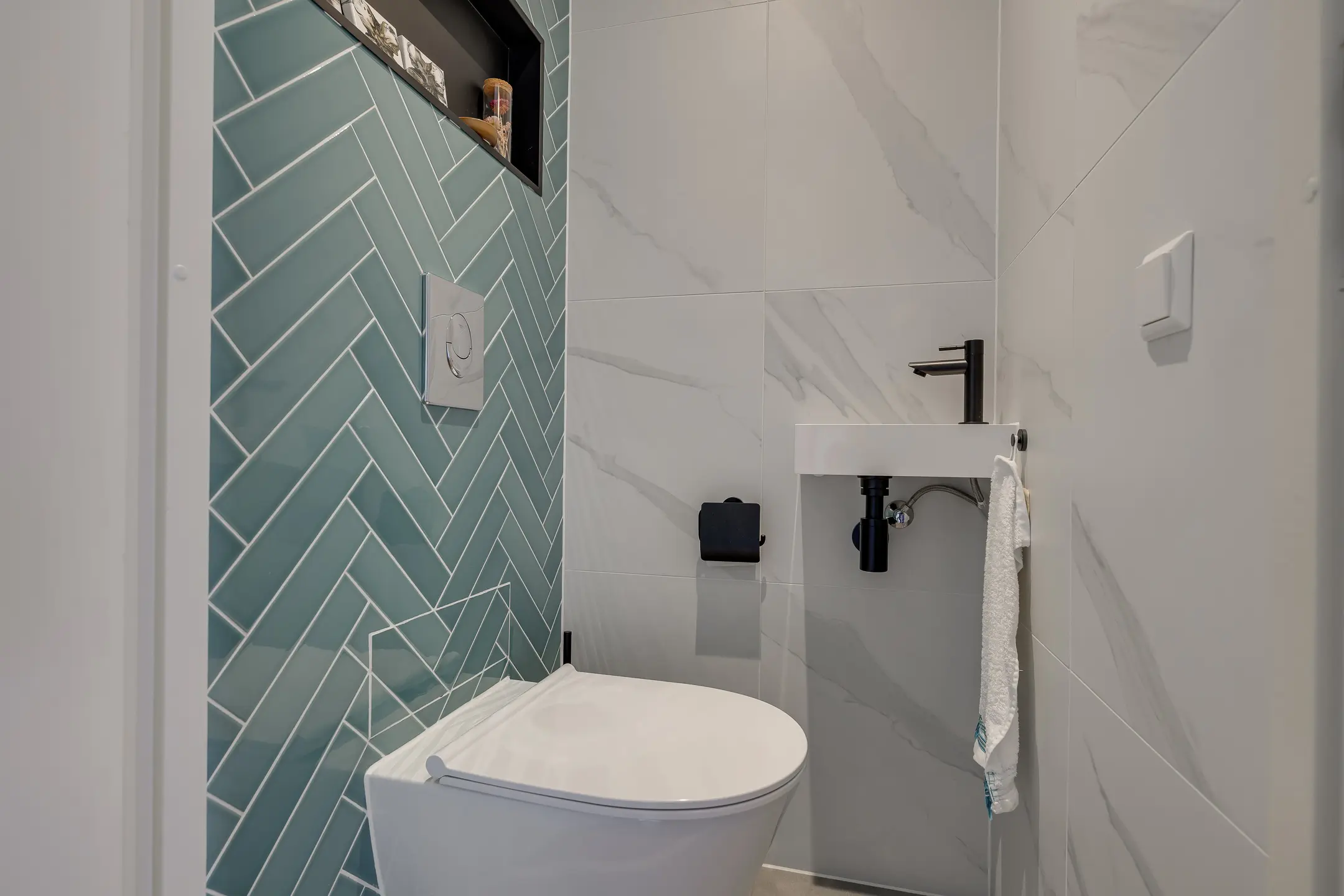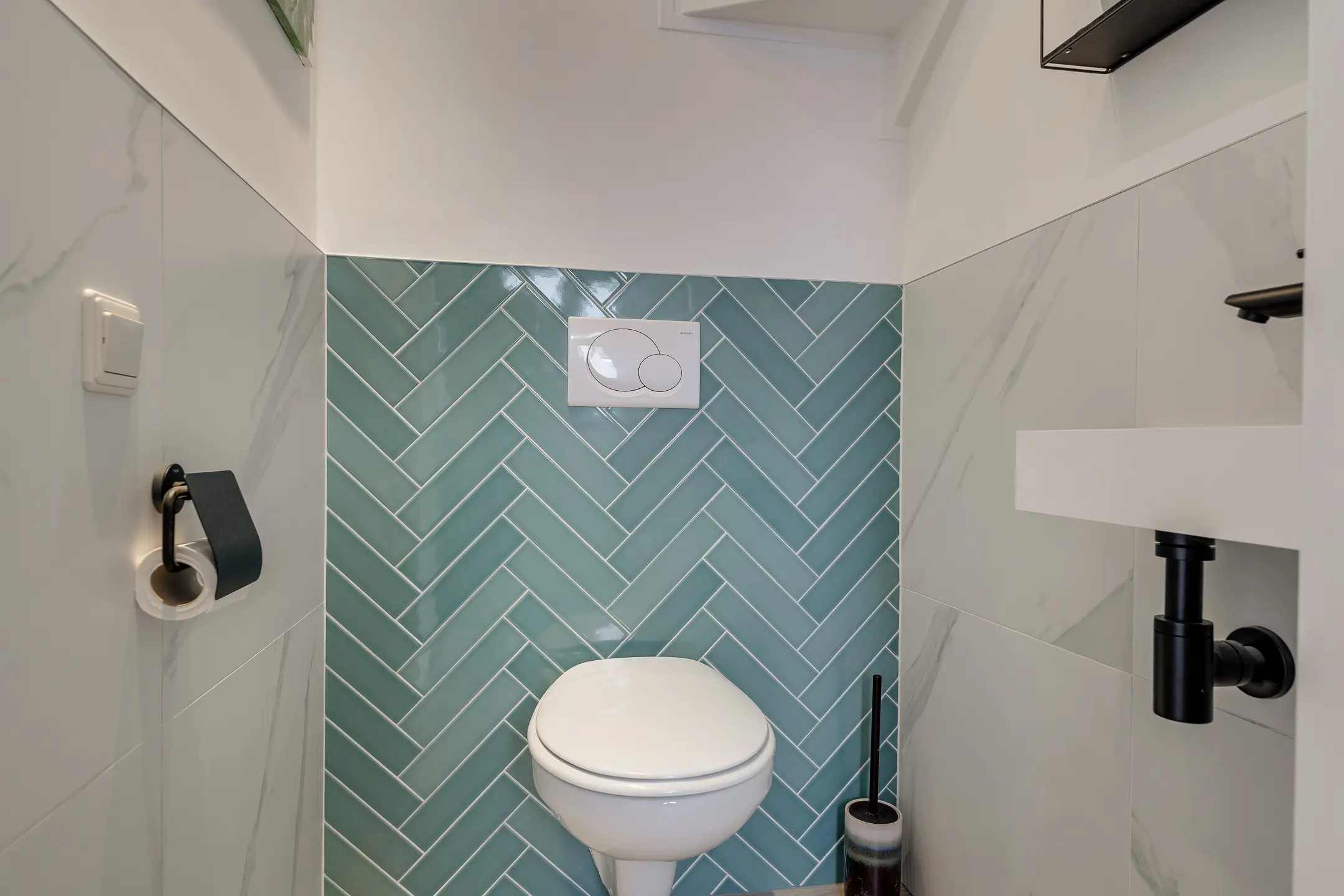 Het separate toilet op deze verdieping is in dezelfde stijl gecreëerd (2022).