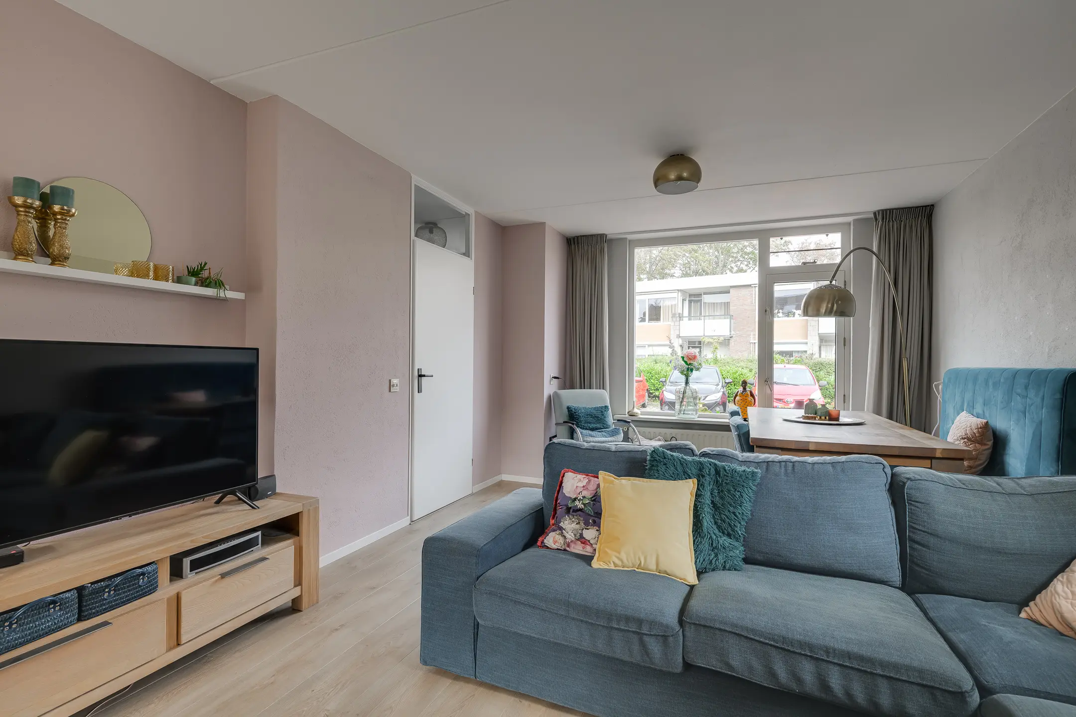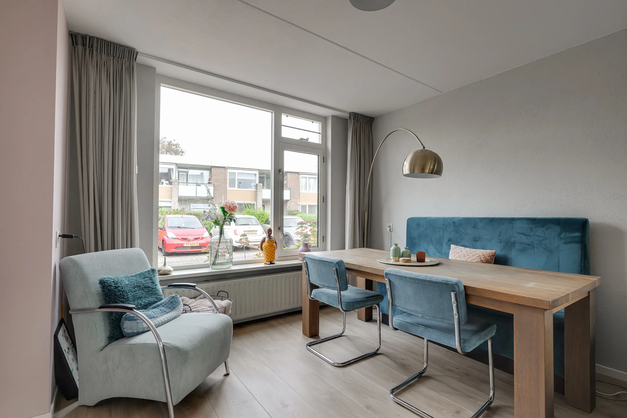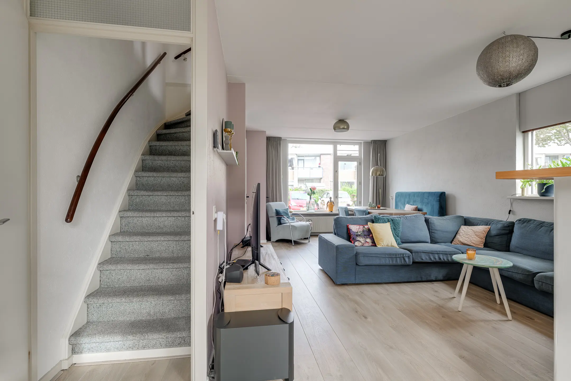 De woning heeft een entree aan de stoepzijde, met een stukje groen aan de voorzijde, dat meteen een vriendelijke, verzorgde indruk geeft. Parkeren kan gemakkelijk in de directe omgeving. Via de hal met meterkast en modern toilet (vernieuwd in 2022) betreedt u de lichte en sfeervolle woonkamer. De woonkamer is voorzien van een laminaatvloer, grote raampartijen aan drie zijden en een prettige indeling die u moeiteloos kunt aanpassen.