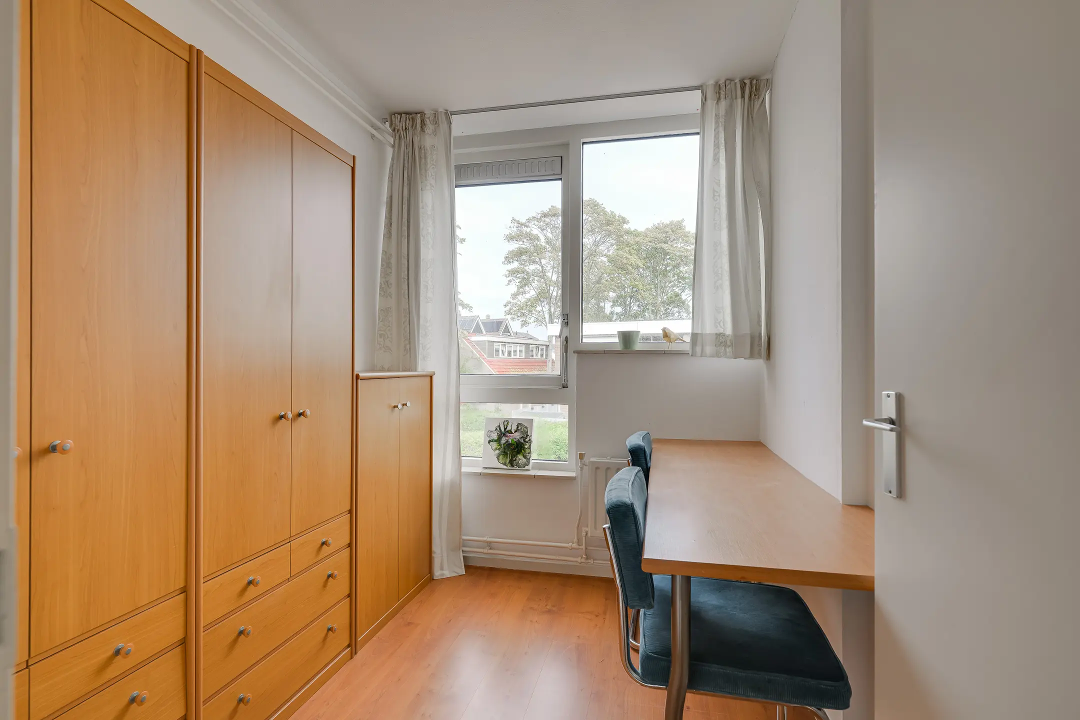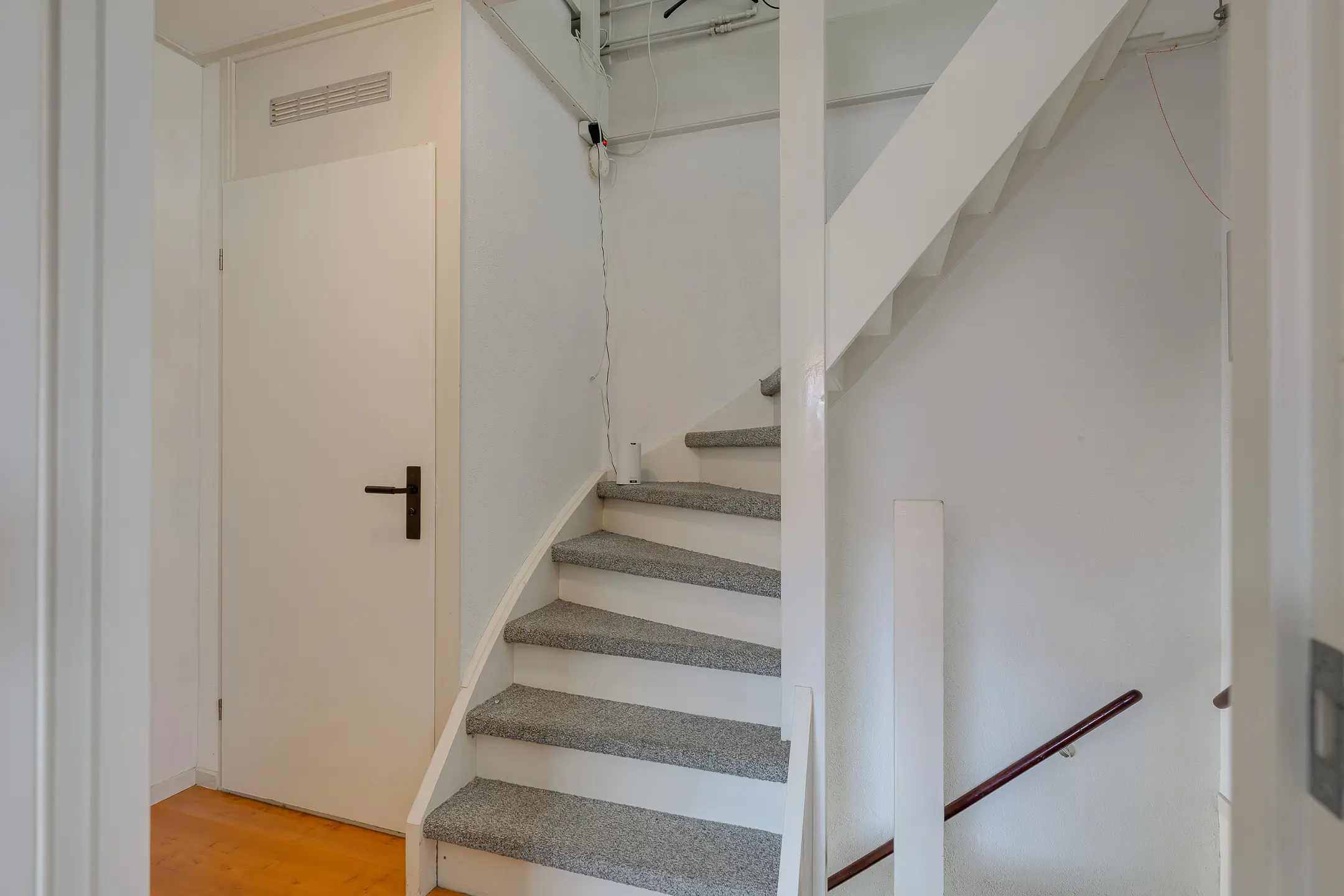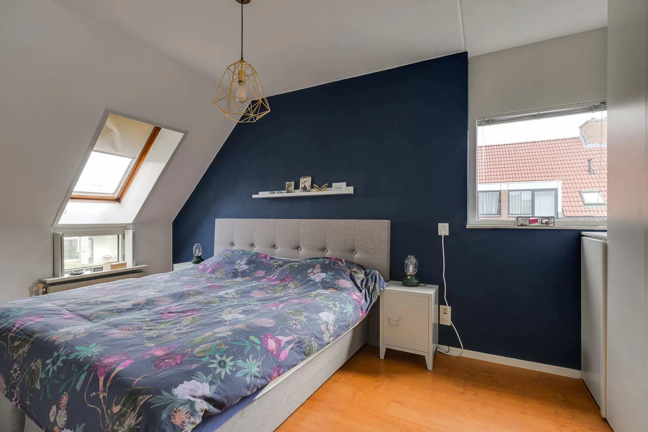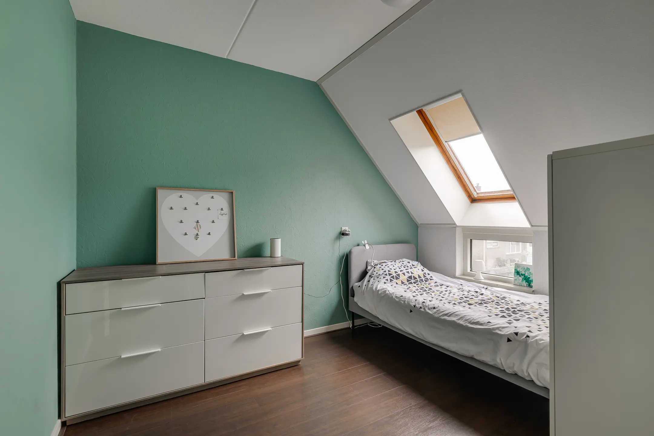 Via een vaste trap bereikt u de zolderverdieping. Hier bevindt zich de overloop met aansluitingen voor de wasmachine en droger, en een vierde slaapkamer met dakraam. De zolder biedt dankzij het dakraam voldoende licht en een gevoel van ruimte, en kan ook naar eigen wens worden ingericht. Perfect voor een tiener, logeerplek of kantoor aan huis.