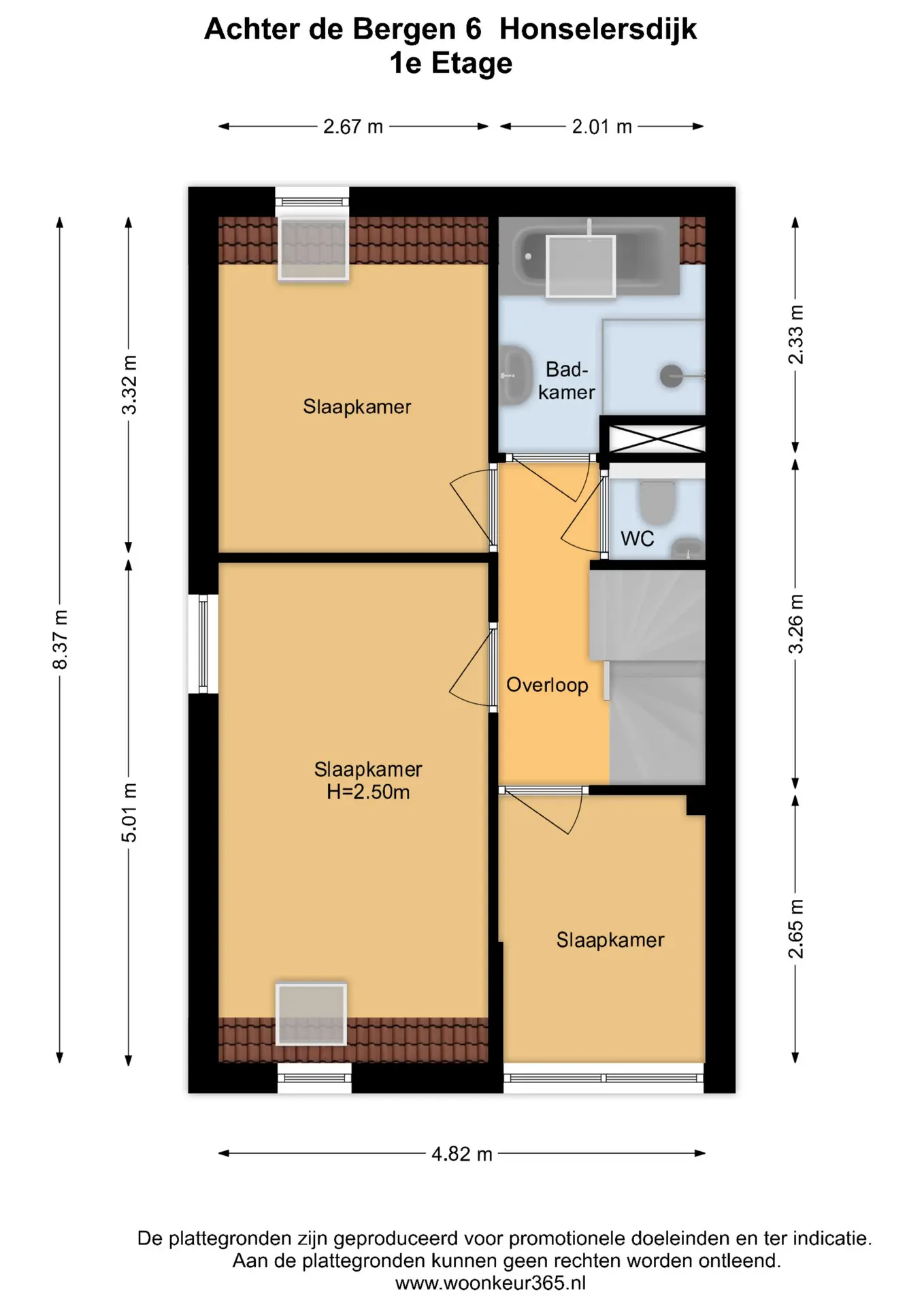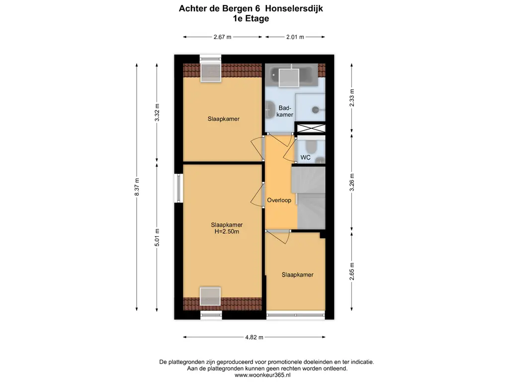 Op de eerste verdieping bevinden zich drie lichte en goed bemeten slaapkamers. De hoofdslaapkamer en een tweede kamer (slaap- of hobbykamer) liggen aan de voorzijde, terwijl de derde slaapkamer en de moderne badkamer aan de achterzijde zijn gesitueerd. Alle (slaap)kamers zijn goed van formaat en naar eigen wens in te delen.