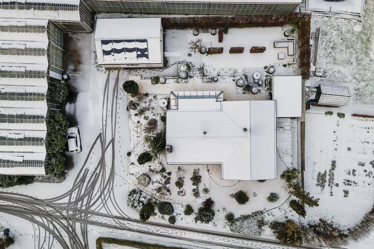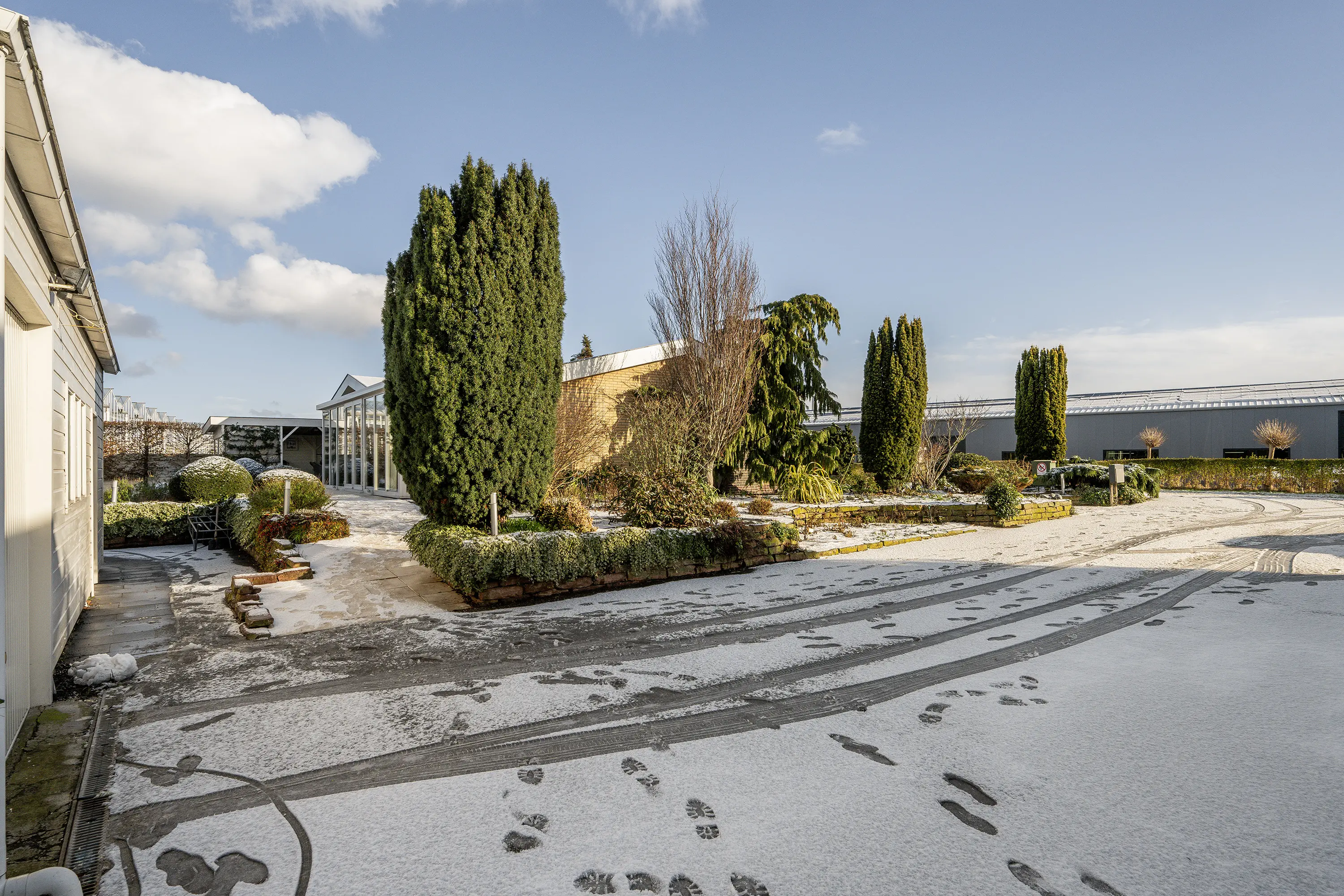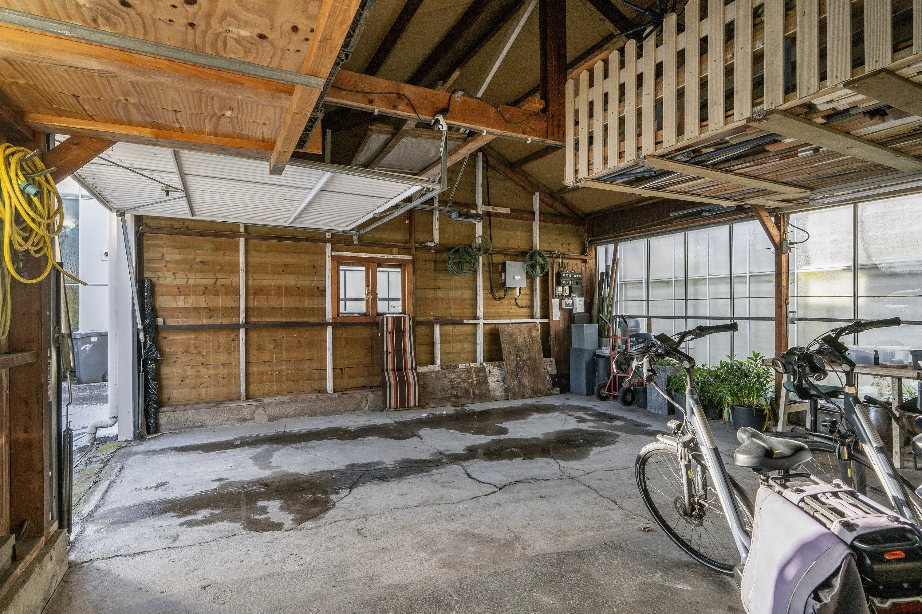 Via de brede oprit, met plek voor meerdere auto's, bereikt u de vrijstaande houten schuur op stenen voet van ca. 62 m2, voorzien van elektrisch bedienbare overheaddeur. De extra inpandige bergruimte met eigen loopdeur is ideaal voor gereedschap, fietsen of tuinspullen.