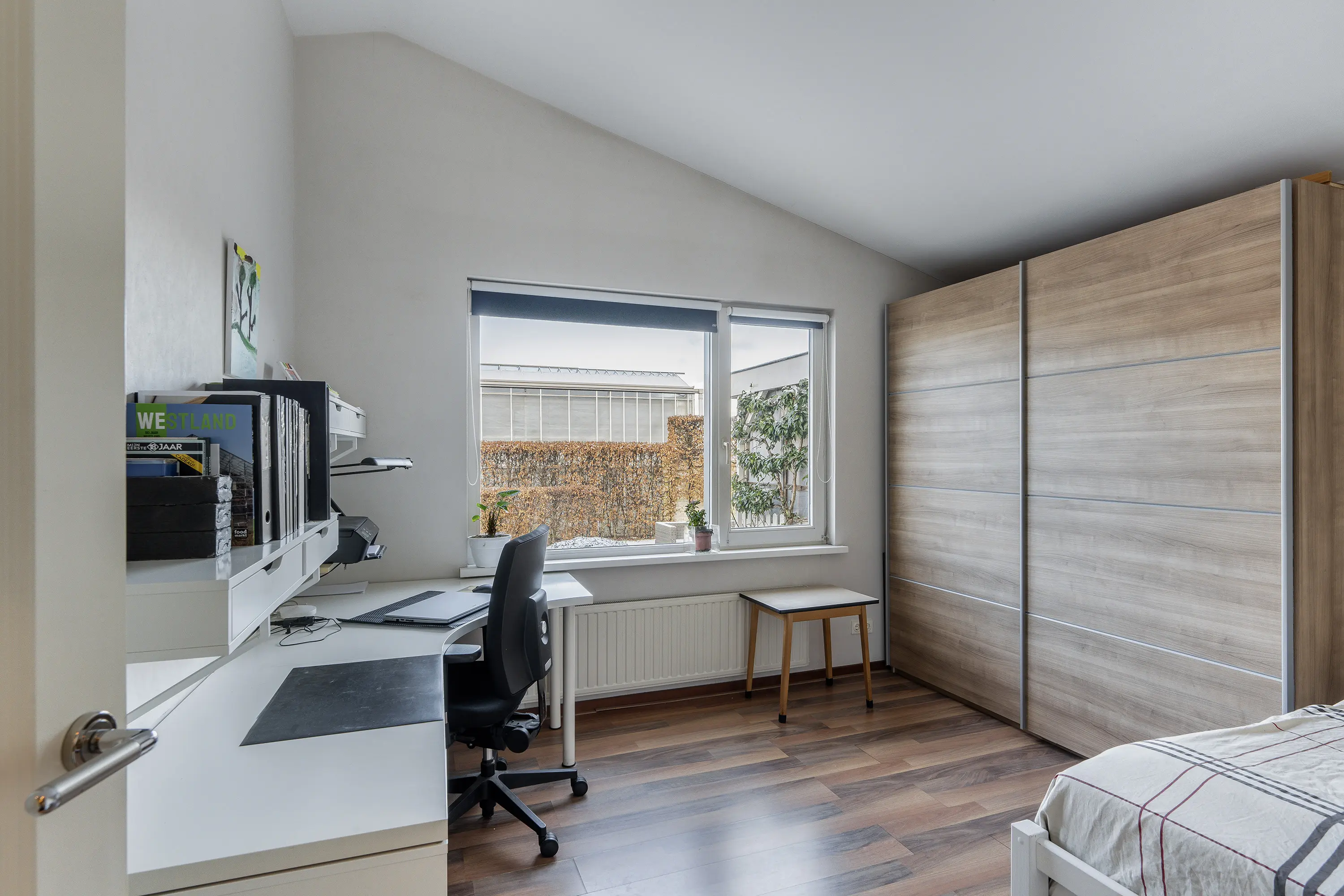 Naast de badkamer en achter de bijkeuken is een tweede slaapkamer gesitueerd, met een oppervlakte van ca. 12,8 m2 en uitzicht op de achtertuin.
