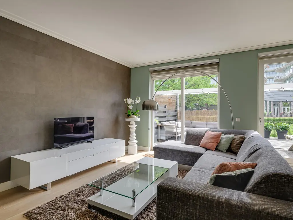 - Woonkamer voorzien van eiken houten vloer met vloerverwarming;