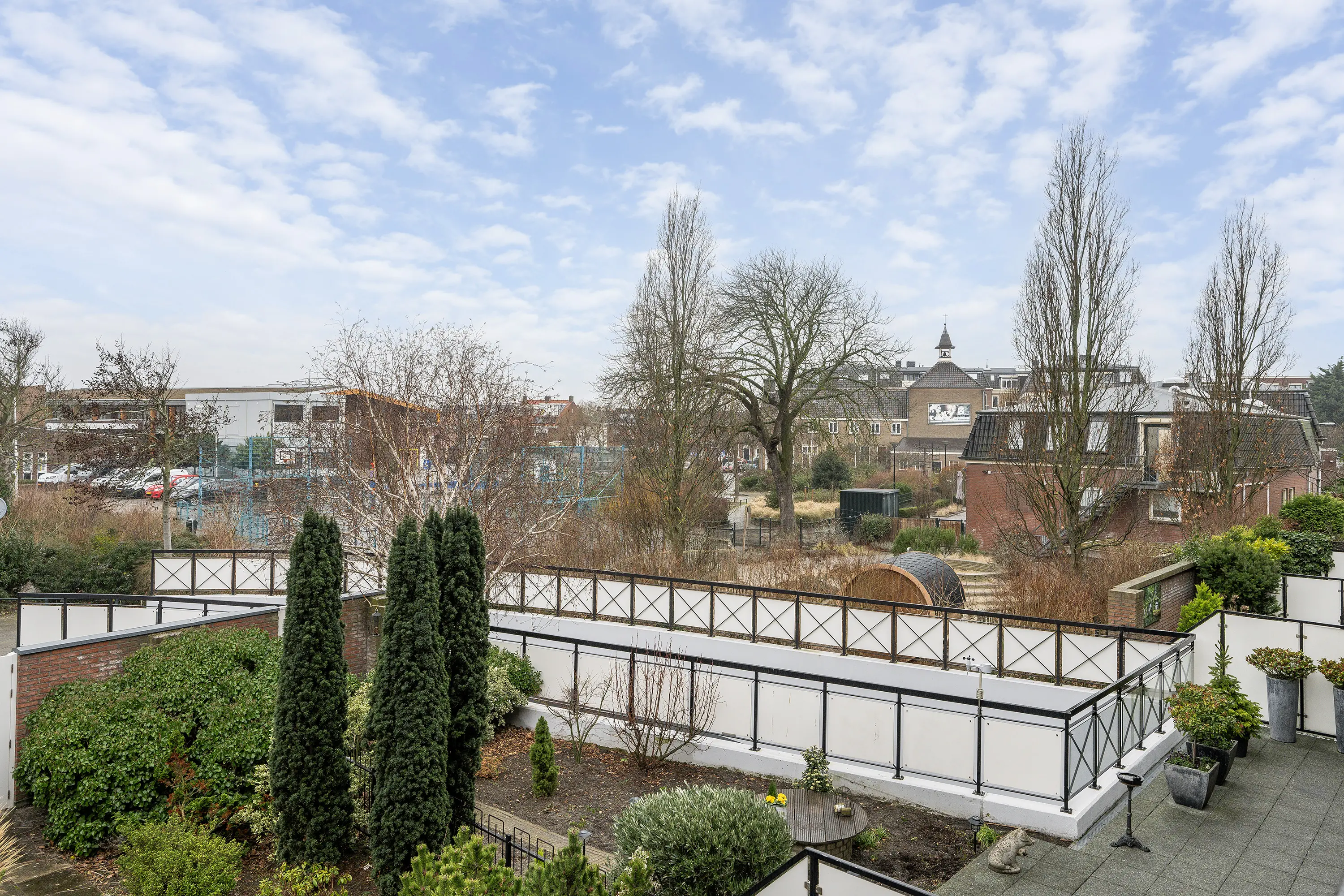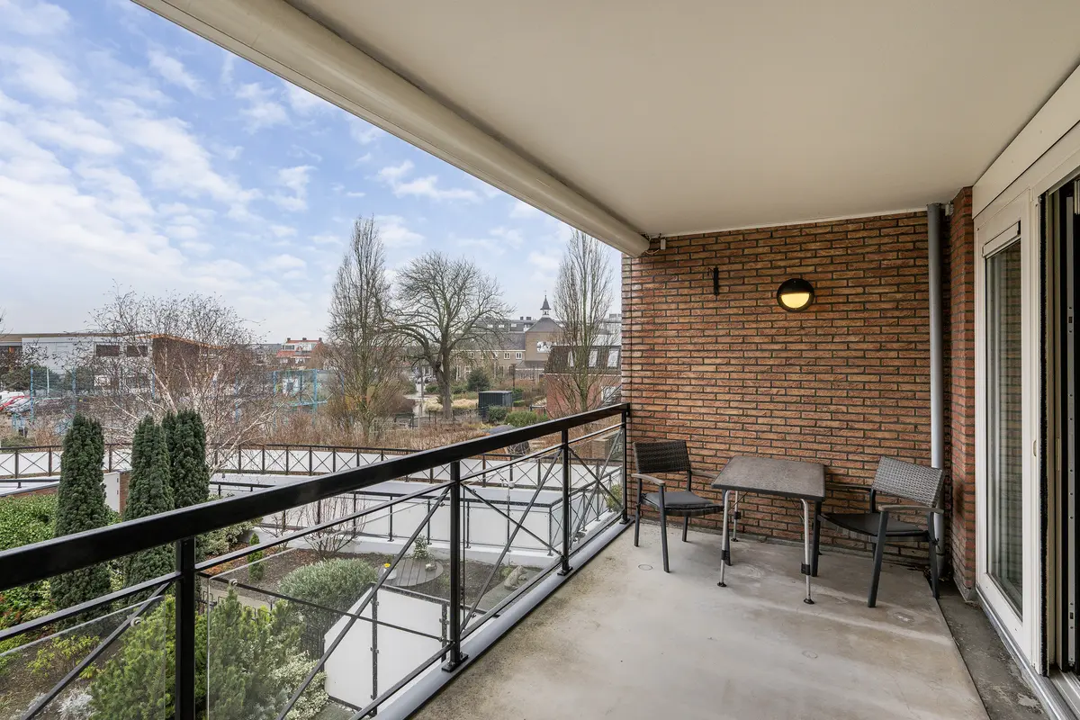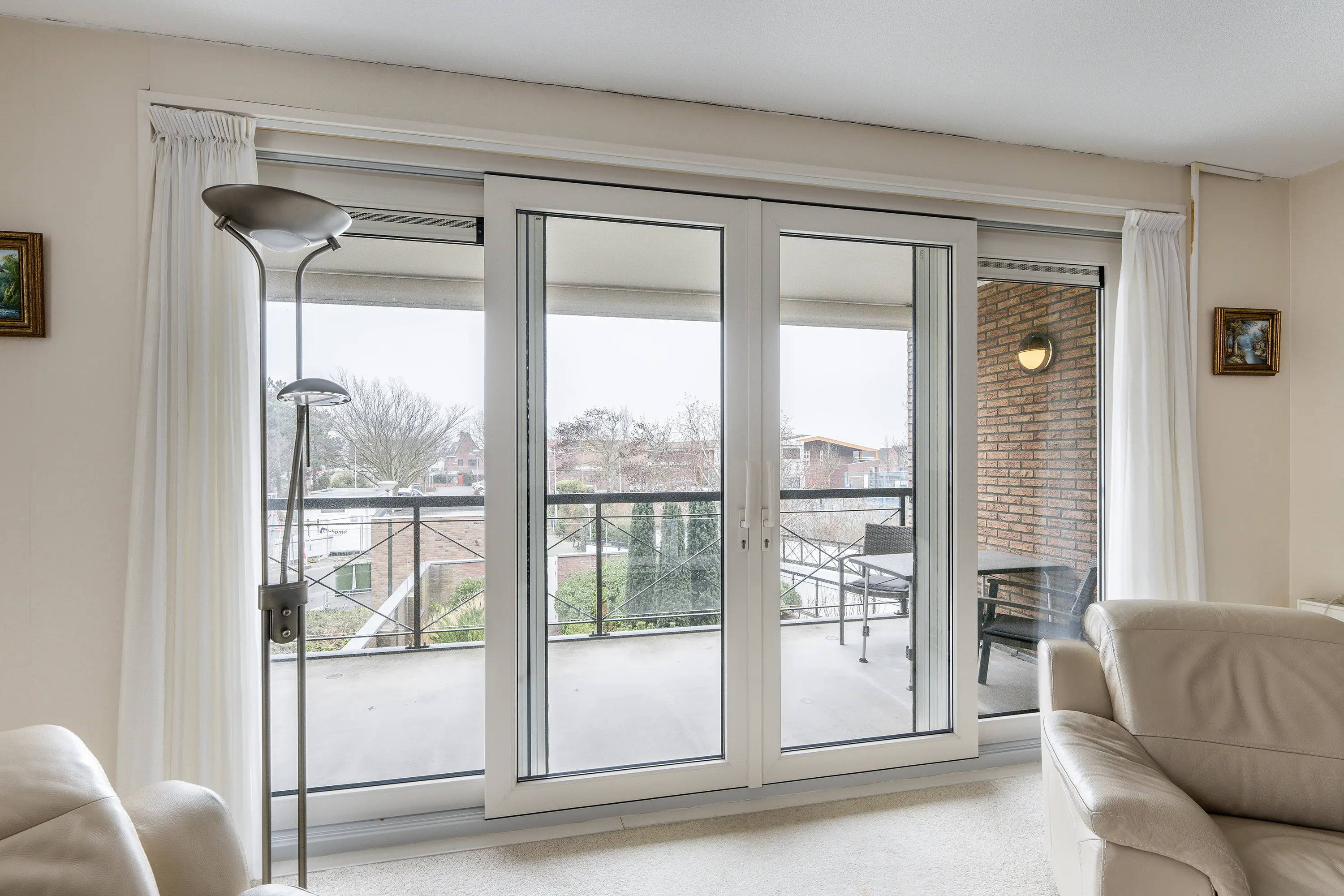 Via de woonkamer, middels een aluminium schuifpui, komt u op het riante, overdekte balkon van ca. 13 m2.