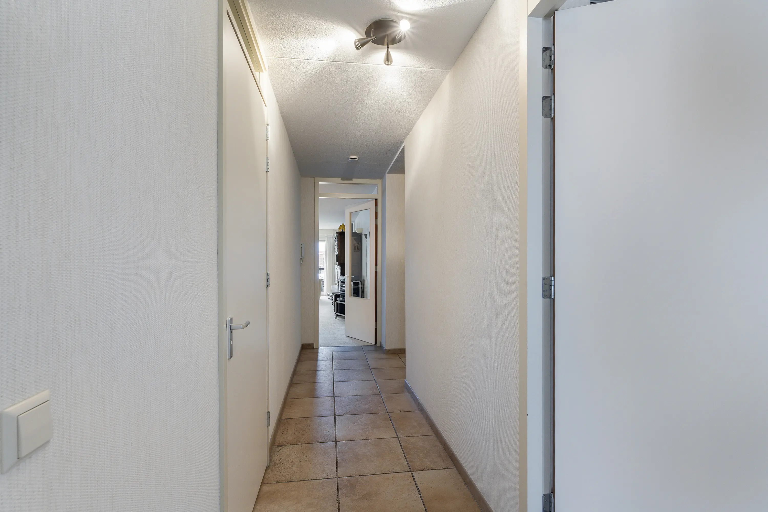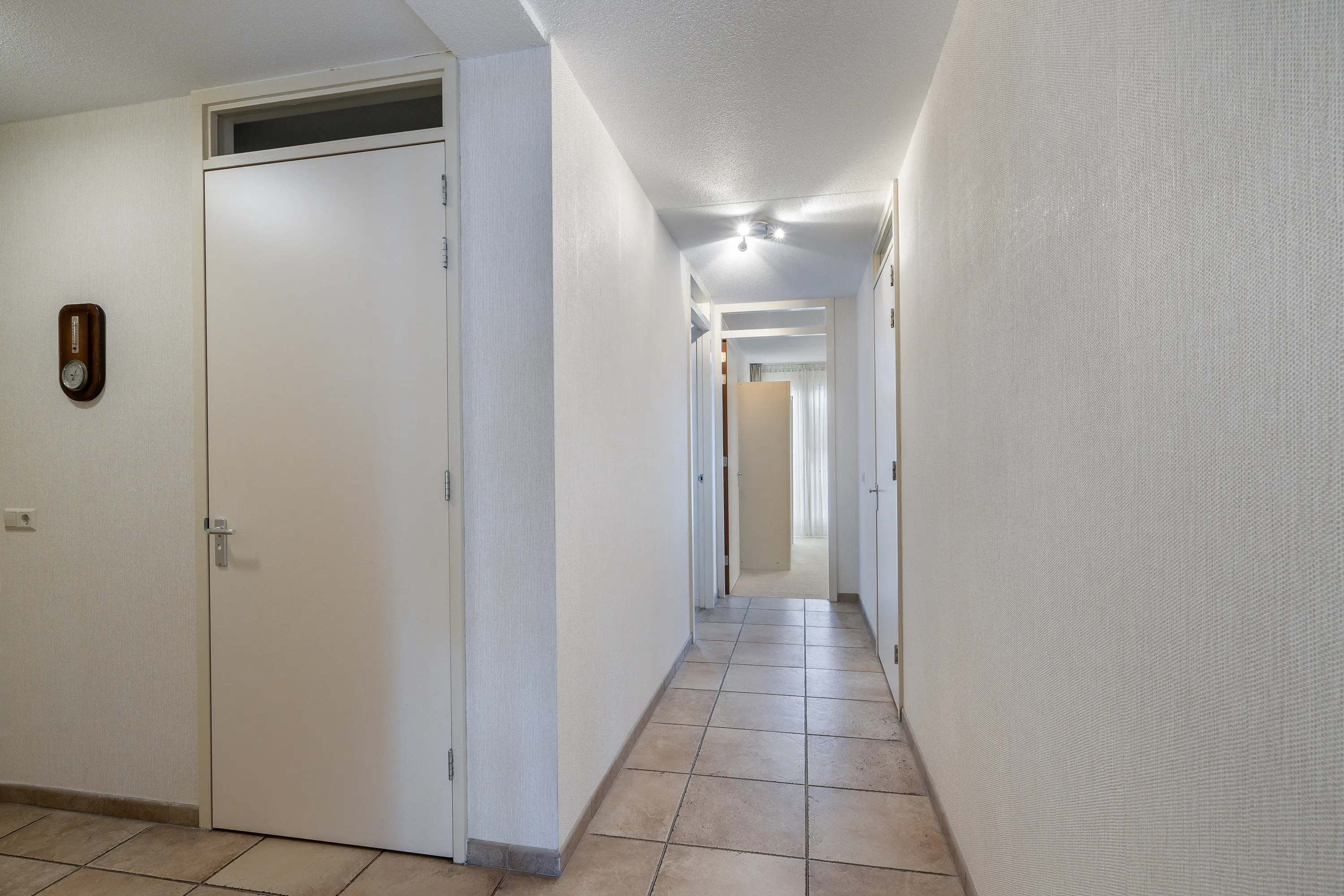 Entree met voorportaal, waar zich de meterkast en toiletruimte zich bevinden. Via de hal zijn de twee slaapkamers, de badkamer en de riante woonkamer met open keuken toegankelijk.