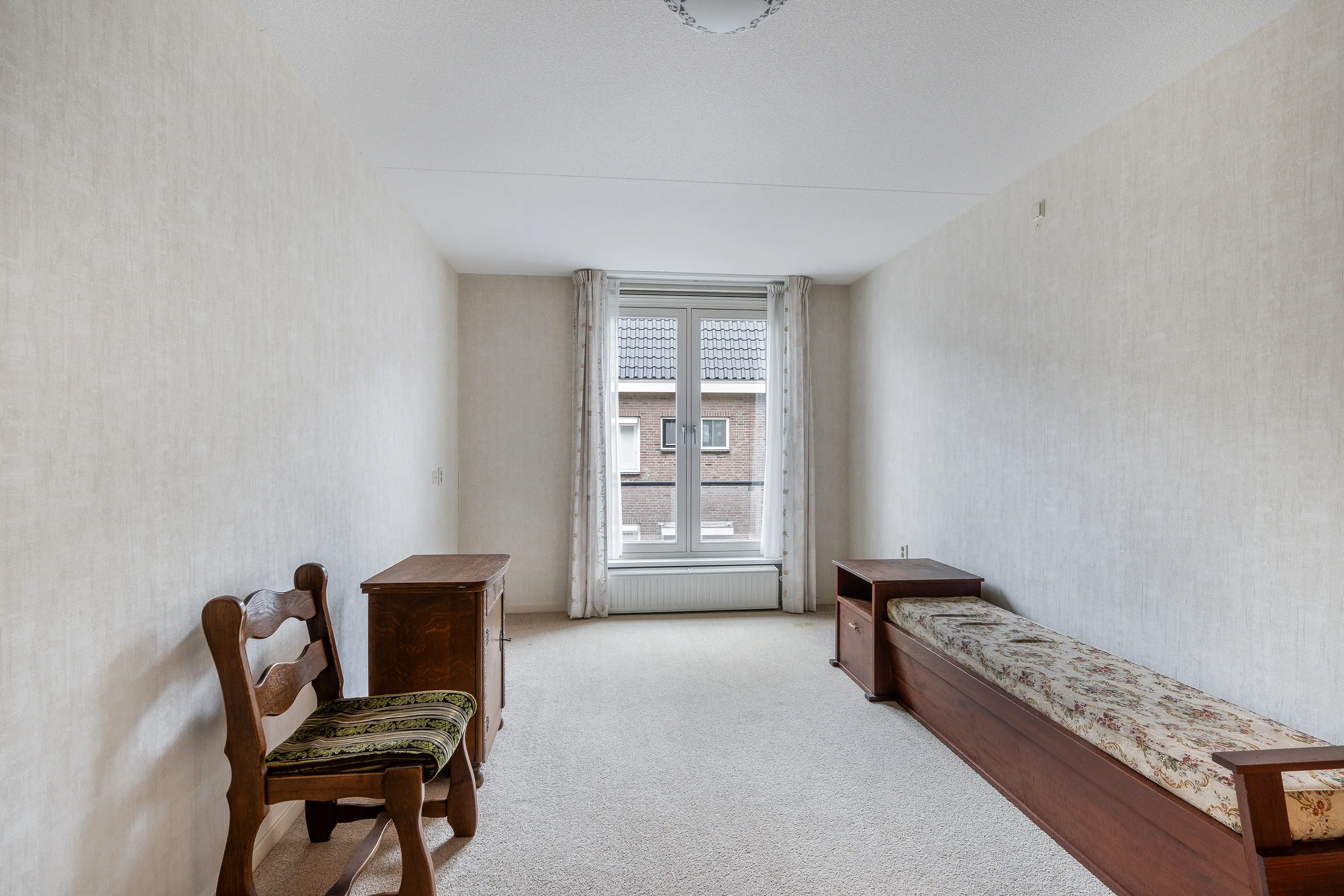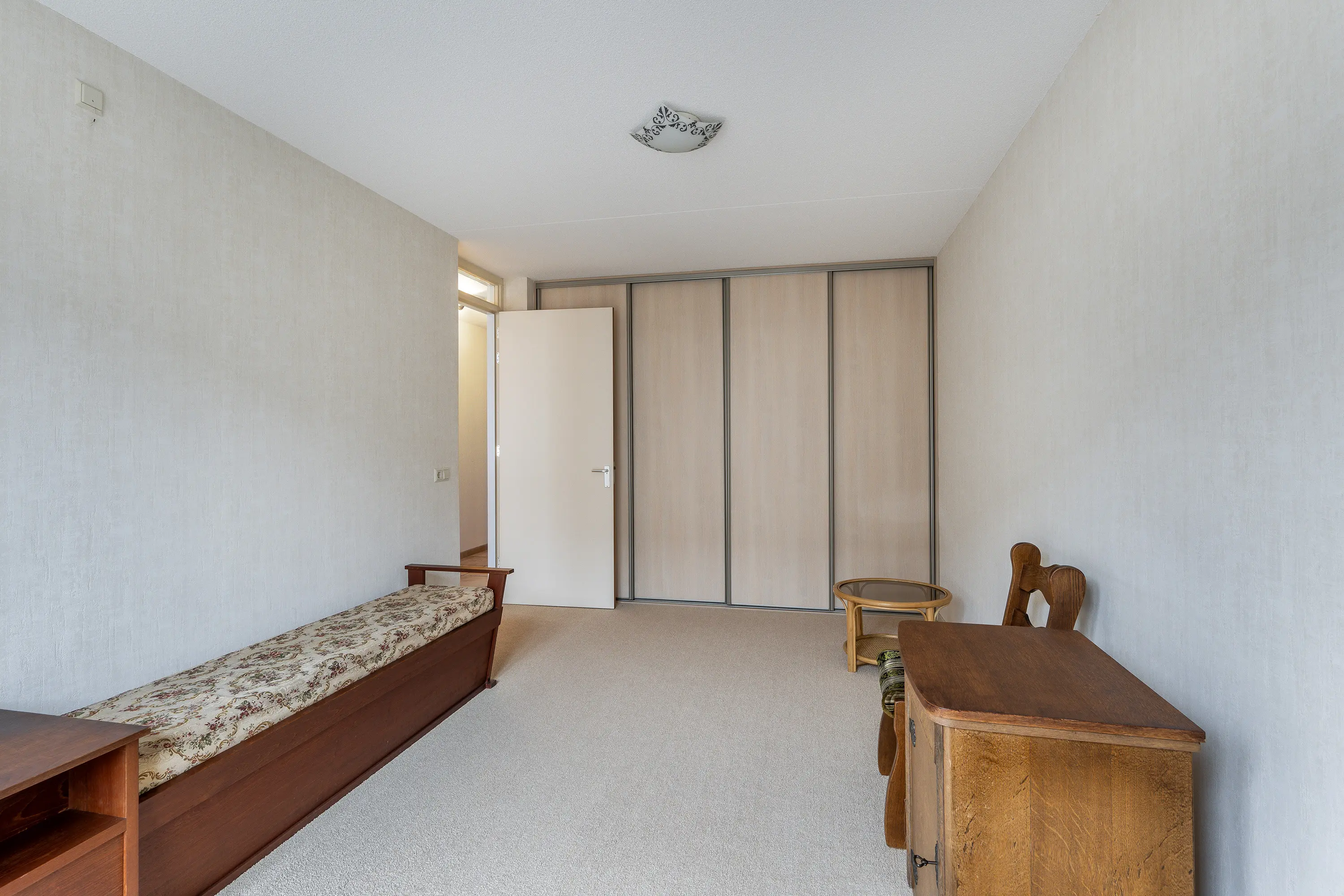 Terug in de hal zijn er vanuit hier twee royale slaapkamers en de badkamer toegankelijk. De slaapkamers van ca. 22 m2 en ca. 20 m2 zijn beide voorzien van te openen draai-/kiepramen, de kleinste heeft een praktische garderobe kast met schuifwanden.