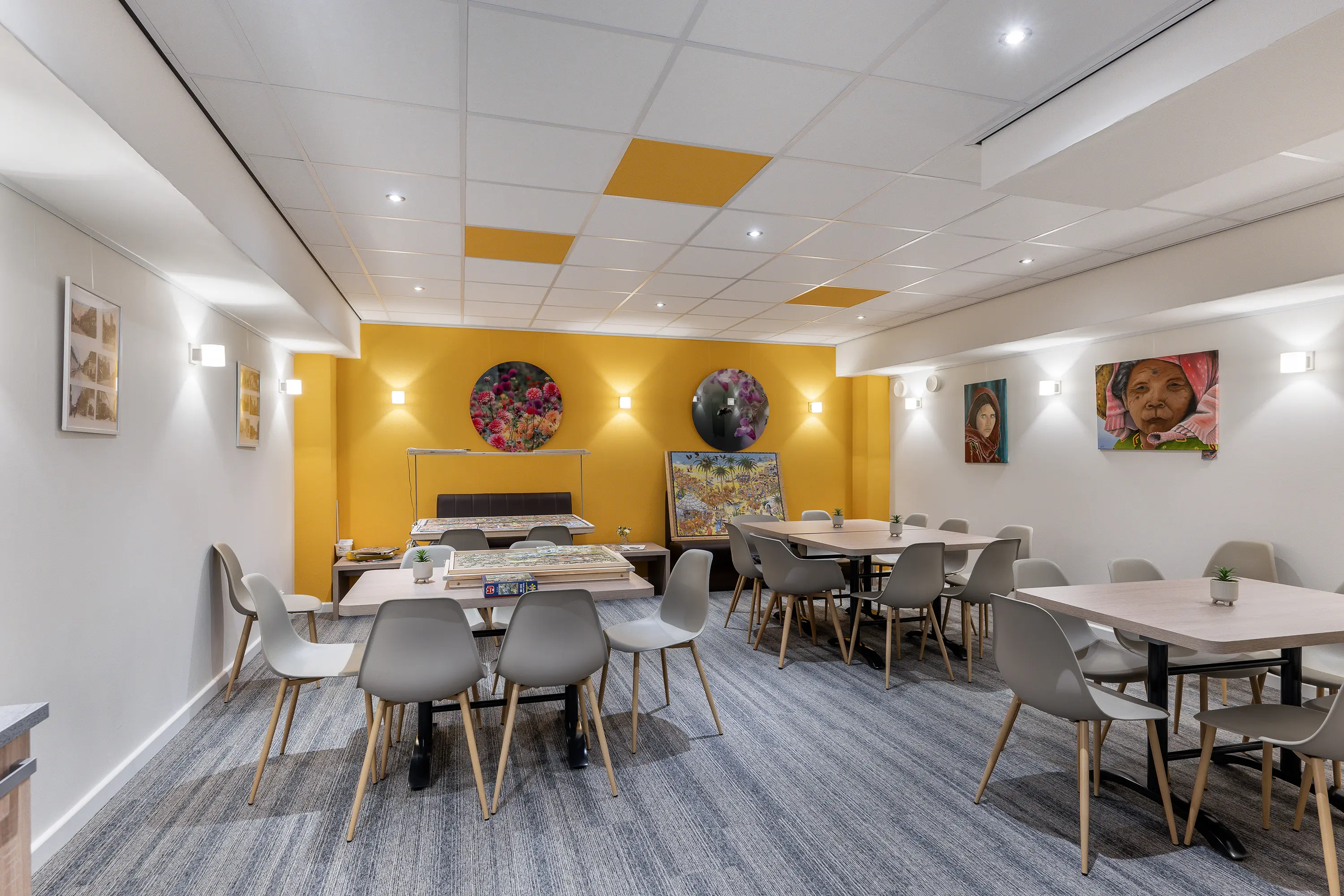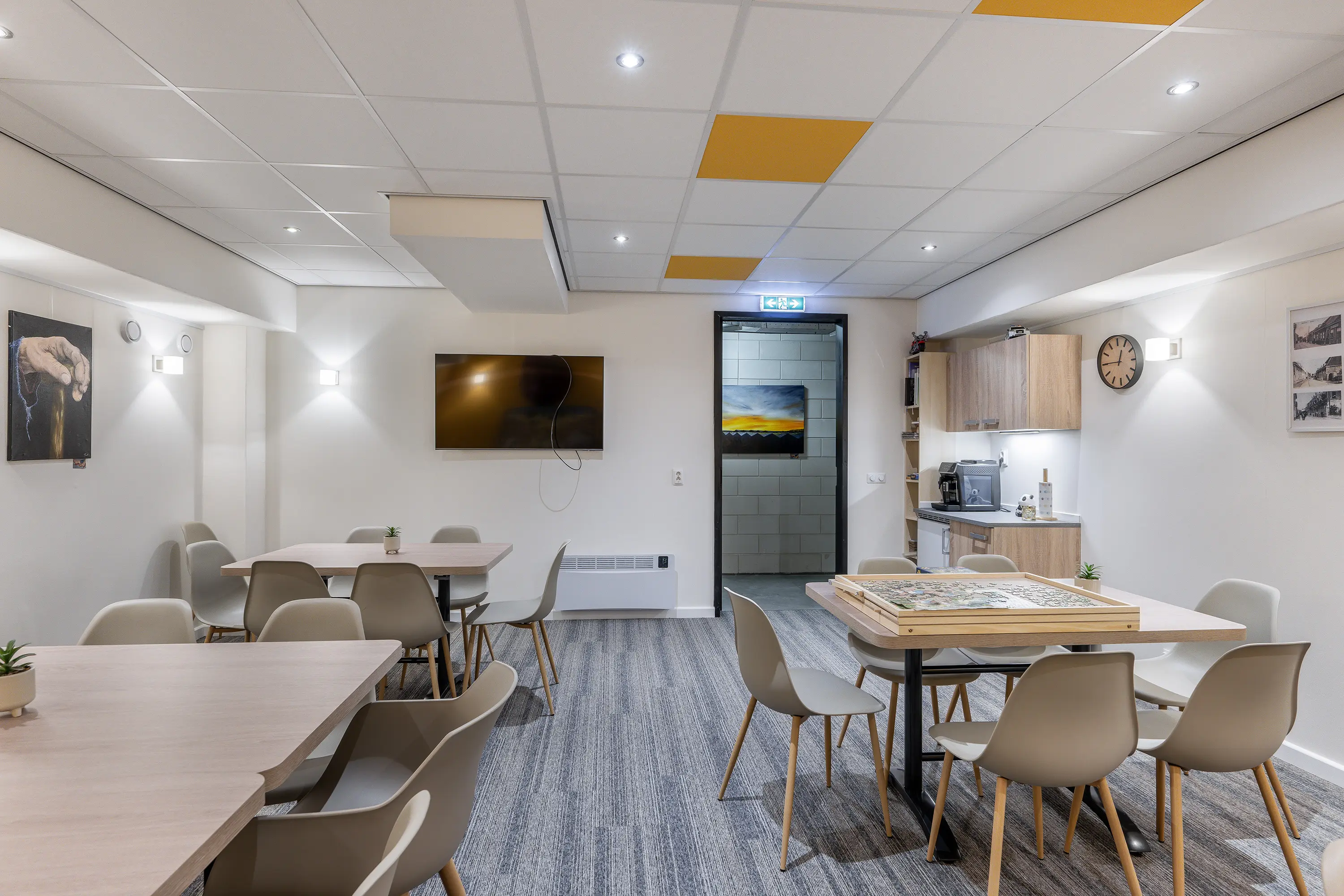 Een gemeenschappelijke ruimte op de begane grond maakt het mogelijk om gezellig samen te komen met buren.