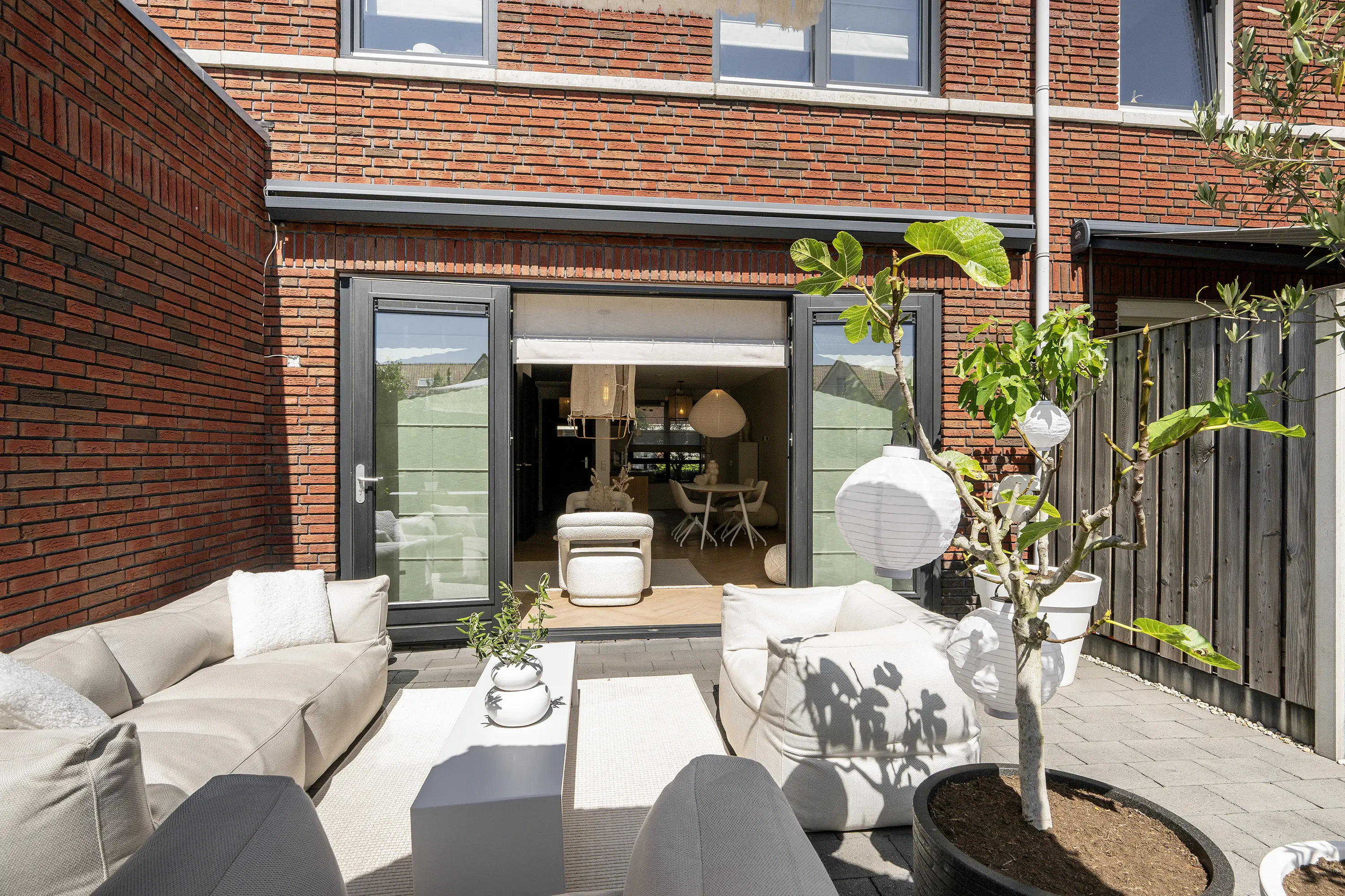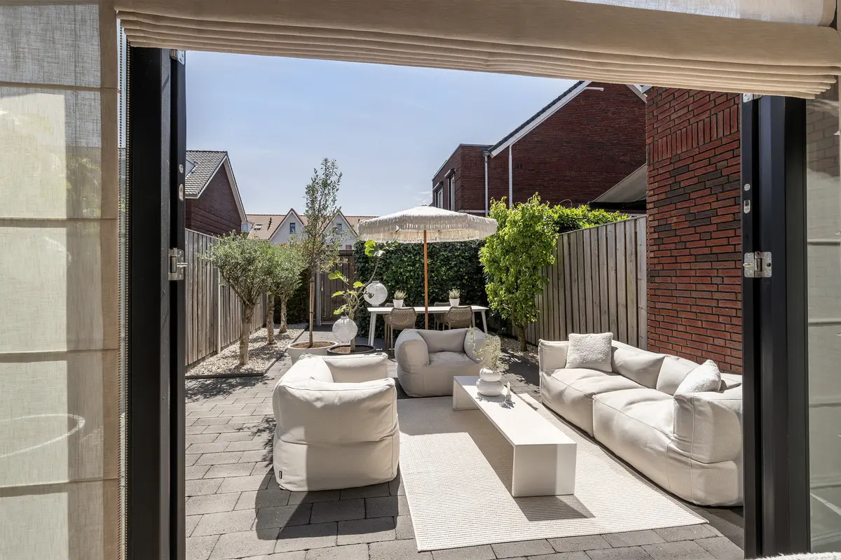 De achtertuin ligt op het zuidoosten en is onderhoudsvriendelijk aangelegd, met een ruim terras, groene beplanting, elektrische zonwering en houten erfafscheiding. Door de ligging en indeling is er veel zon en voldoende privacy. Dit is dé plek waar u elke dag dat ontspannen vakantiegevoel ervaart: maar dan gewoon bij u thuis!