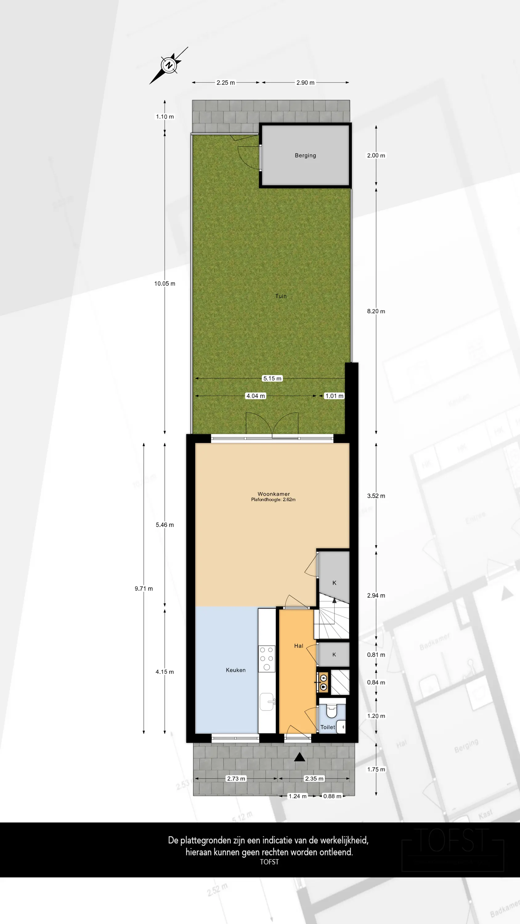 De visgraat PVC-vloer loopt door over de hele begane grond en is voorzien van vloerverwarming. In de hal bevindt zich de garderobe, meterkast, toiletruimte, trapopgang en toegang tot de woonkamer.