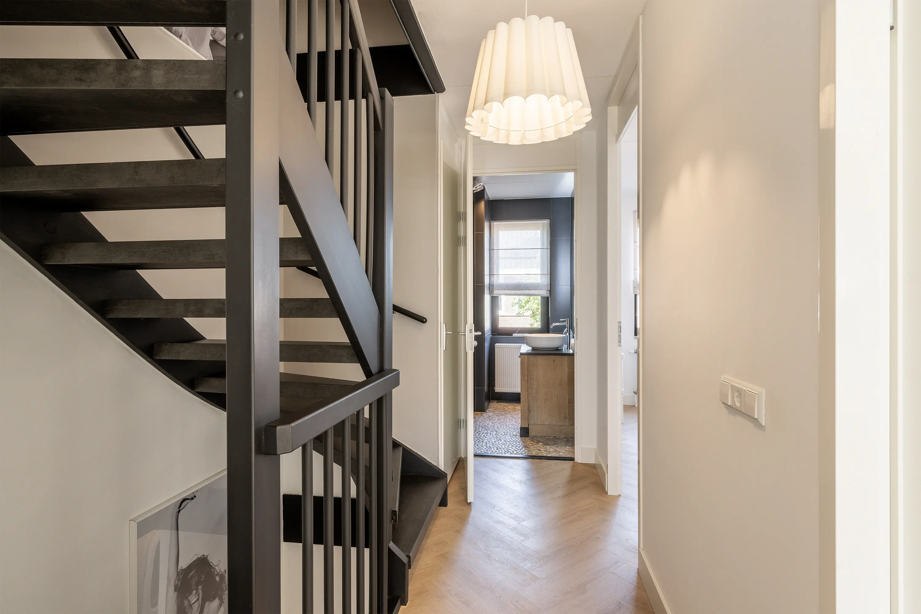 - Beide trappen bekleed met antraciete betonlook;
