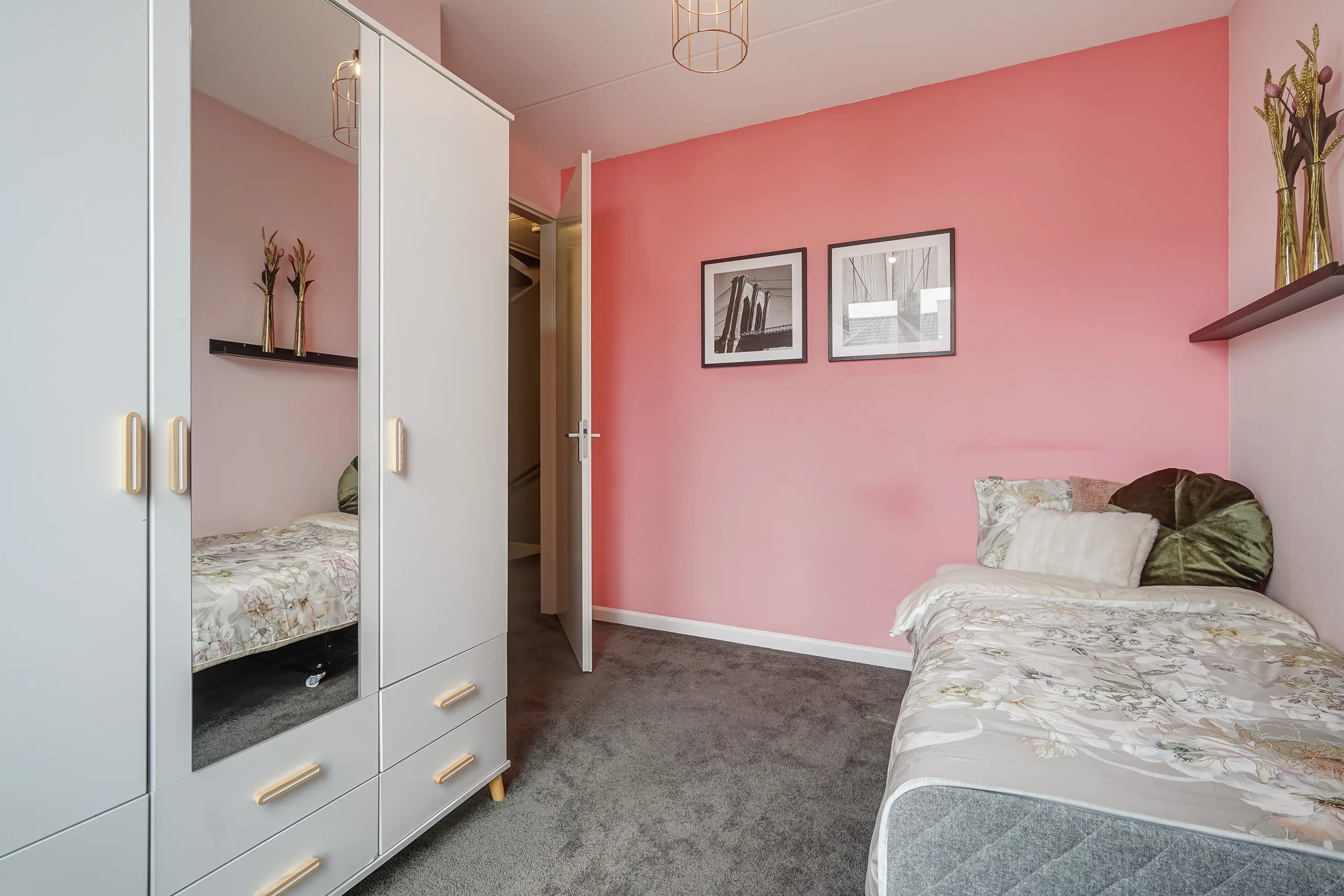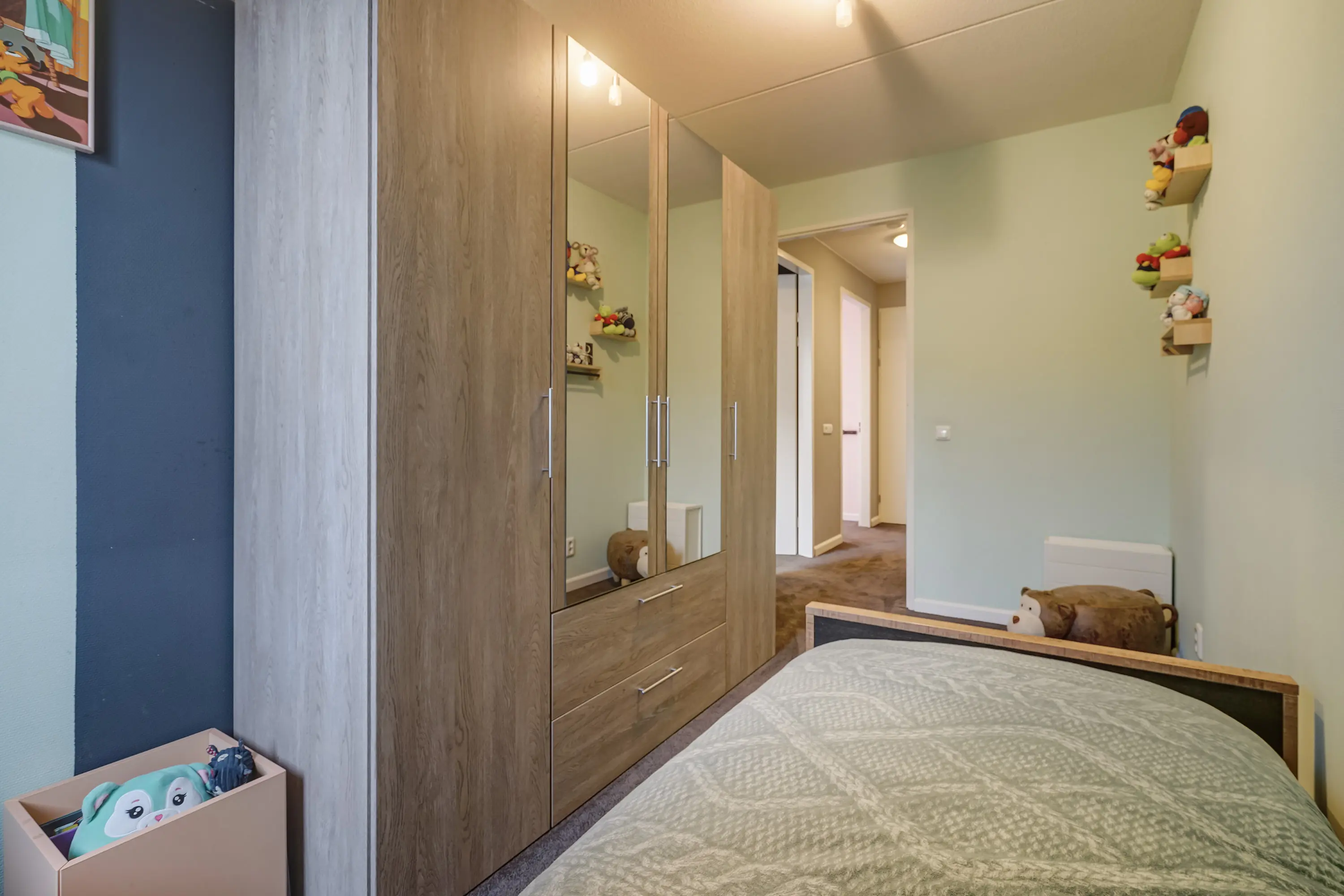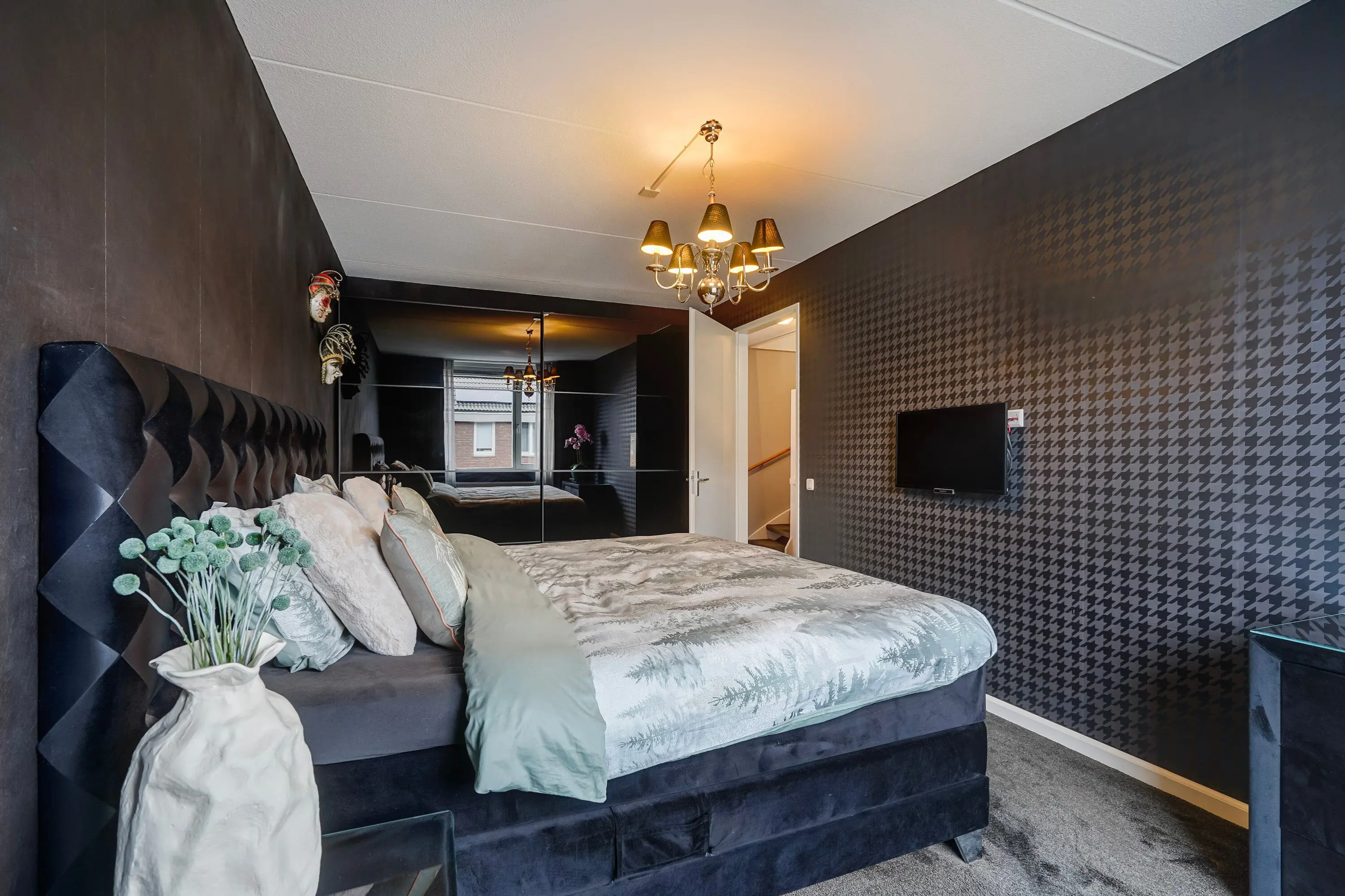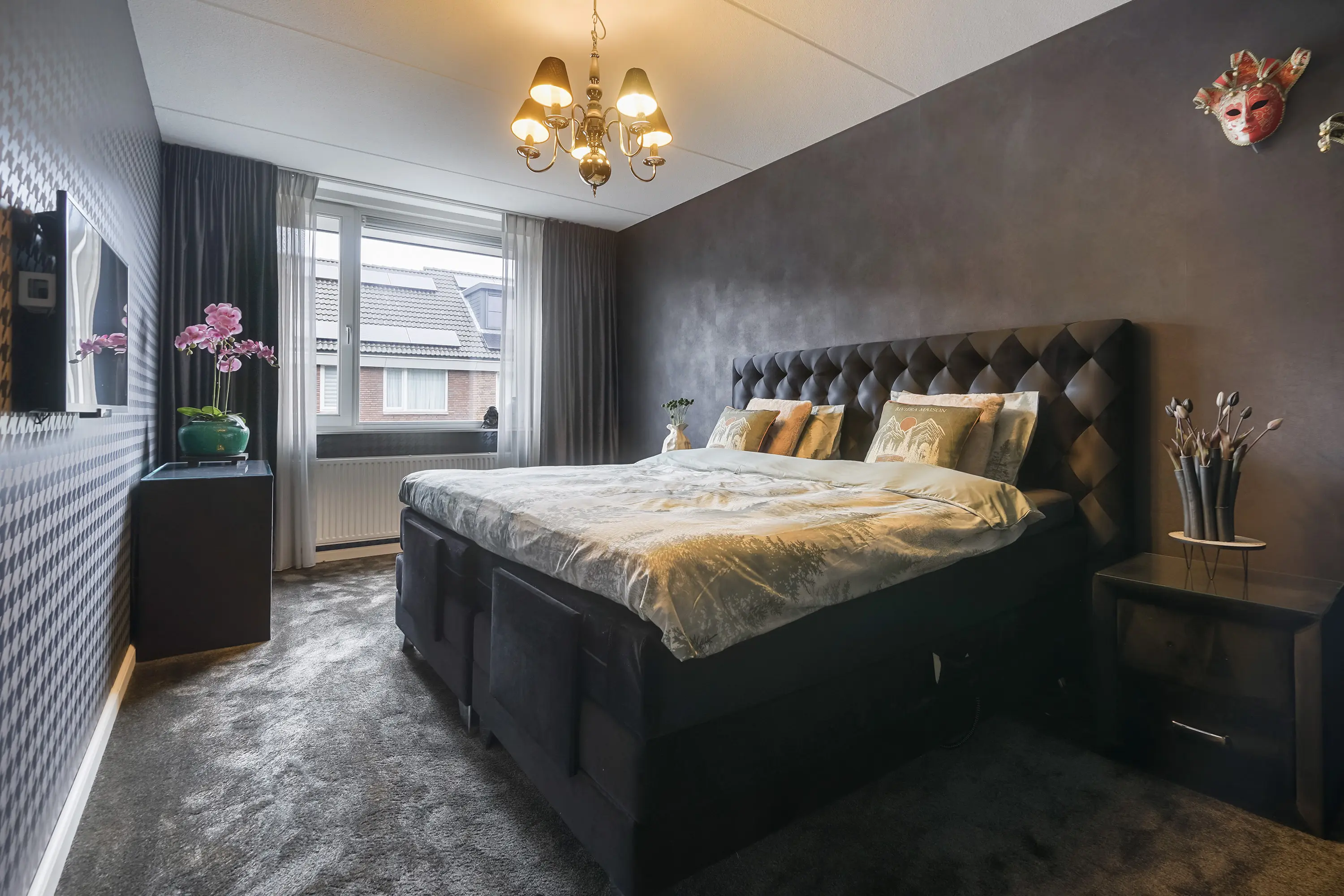 De hoofdslaapkamer bevindt zich aan de achterzijde van de woning en is ruim opgezet. De kamer is voorzien van hoogwaardig tapijt en biedt voldoende ruimte en mogelijkheden voor het plaatsen van een vaste kastenwand.