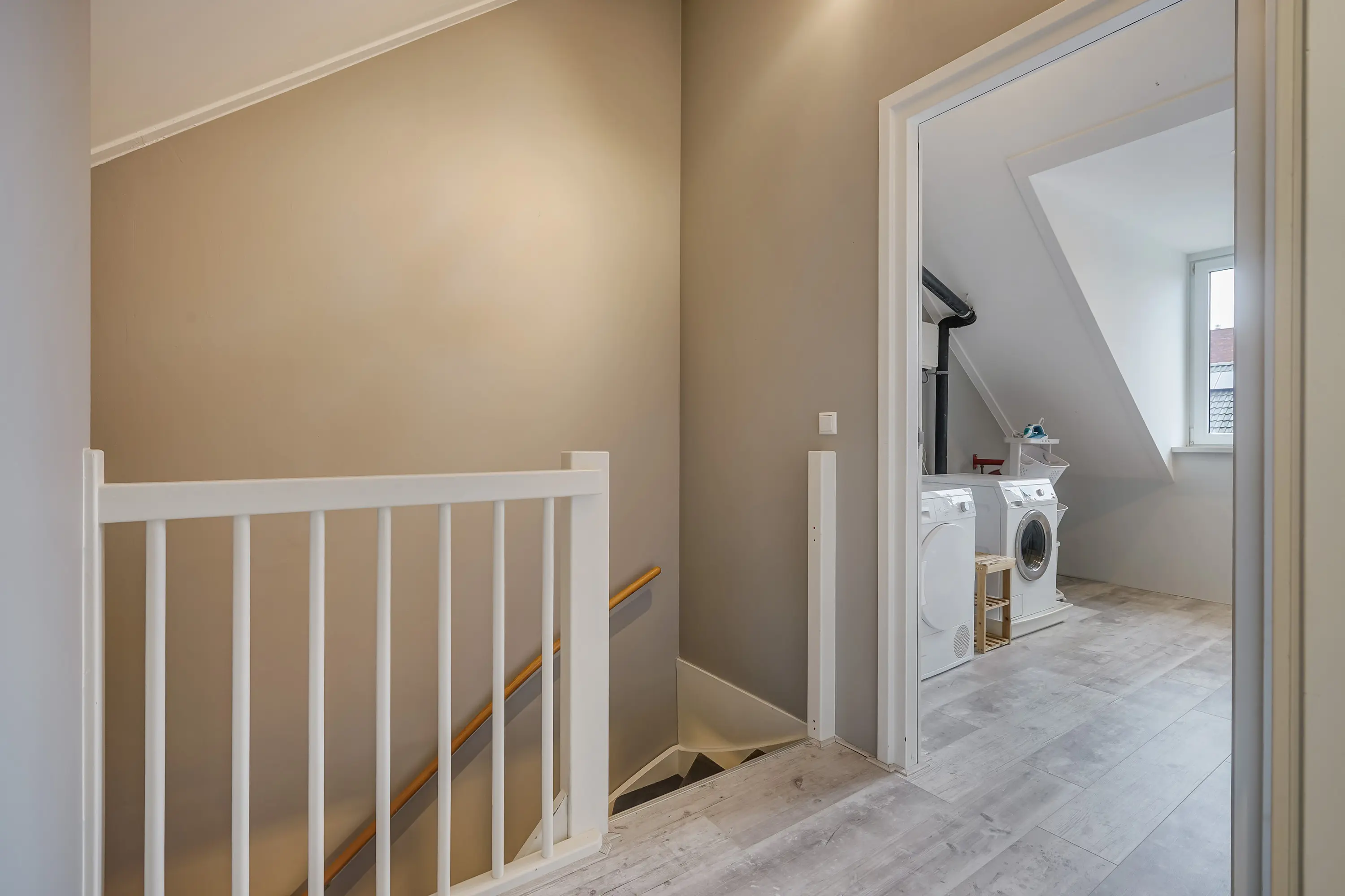 Vanaf de wasruimte is de vliering bereikbaar, ideaal voor het opbergen van seizoensspullen.