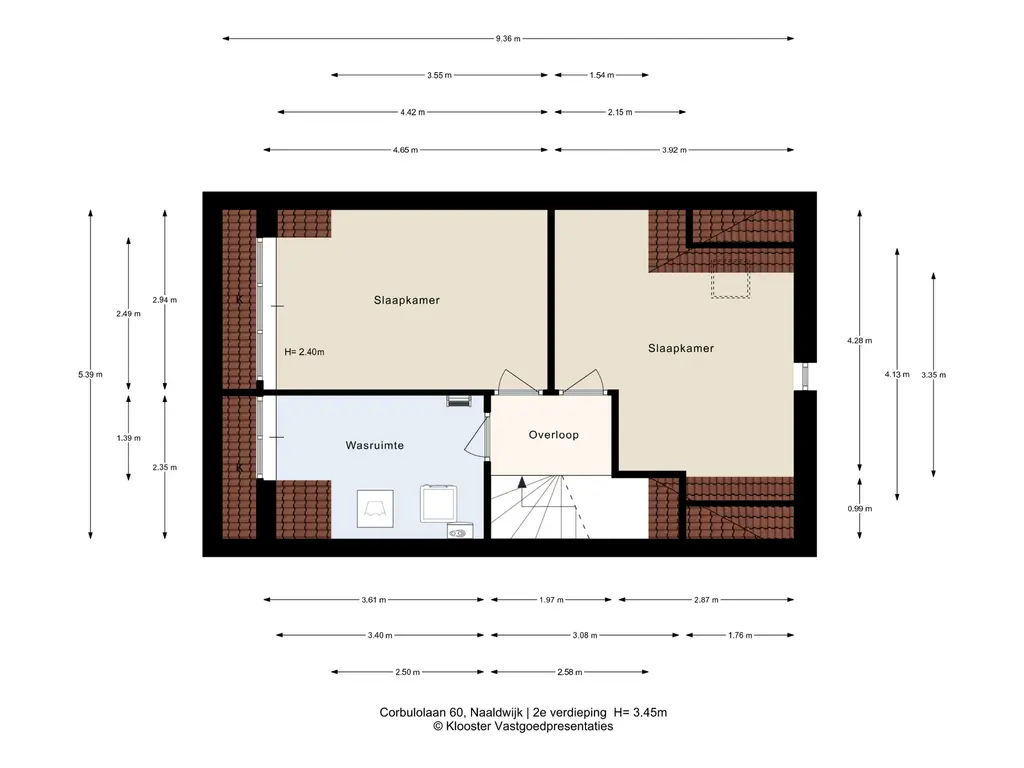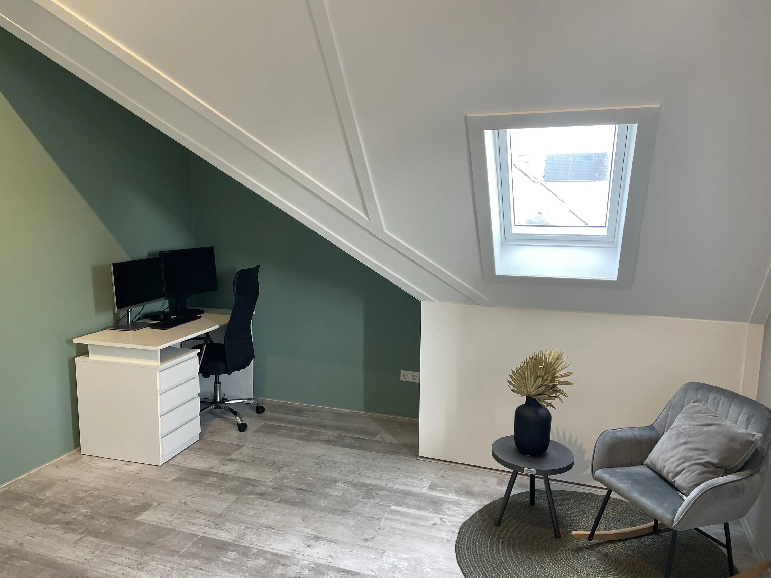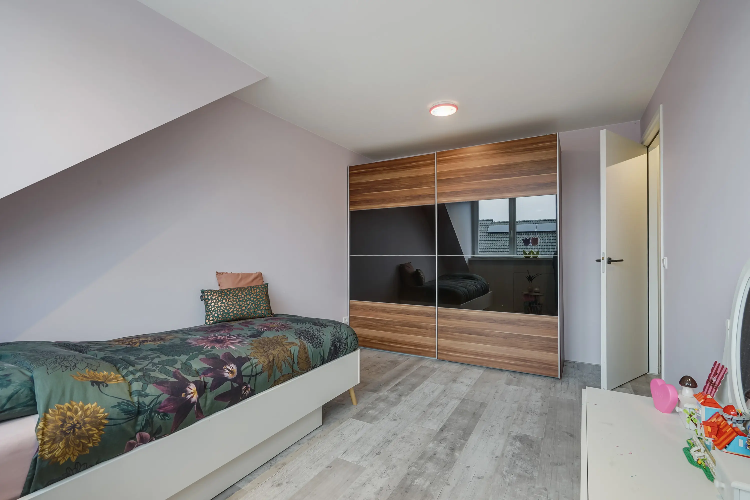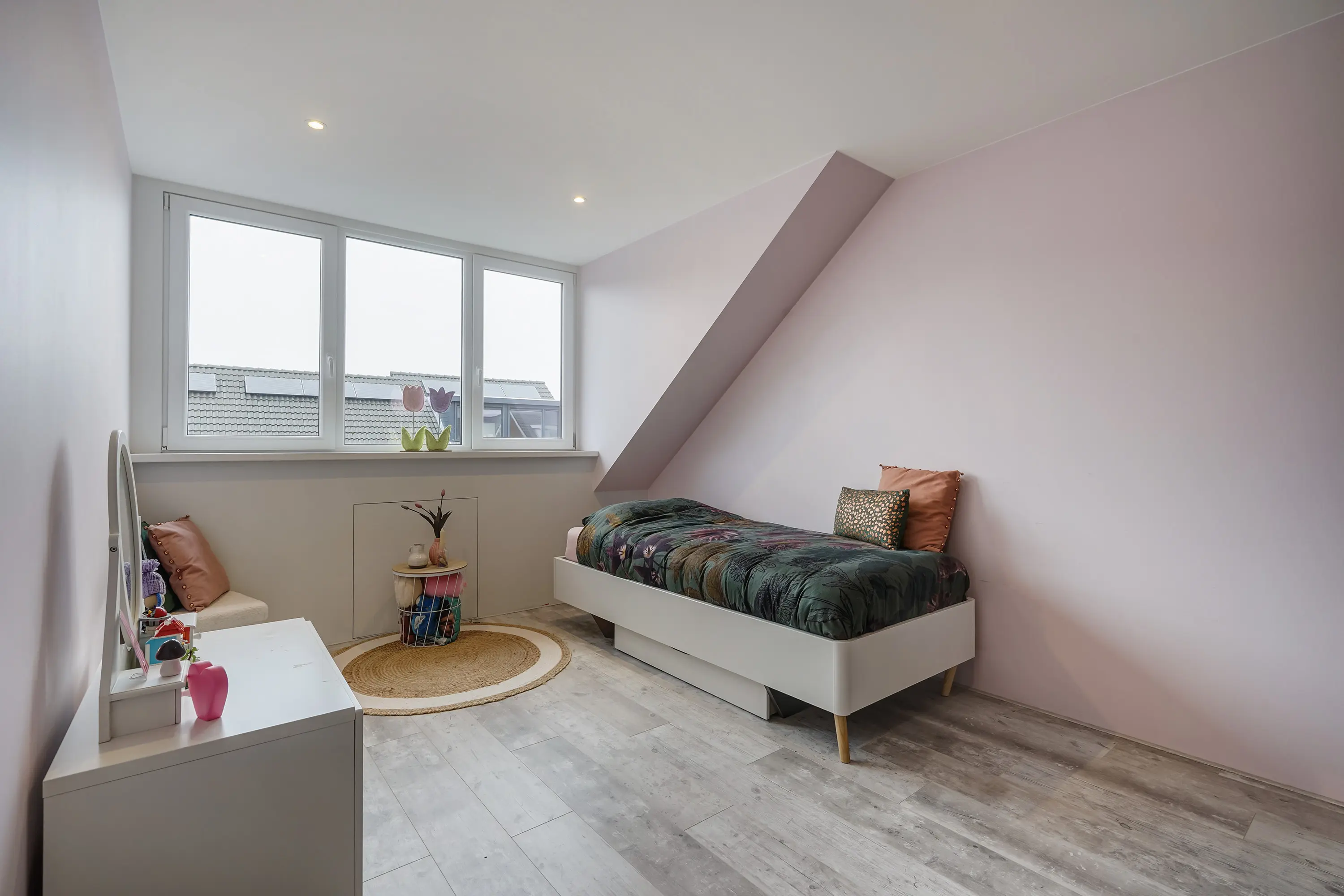 Hier bevinden zich twee ruime en lichte slaapkamers. Het puntdak geeft de kamer aan de voorzijde een sfeervolle en karakteristieke uitstraling. Extra daglicht komt binnen via een tweede dakraam (2021) aan de zijkant van de woning.