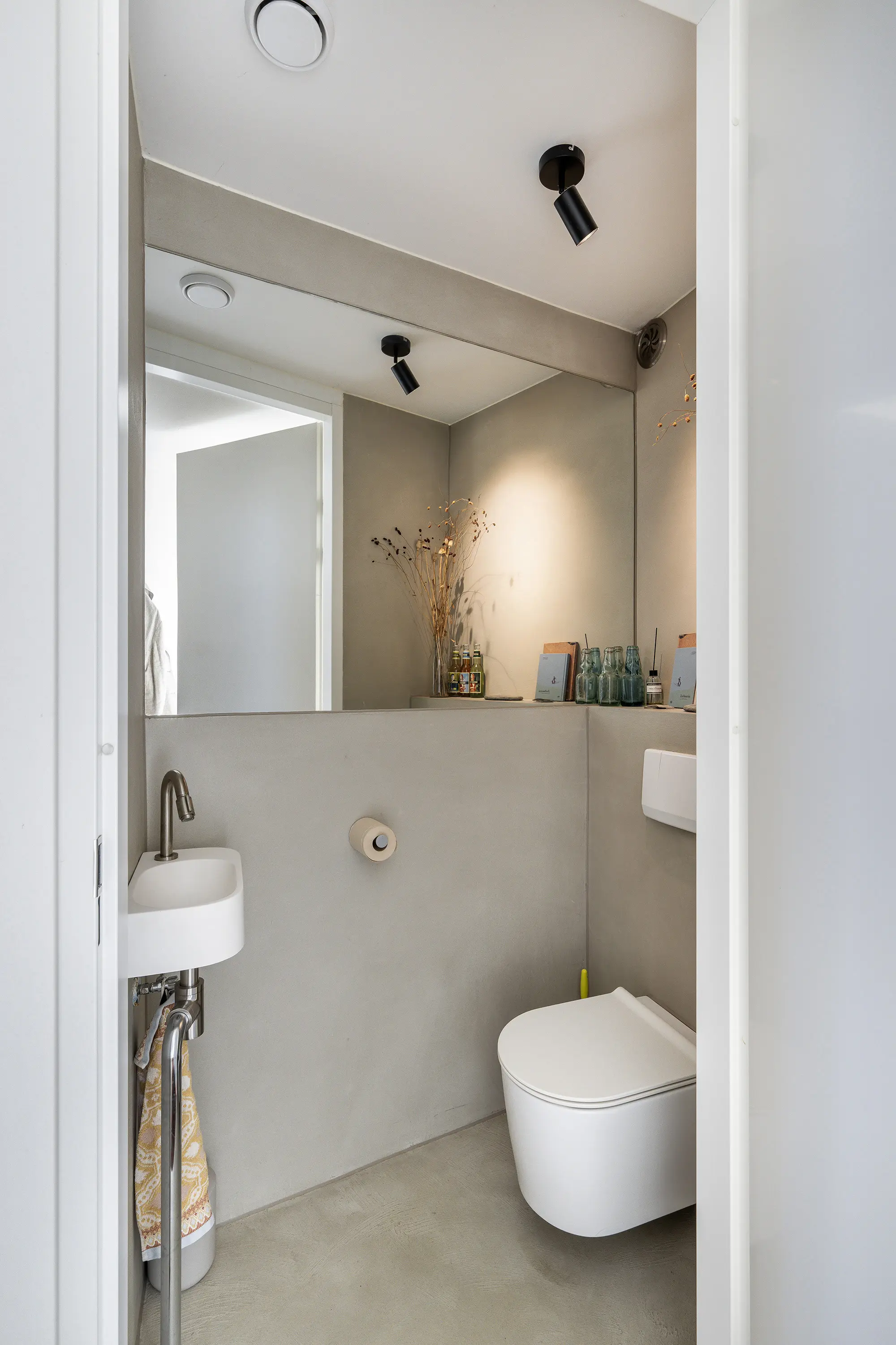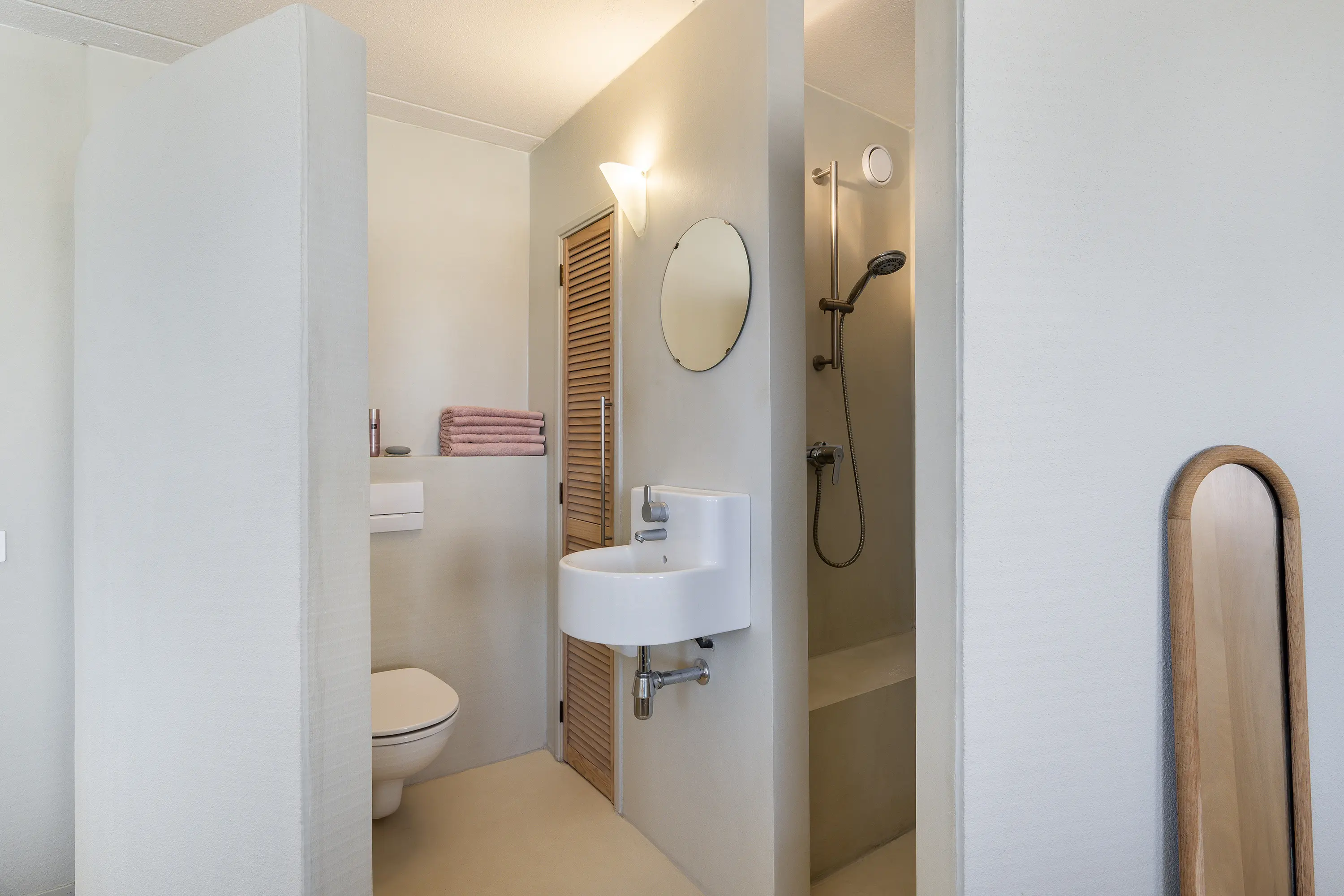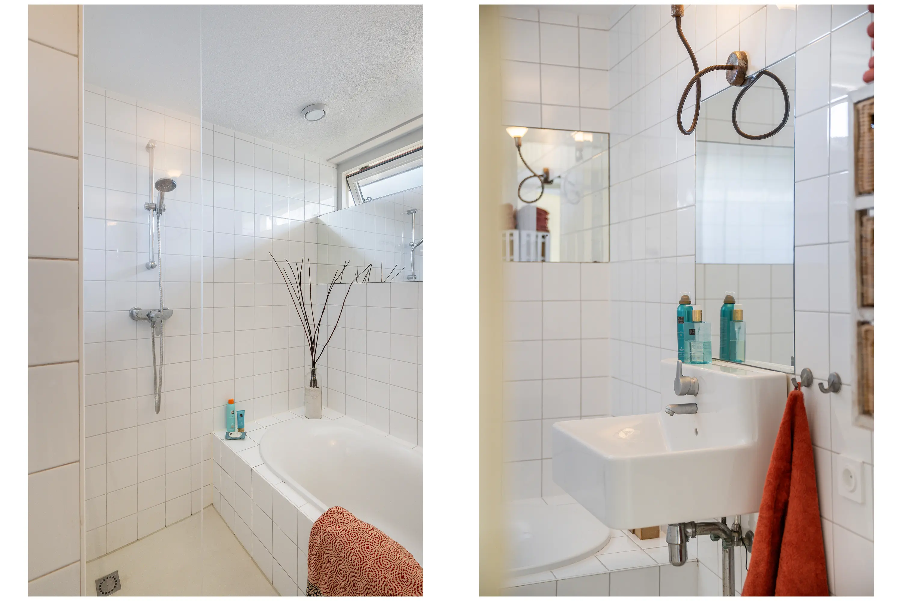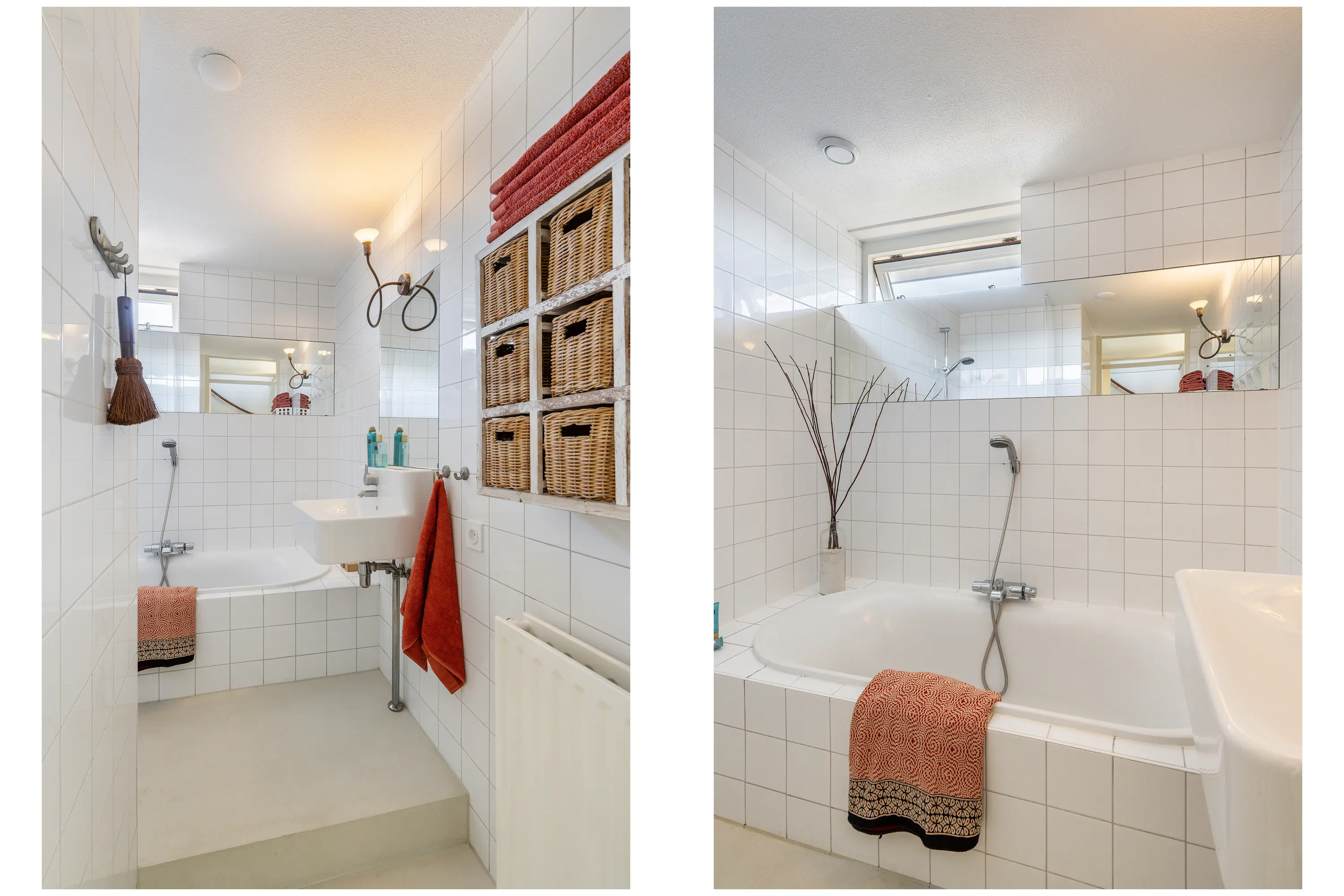 De verdieping beschikt over een separaat derde toilet en een tweede badkamer, compleet uitgerust met inloopdouche, ligbad, wastafel, radiator en mechanische ventilatie. De badkamer is afgewerkt met neutrale wandtegels.