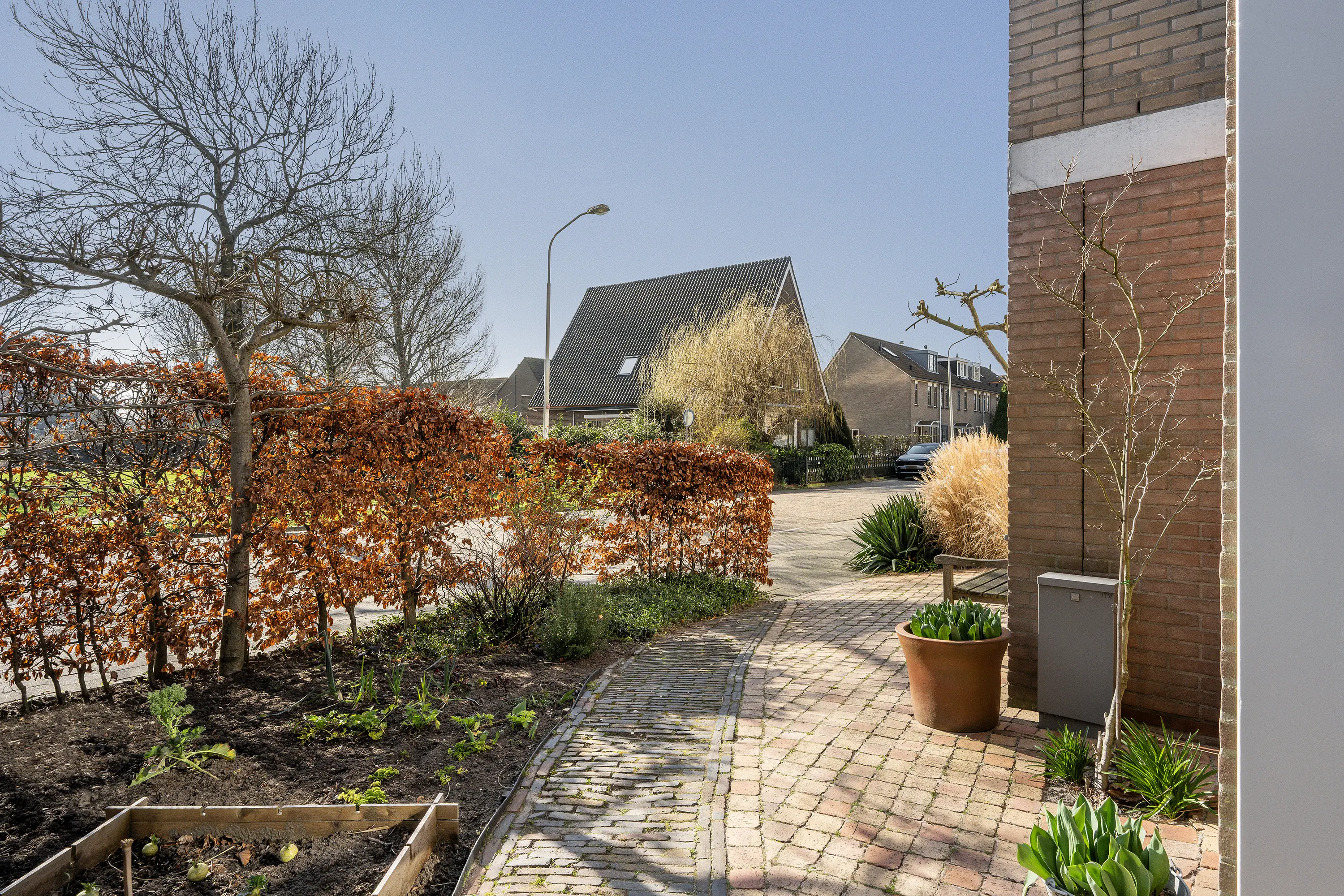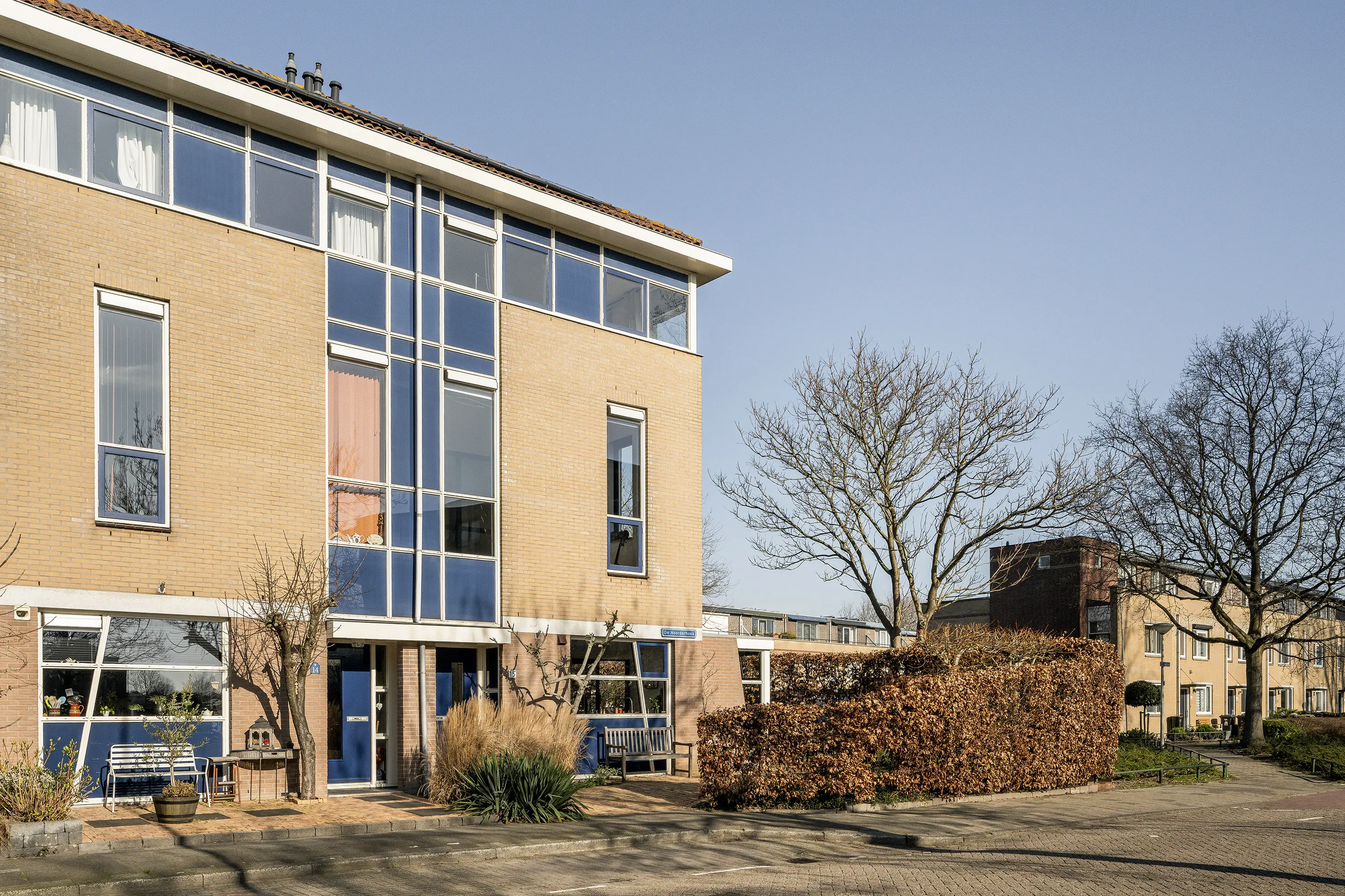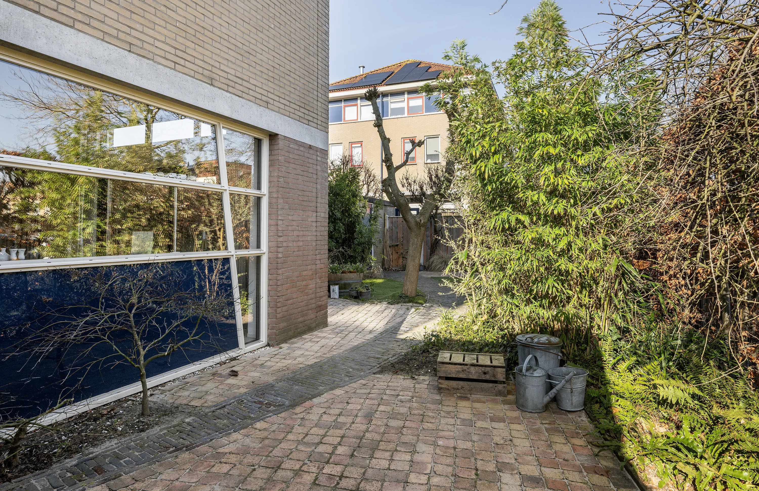 - Gelegen aan een rustige doorgaande straat met vrij uitzicht aan de voorzijde en veel privacy, zon en schaduw aan de achterzijde;