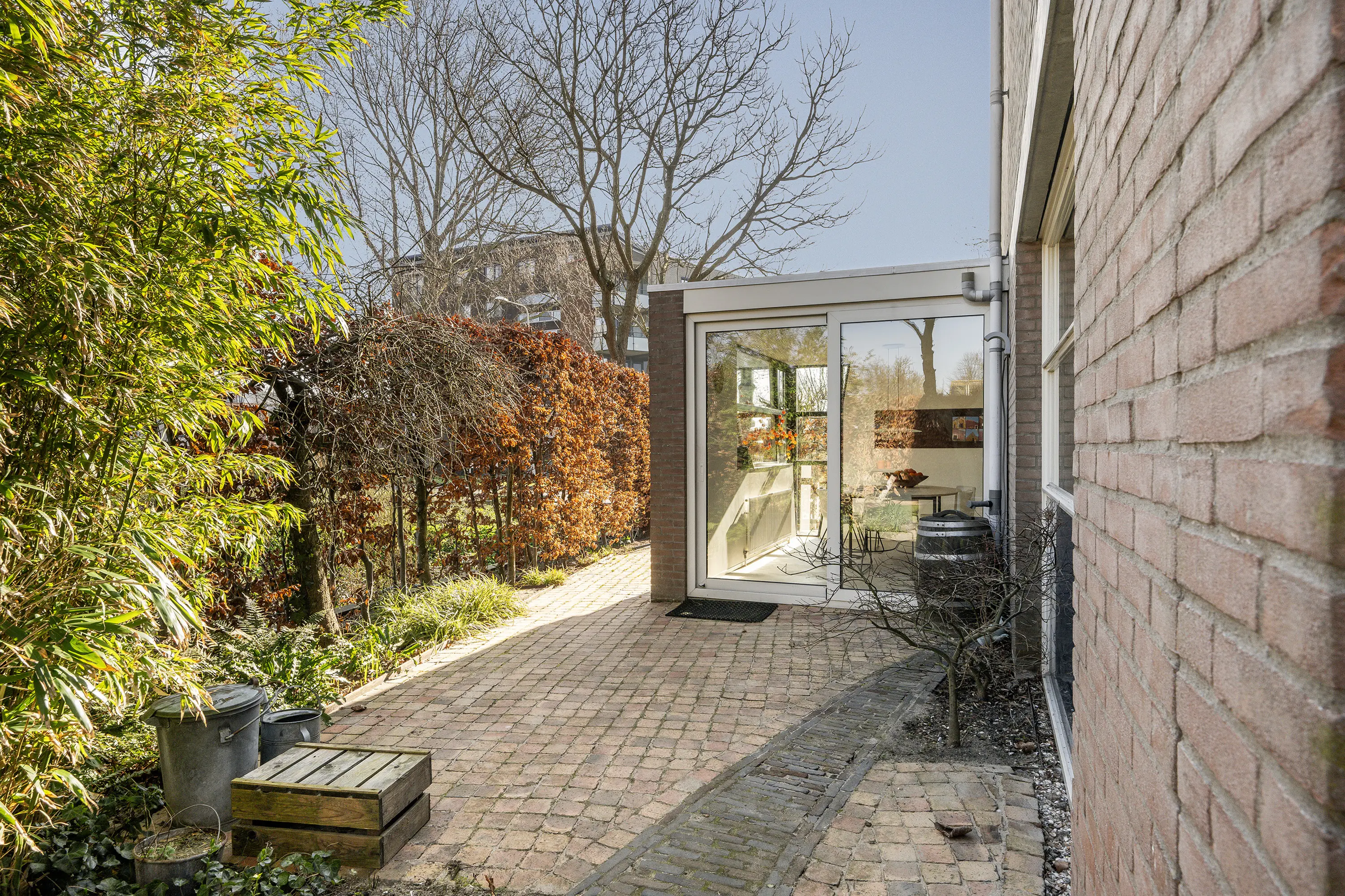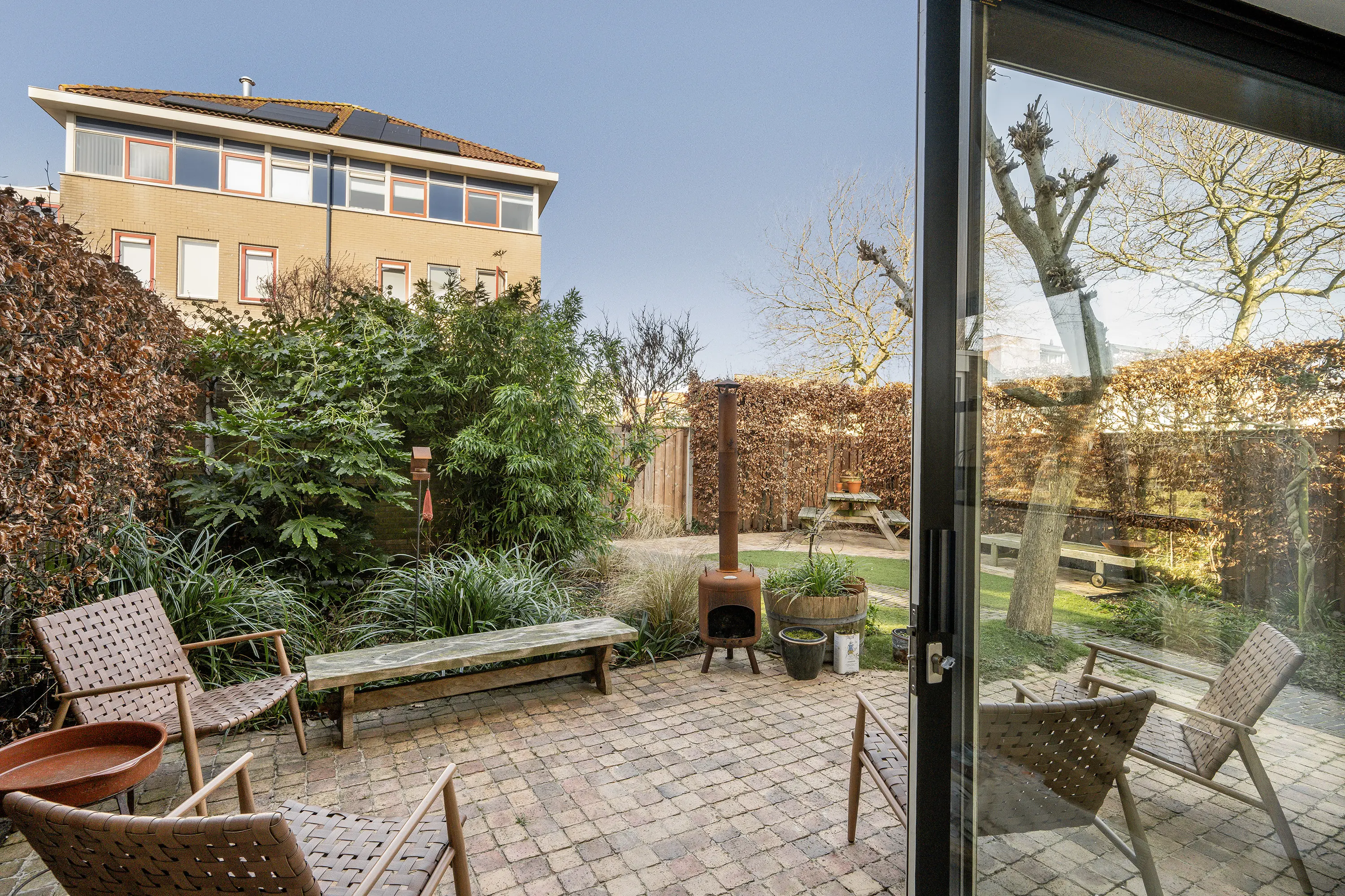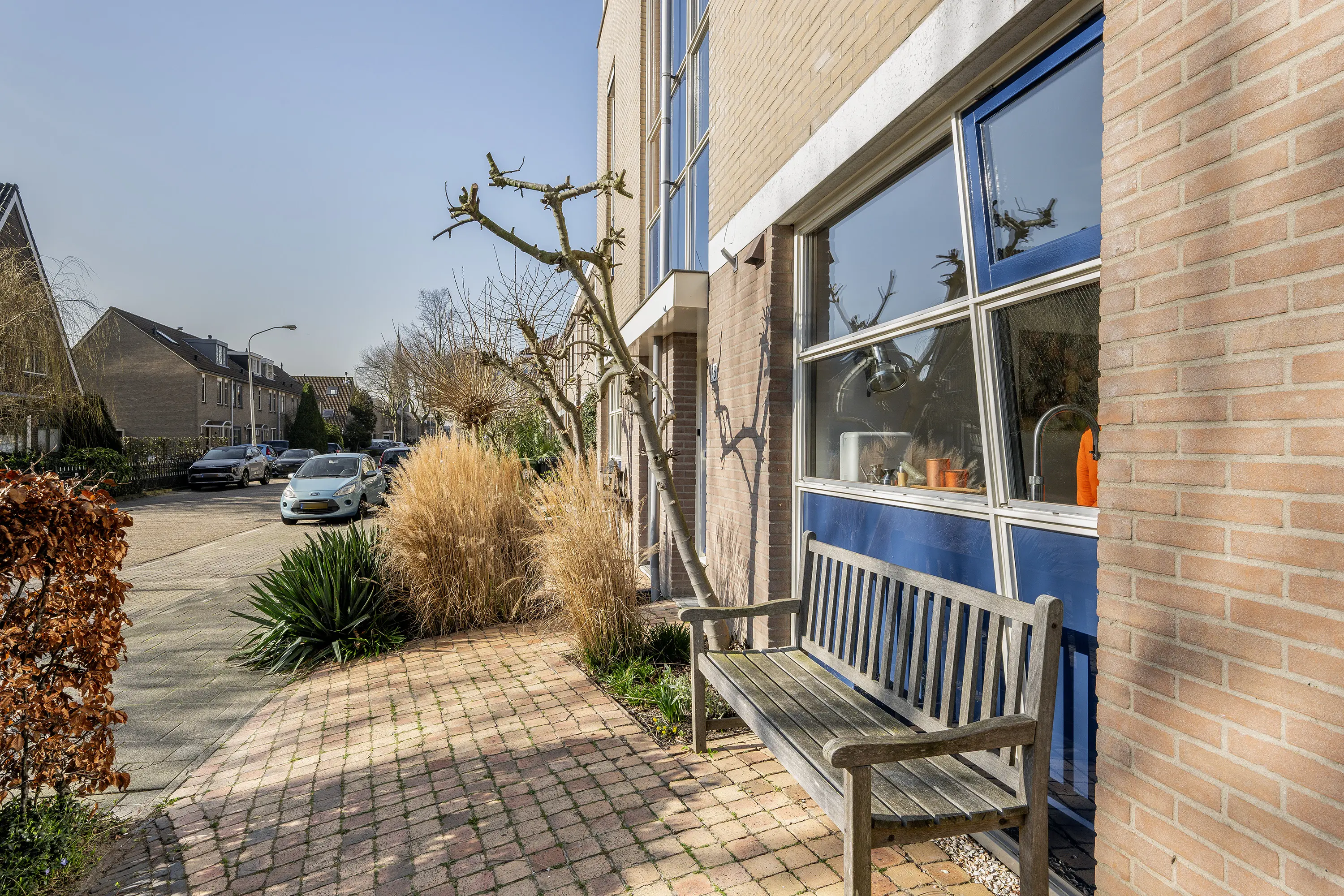 - Gelegen aan een rustige doorgaande straat met vrij uitzicht aan de voorzijde en veel privacy, zon en schaduw aan de achterzijde;