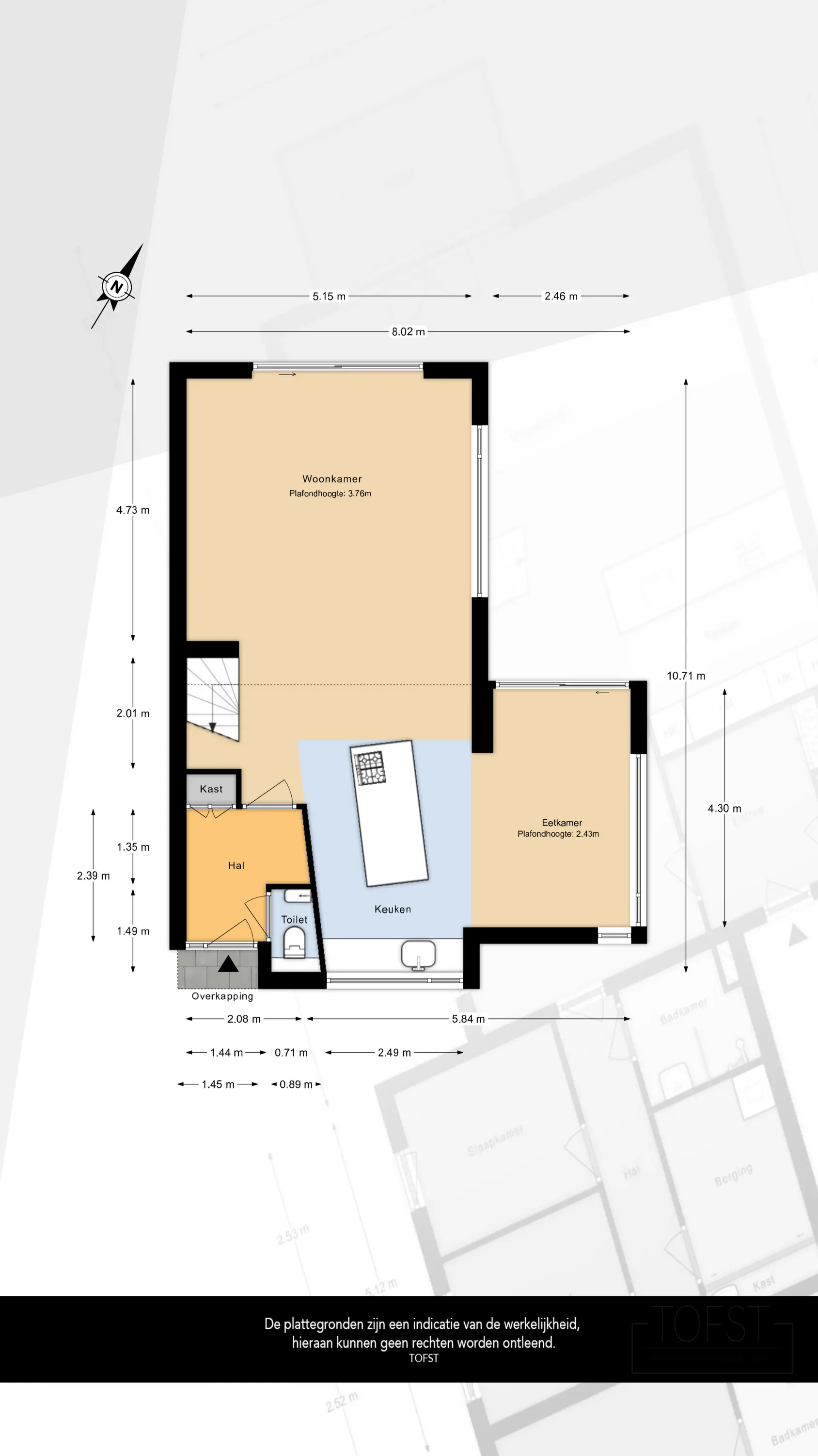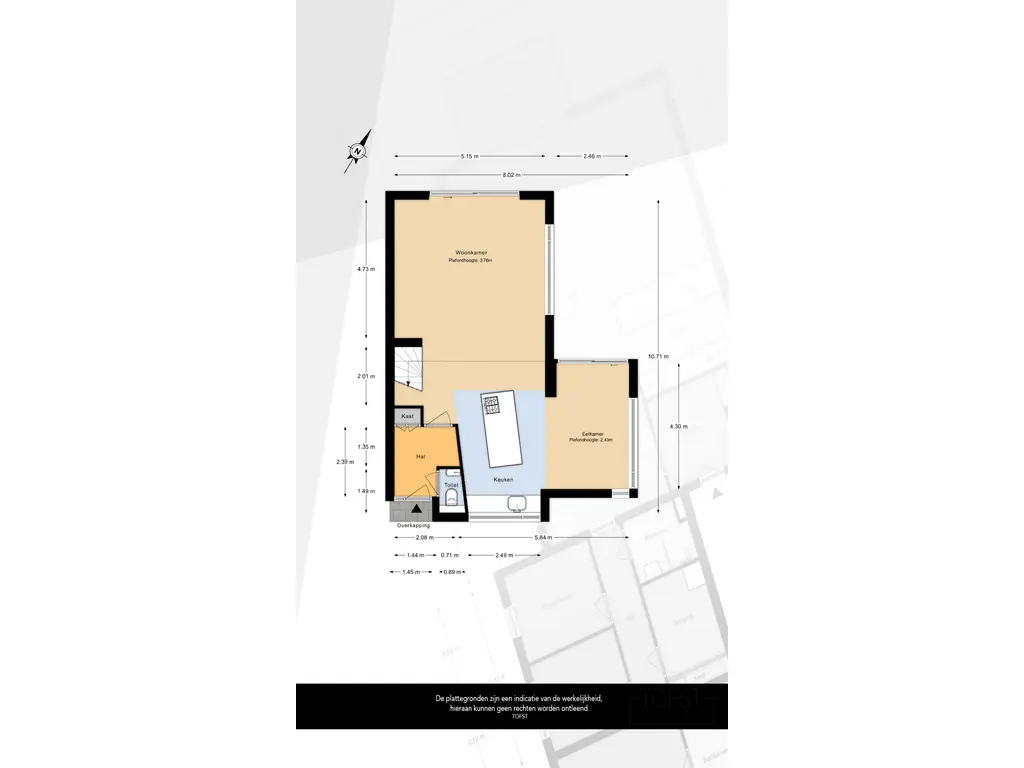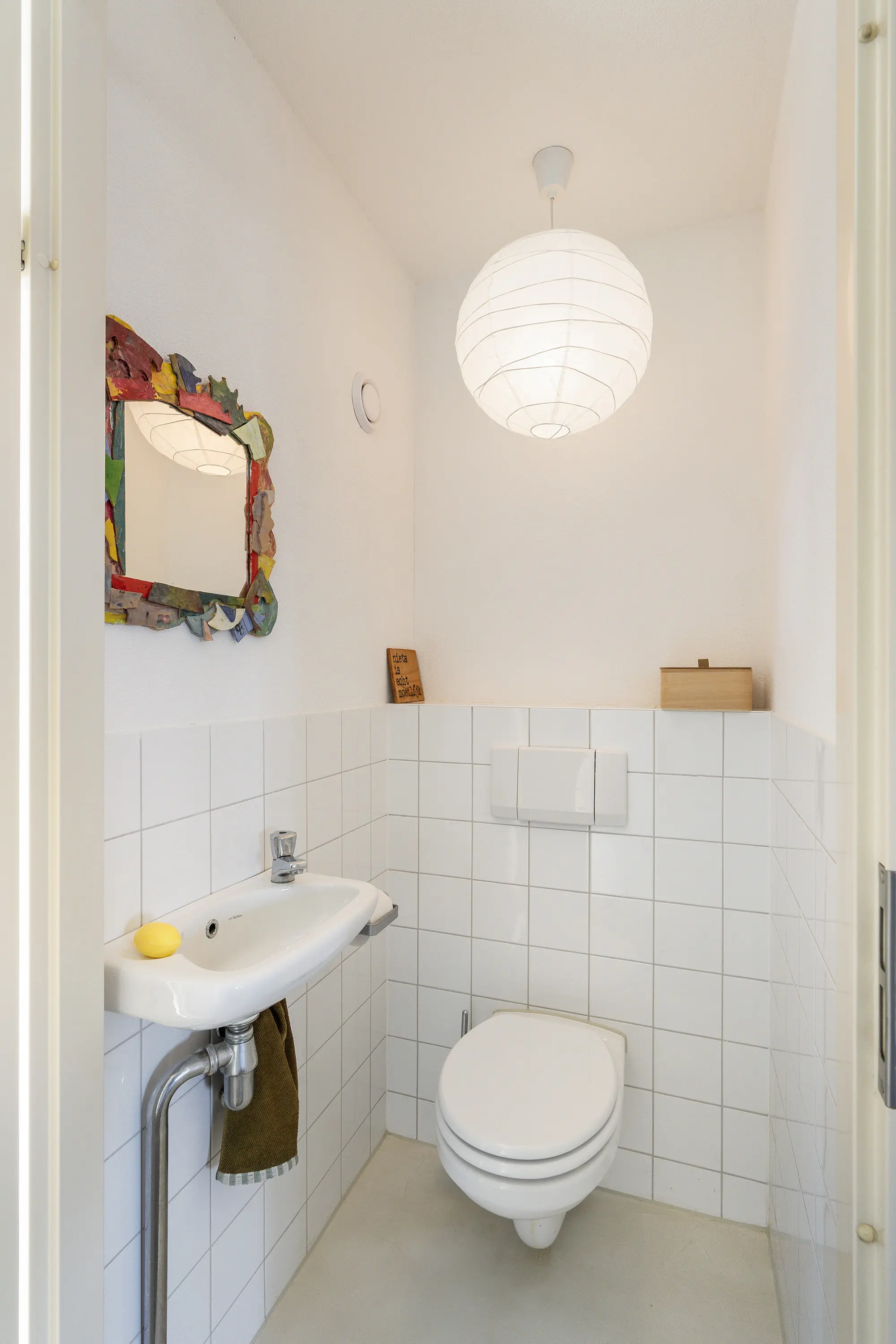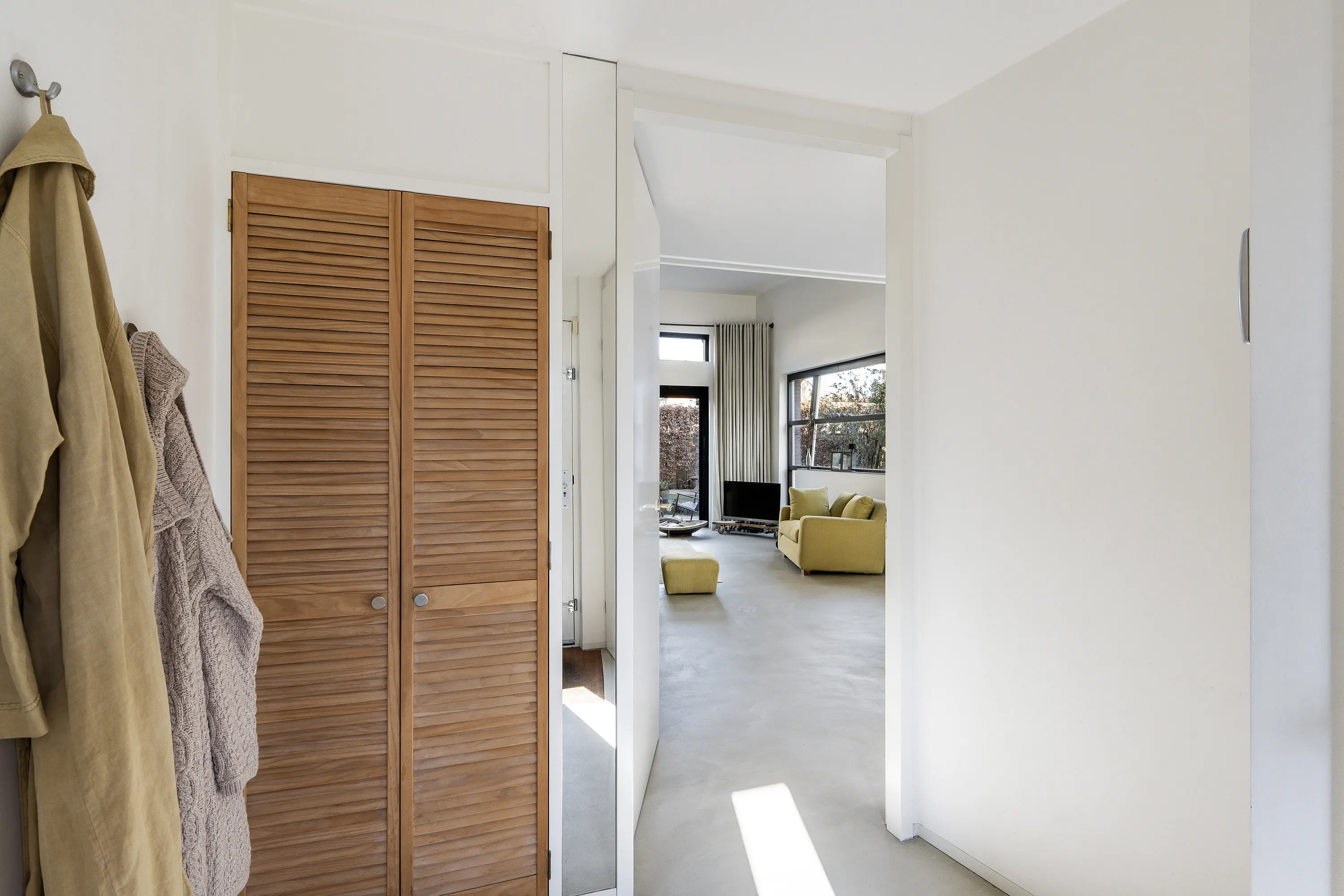 Kom binnen in de verzorgde hal, waar zich de garderobe, meterkast en een moderne toiletruimte bevinden. Vanuit de hal betreedt u de royale en sfeervolle leefruimte.