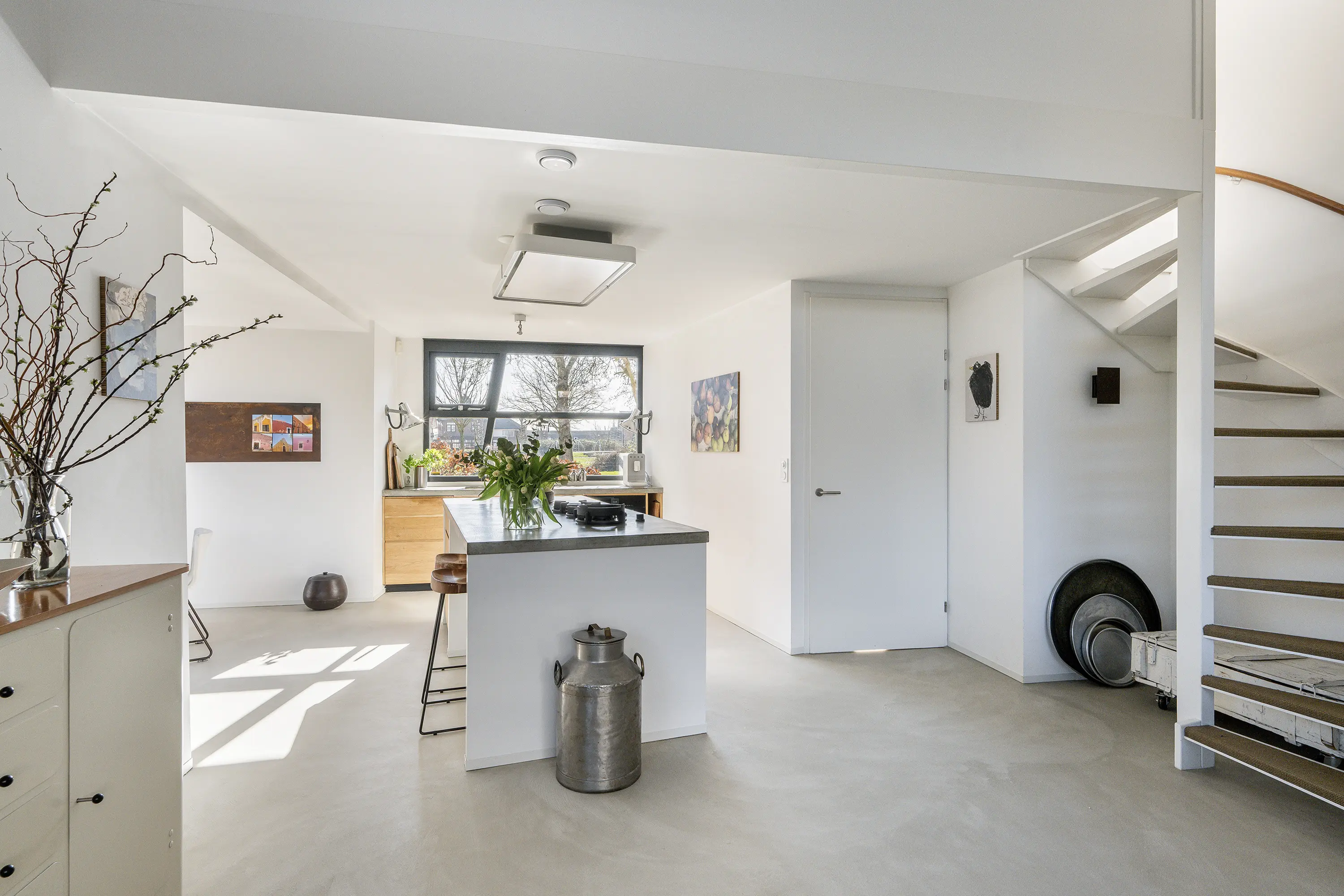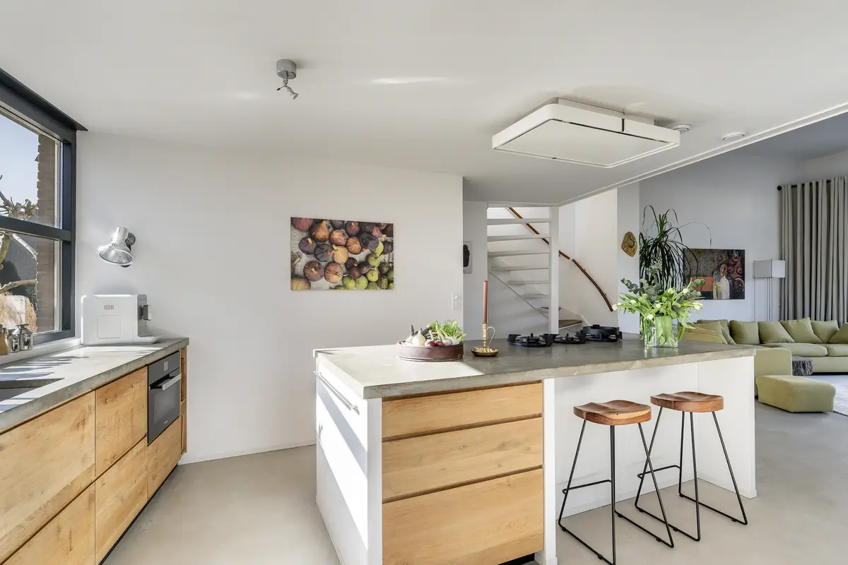 Het licht, de ruimte, de speelse indeling en de hoge plafonds geven deze woning een uniek karakter. De royale woonkeuken is een droom voor iedere kookliefhebber en voorzien van alle moderne apparatuur. Deze plek vormt het hart van de woning, ideaal om samen te koken, te eten en te genieten van momenten met familie en vrienden.