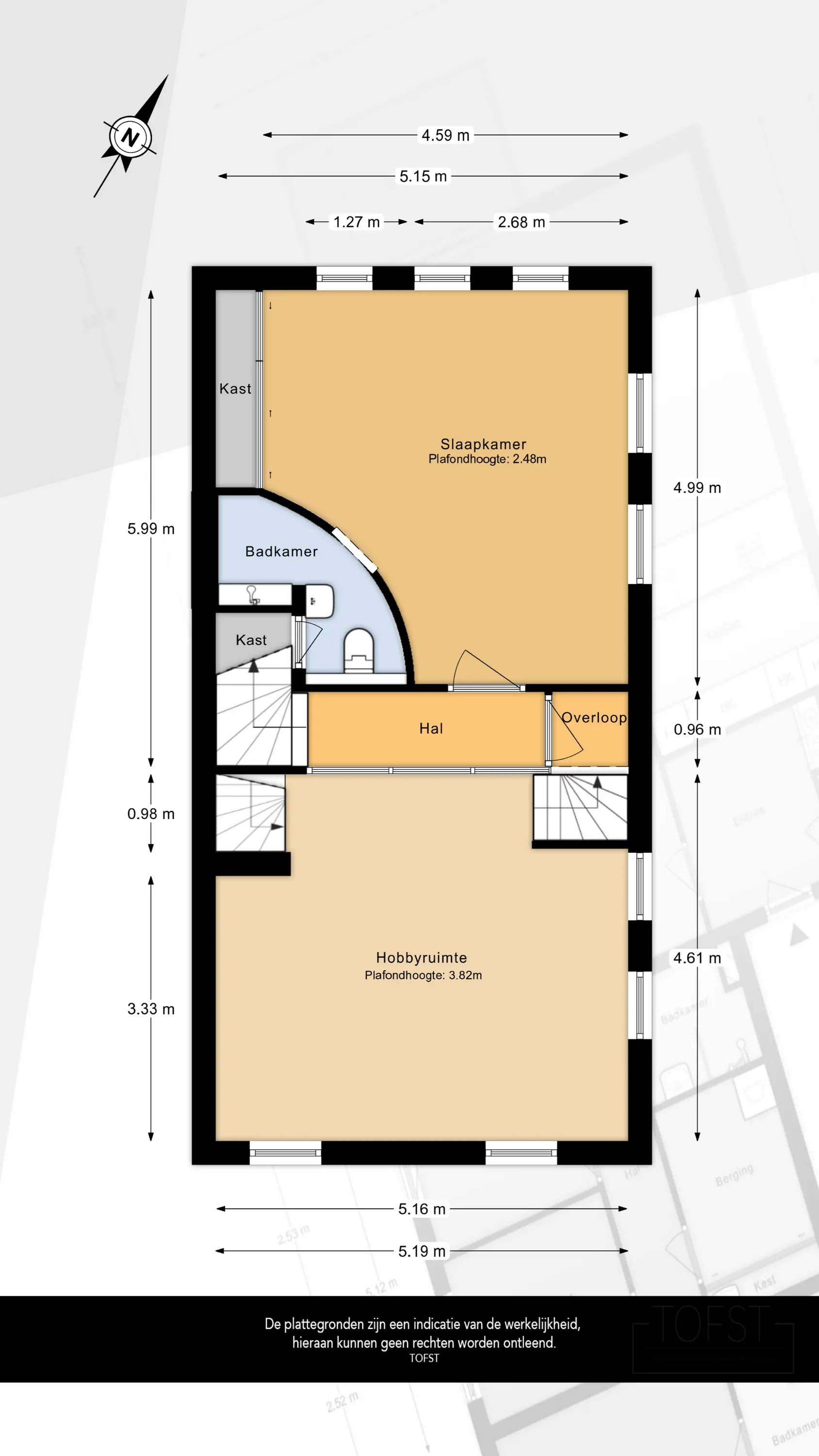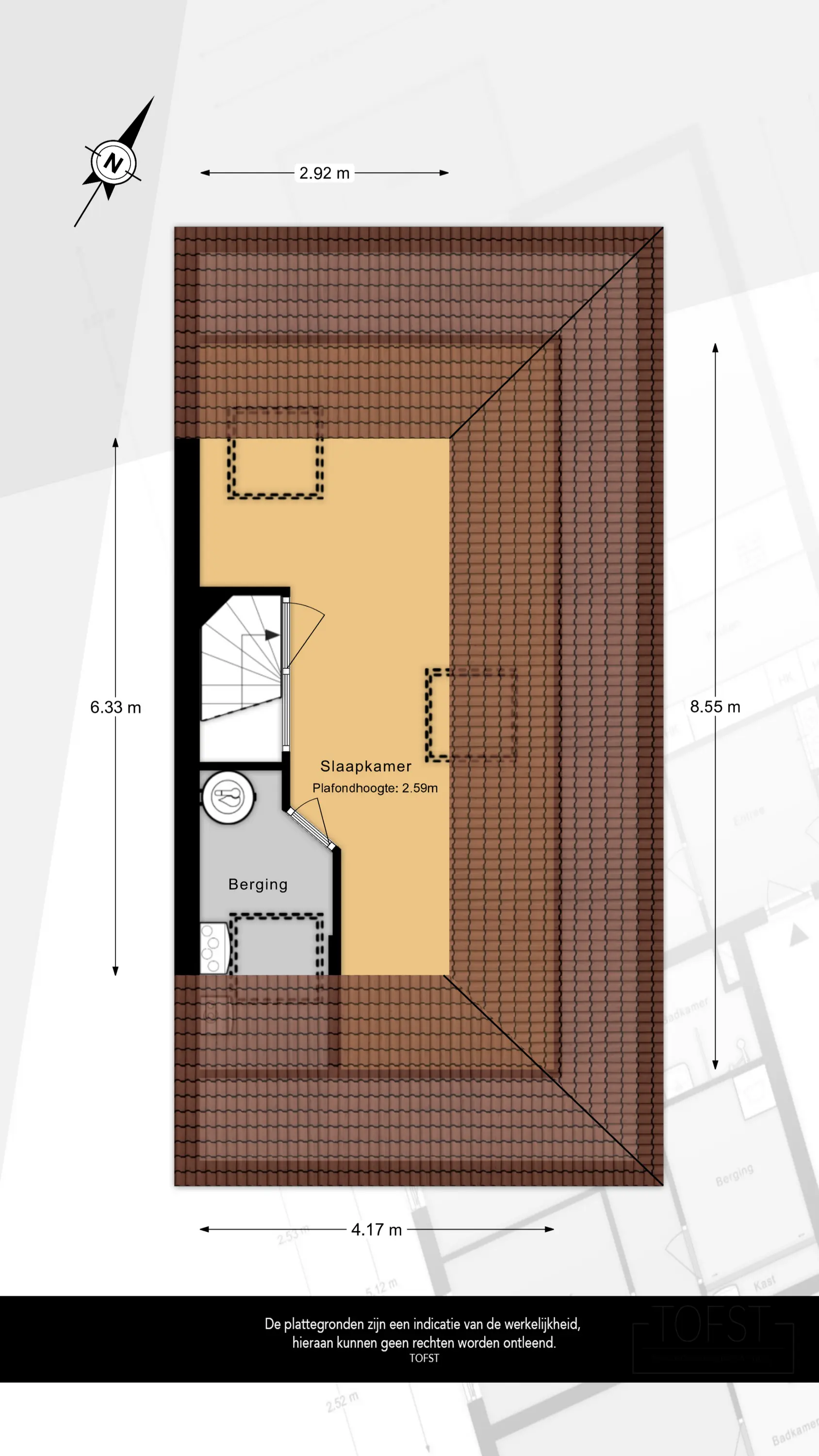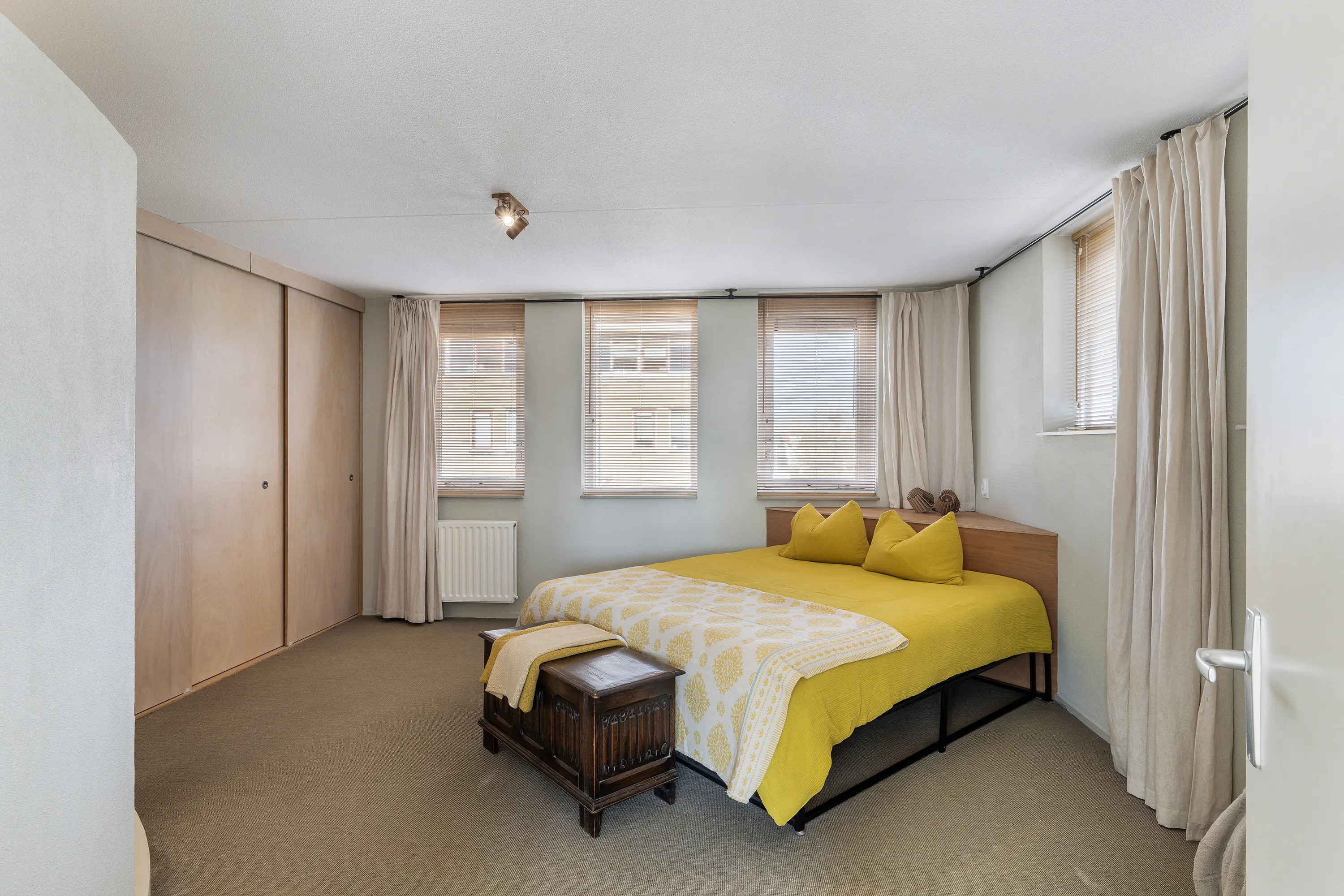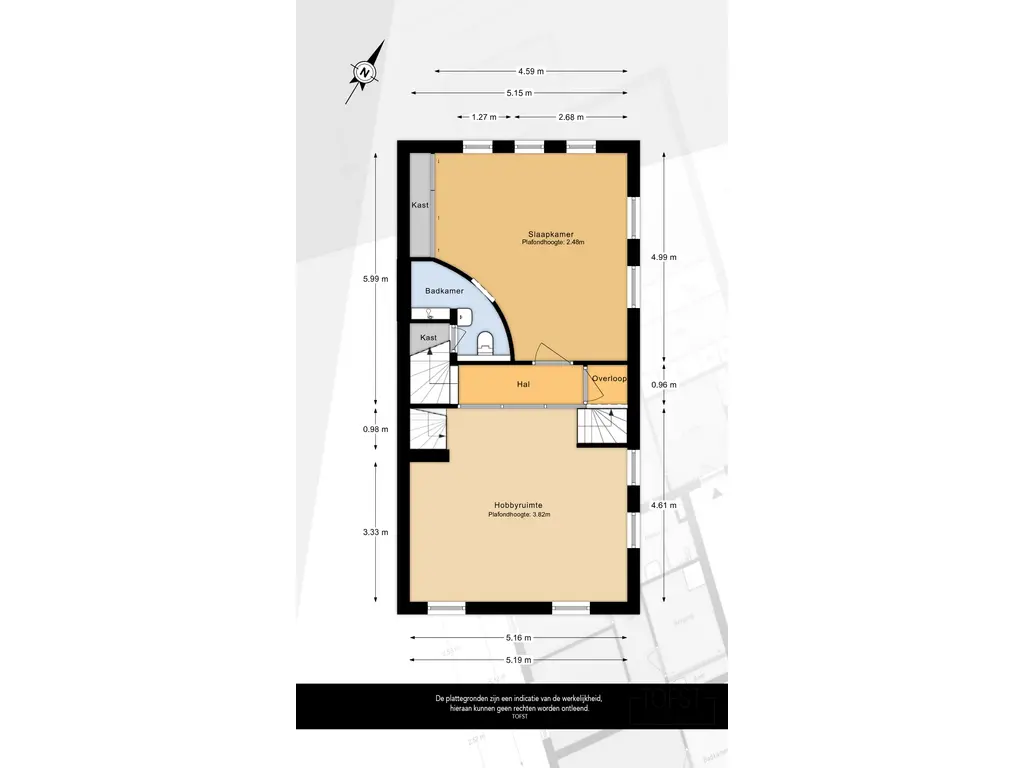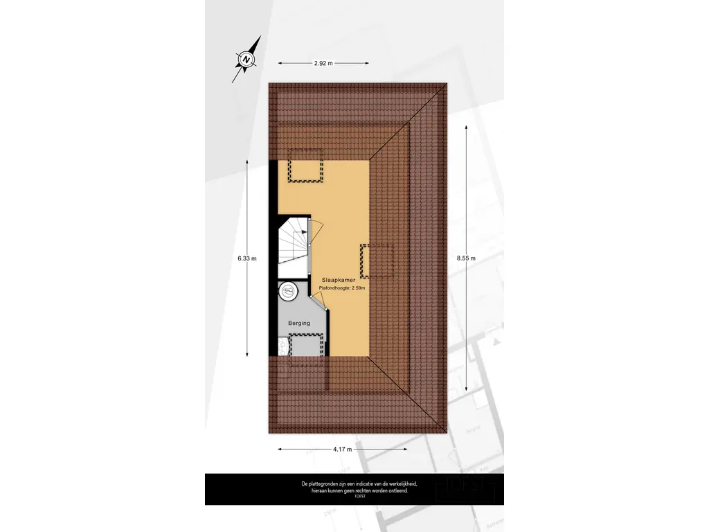 De derde verdieping biedt een extra slaapkamer of werkruimte. De kamer is voorzien van twee grote dakramen, waardoor er veel daglicht binnenvalt en de ruimte een aangename, lichte sfeer heeft.