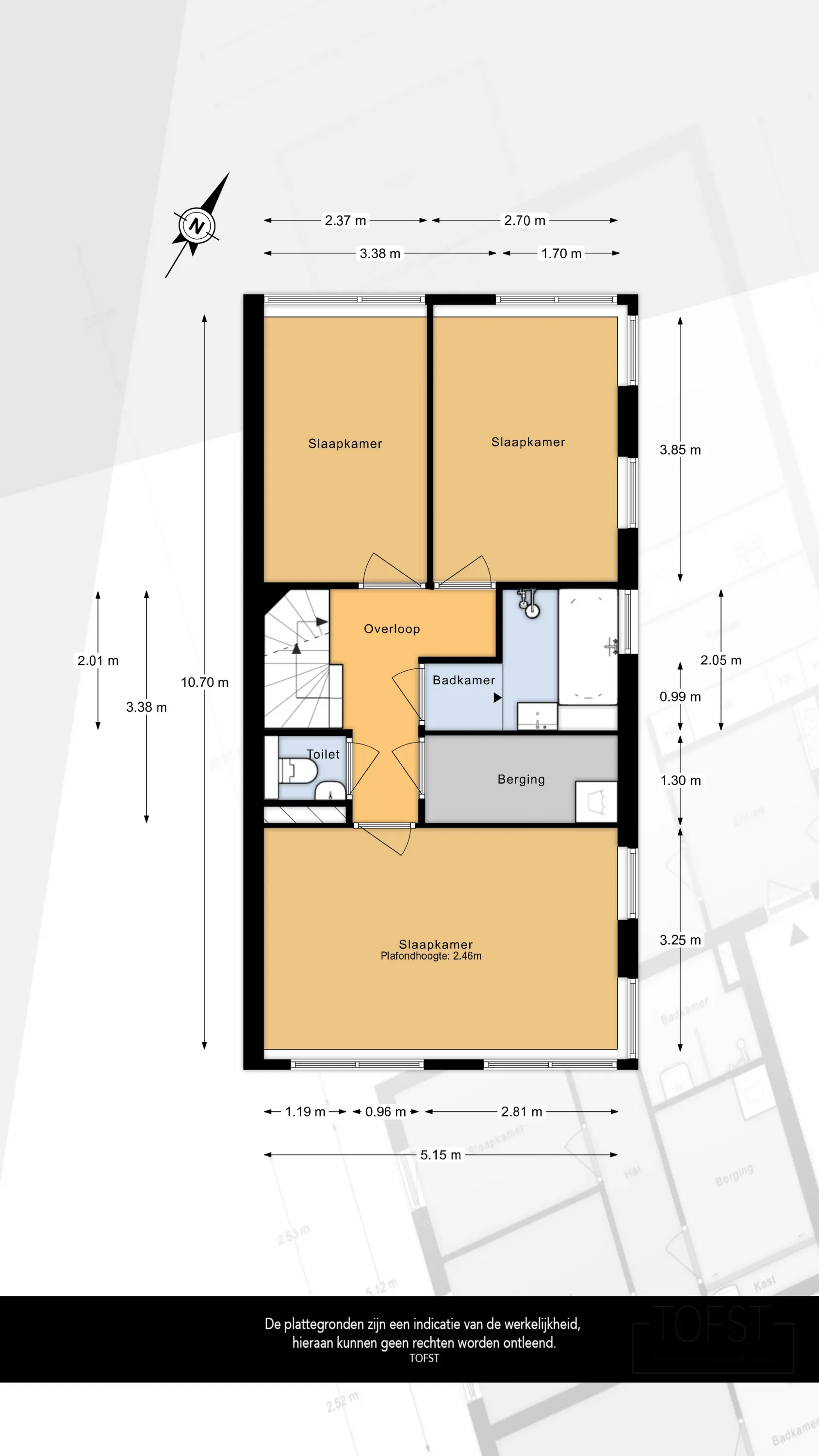 De overige twee goed bemeten slaapkamers op deze verdieping zijn gelegen aan de achterzijde van de woning.