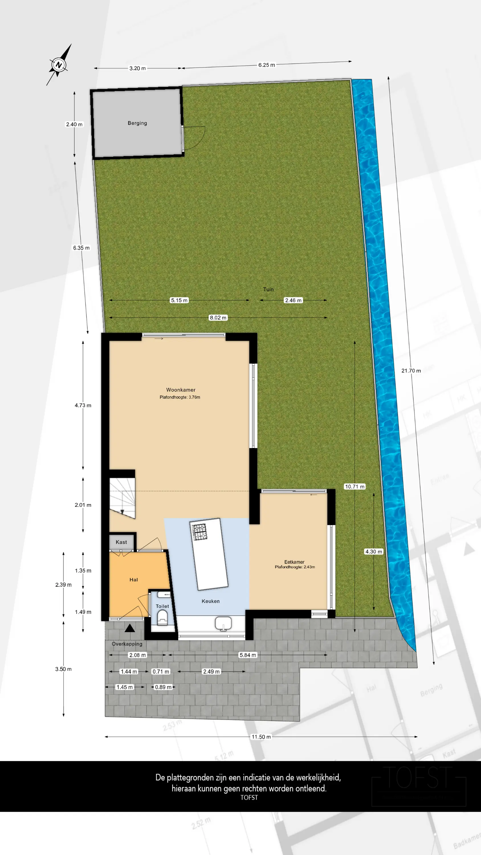 De woning ligt aan een rustige doorgaande straat met vrij uitzicht op het park aan de voorzijde, water aan de zijzijde en de fraaie zij- en achtertuin bieden volop privacy, zon én schaduw.