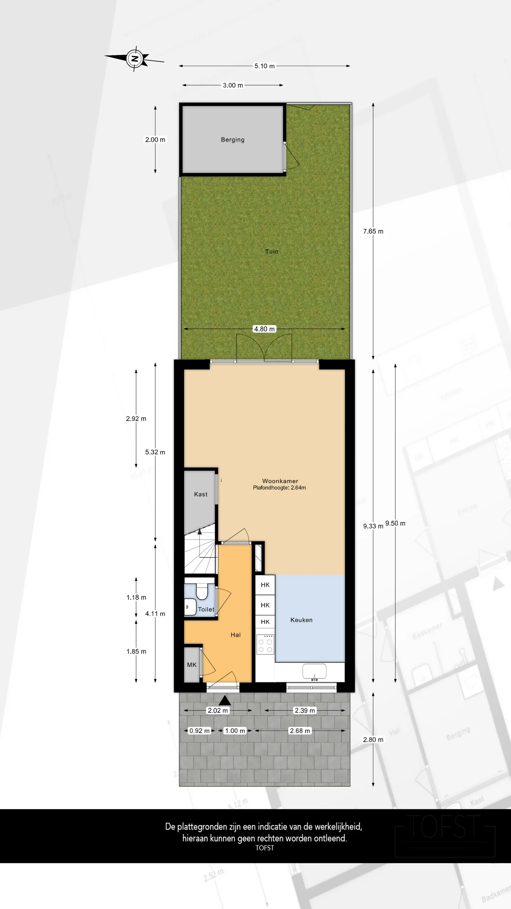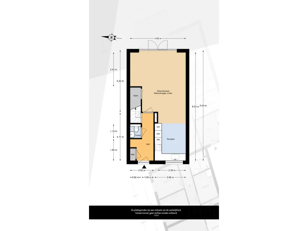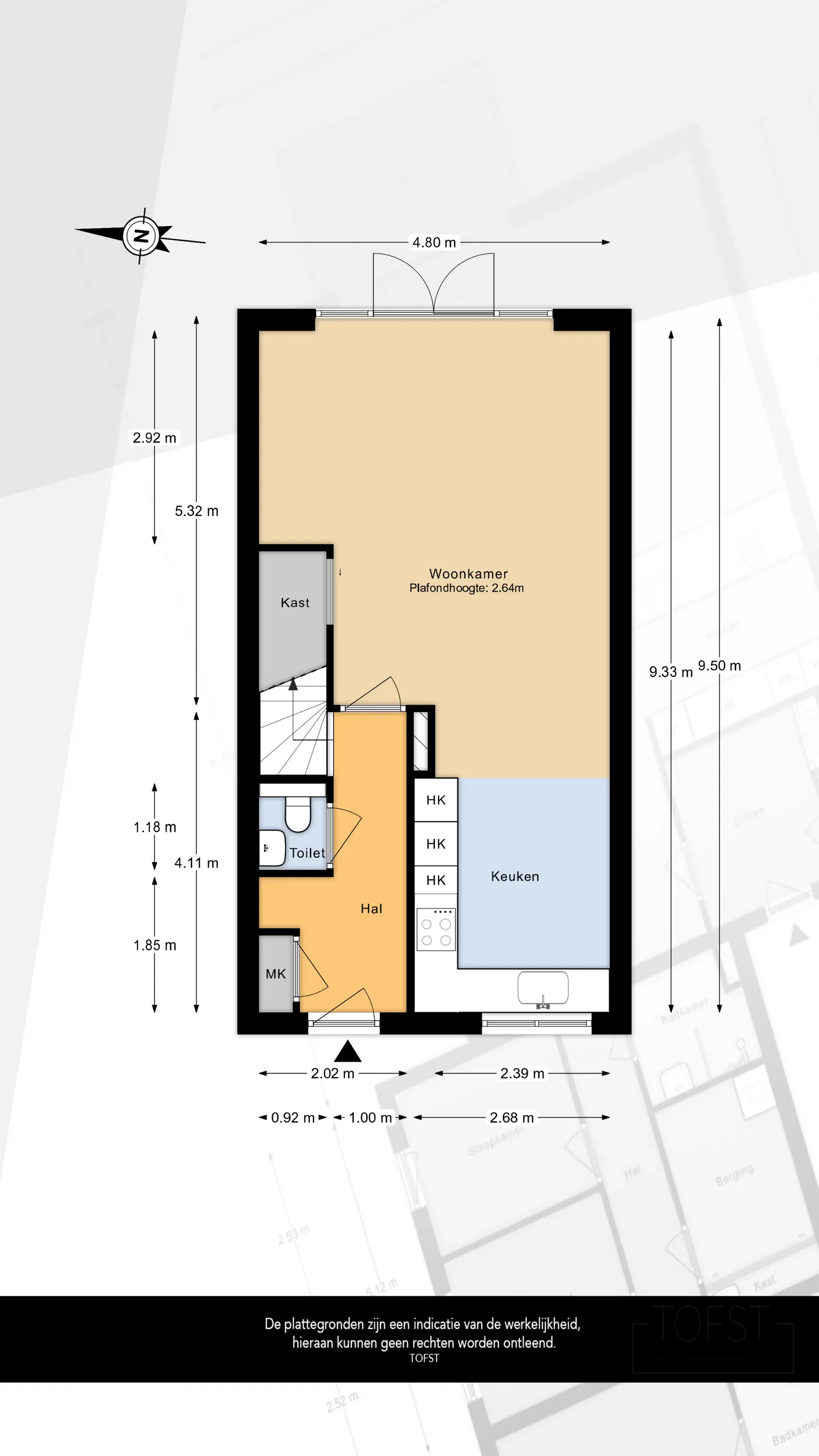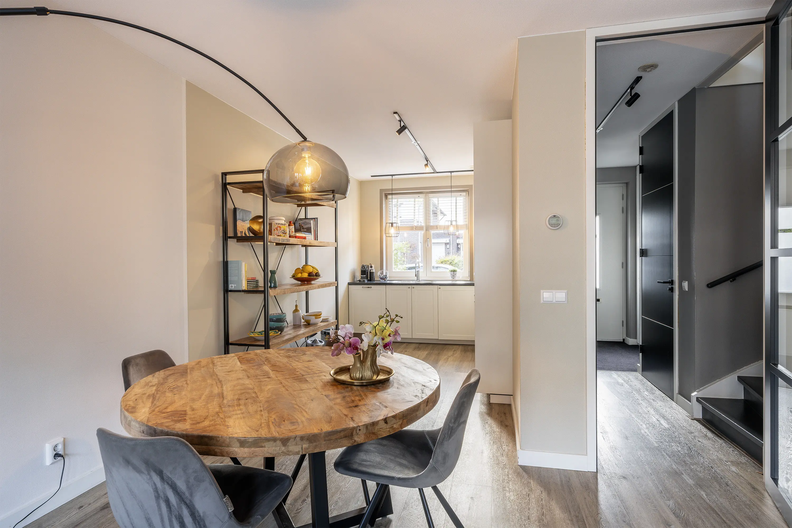 Achter de entree van de woning bevindt zich een knusse hal met betegelde lambrisering, alwaar de meterkast, toiletruimte en vaste trapopgang naar de verdieping. Een hardhouten tussendeur met metaallook leidt naar de sfeervolle woonkamer waar het vele daglicht dat via de openslaande deuren naar binnen valt heel kenmerkend is.