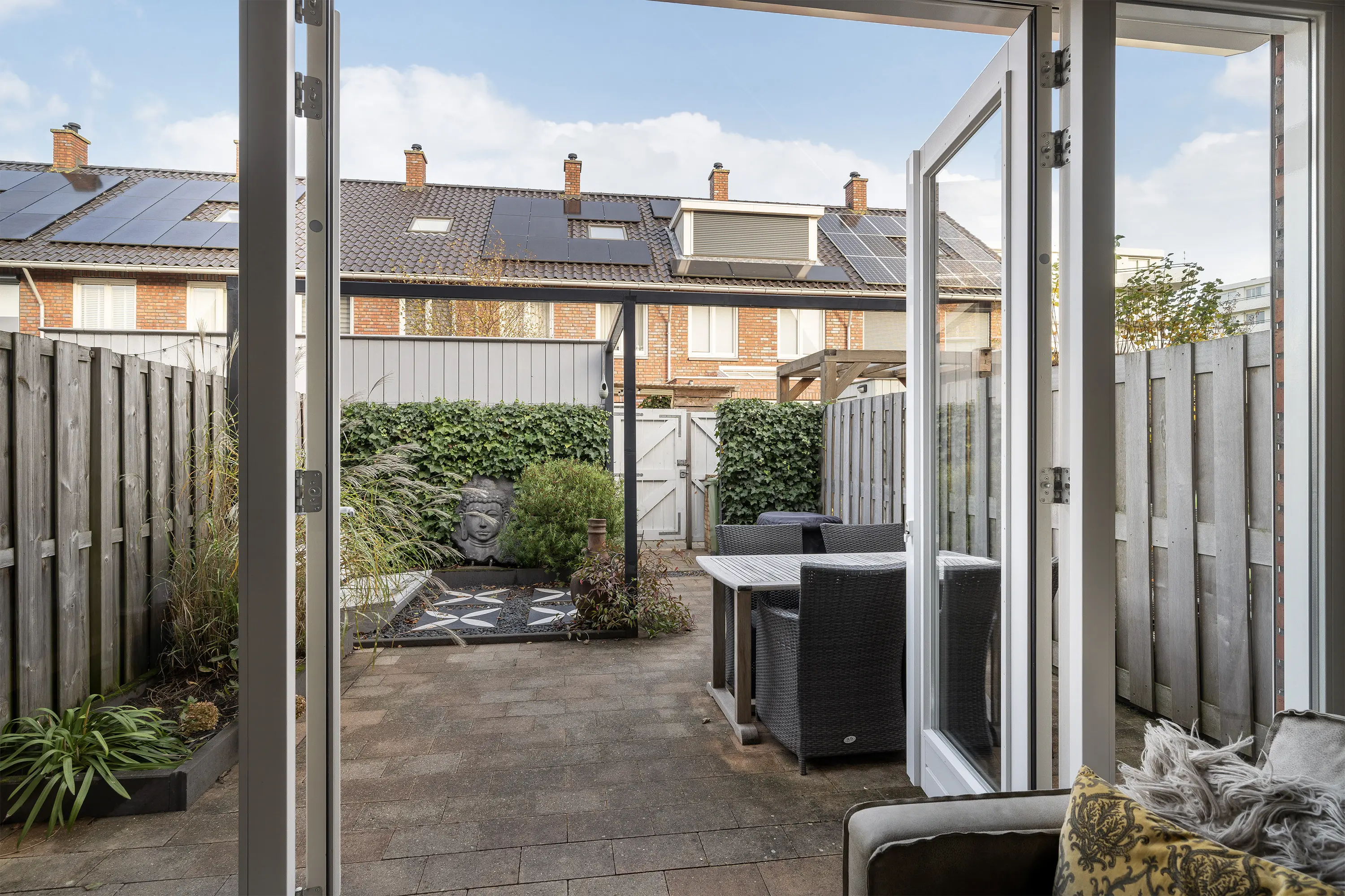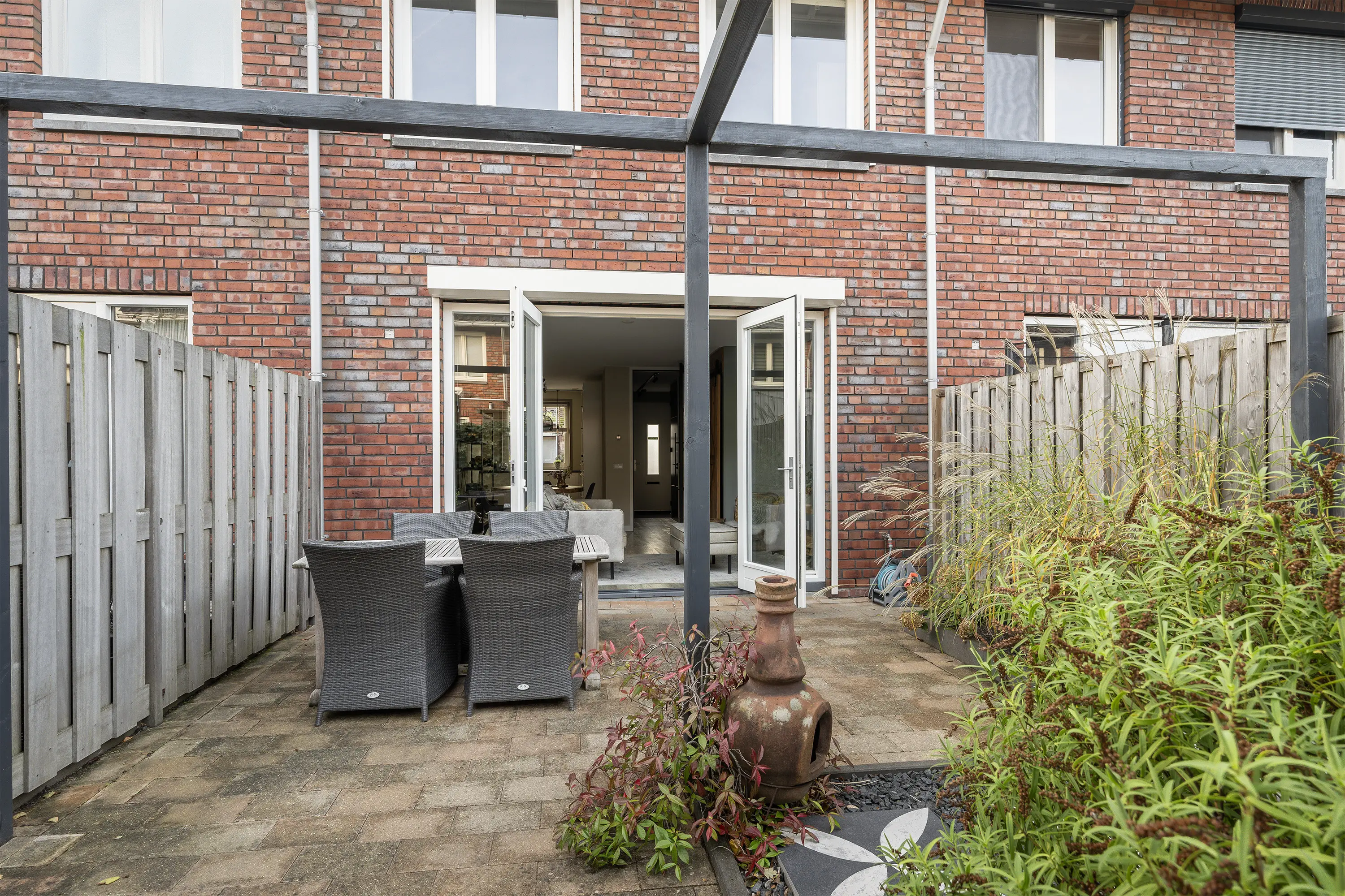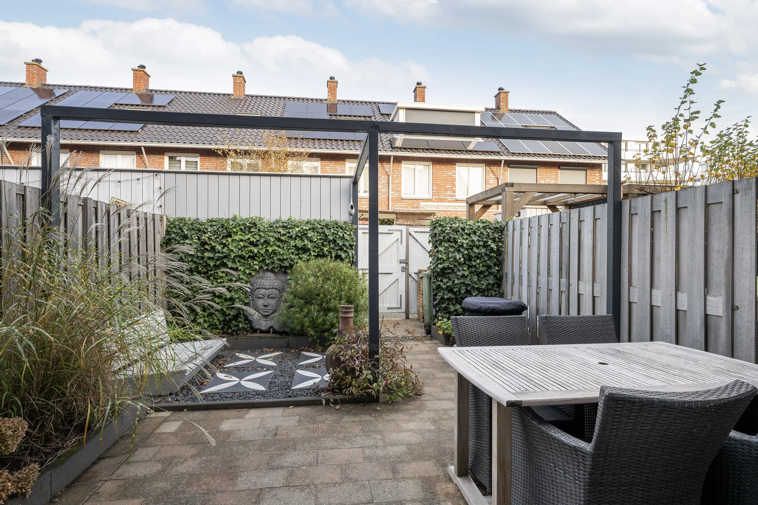 De afvalbakken staan netjes uit het zicht achter een groene heg, de schuur is middels een achterom bereikbaar; ideaal om uw fietsen te stallen. In zowel de voor- als achtertuin hangt een praktische buitenkraan aan de gevel.