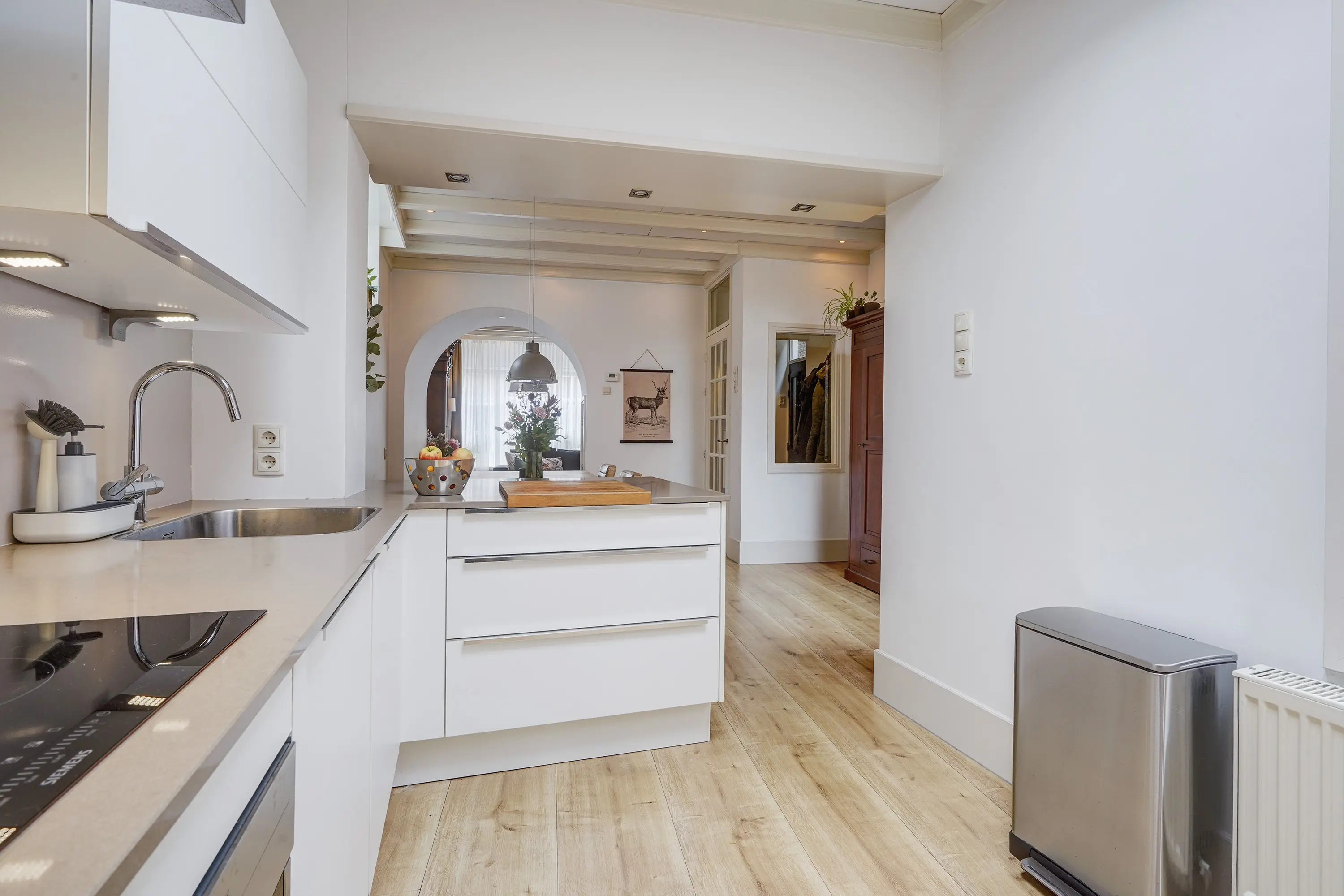 Via een hal met vaste trapopgang komt u centraal in de woonkamer uit, met aan de voorzijde een ruime zithoek en aan de achterzijde een grote open keuken met voldoende ruimte voor een eethoek.