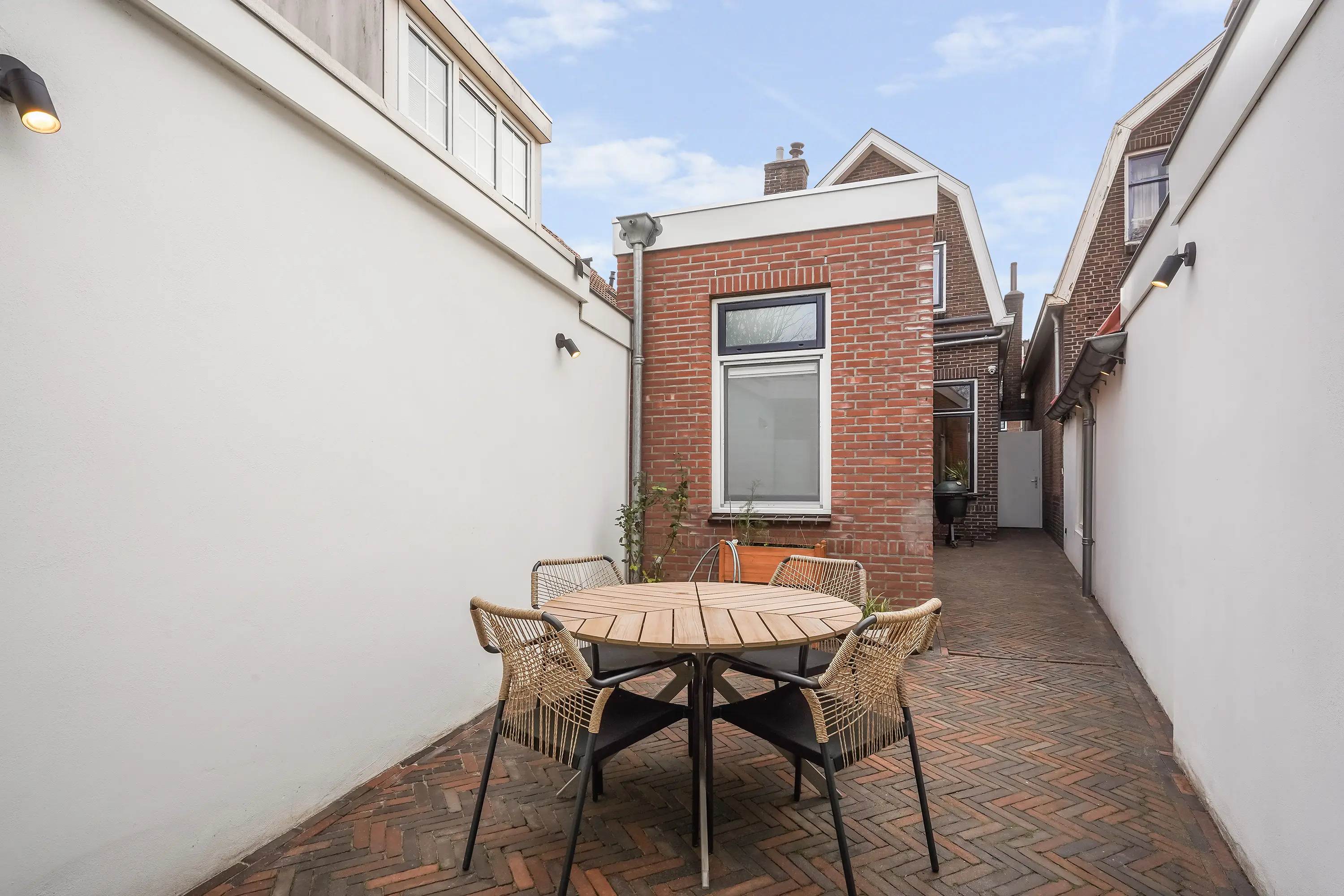 Een loopdeur tussen de keuken en badkamer leidt naar de achtertuin, gesitueerd op het noordwesten. Op de bestrate achterplaats kunt u heerlijk buiten zitten.