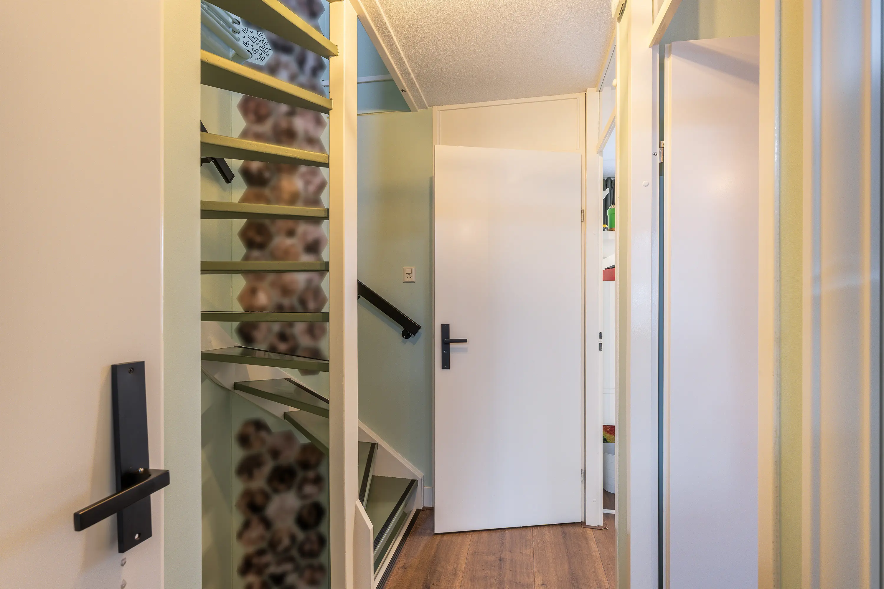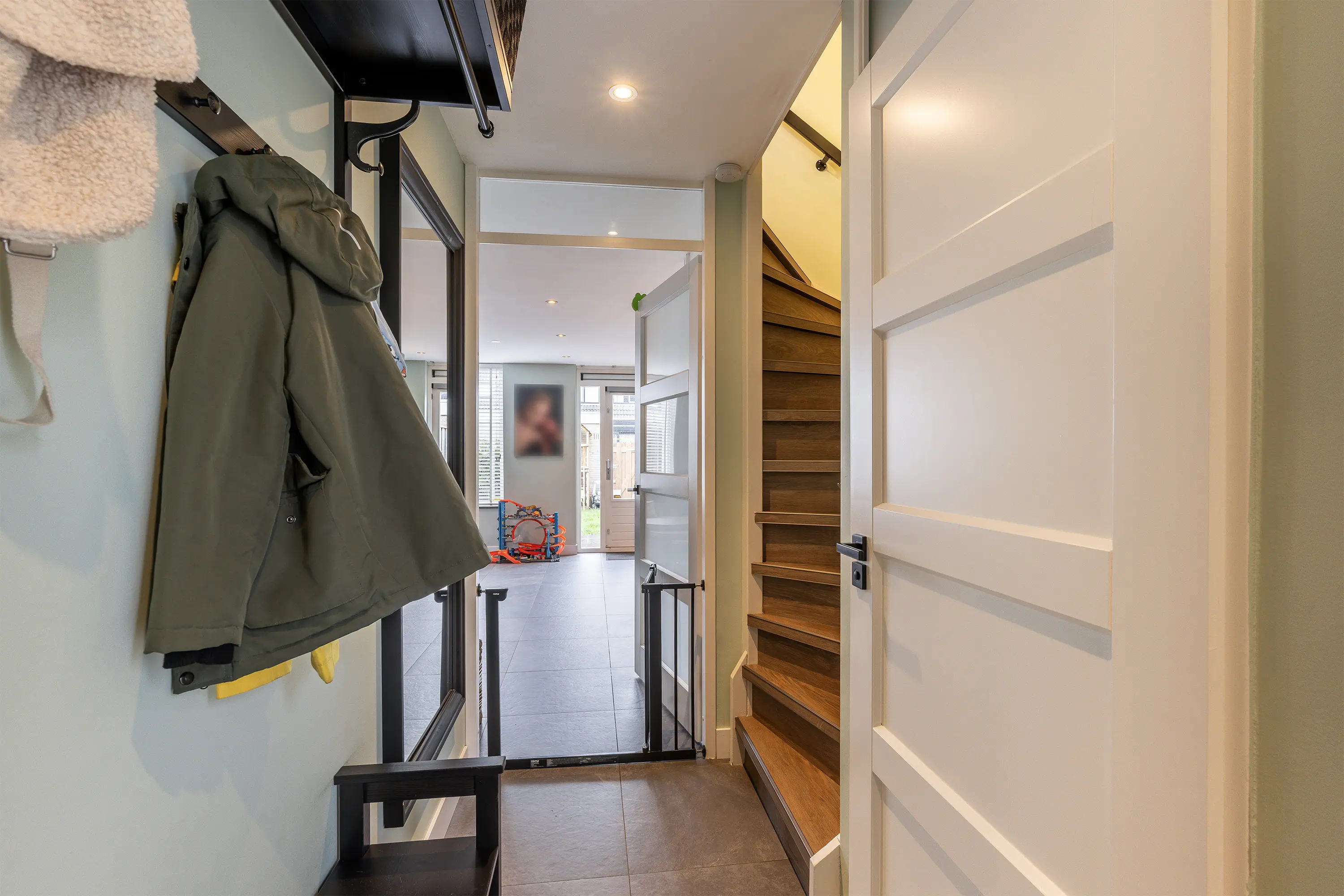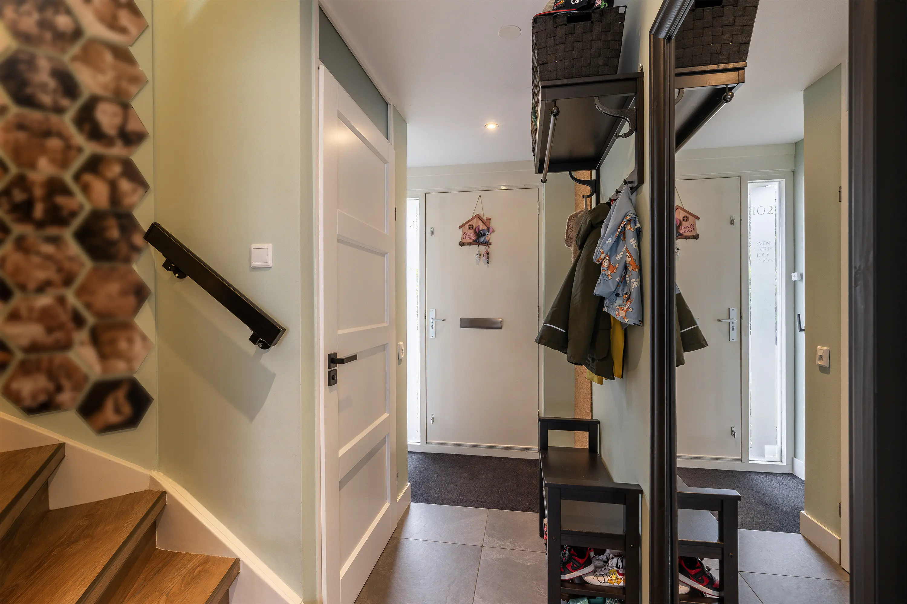 Via de verzorgde voortuin bereikt u de entree van de woning. In de hal bevinden zich de meterkast, het toilet en de trapopgang naar de eerste verdieping.