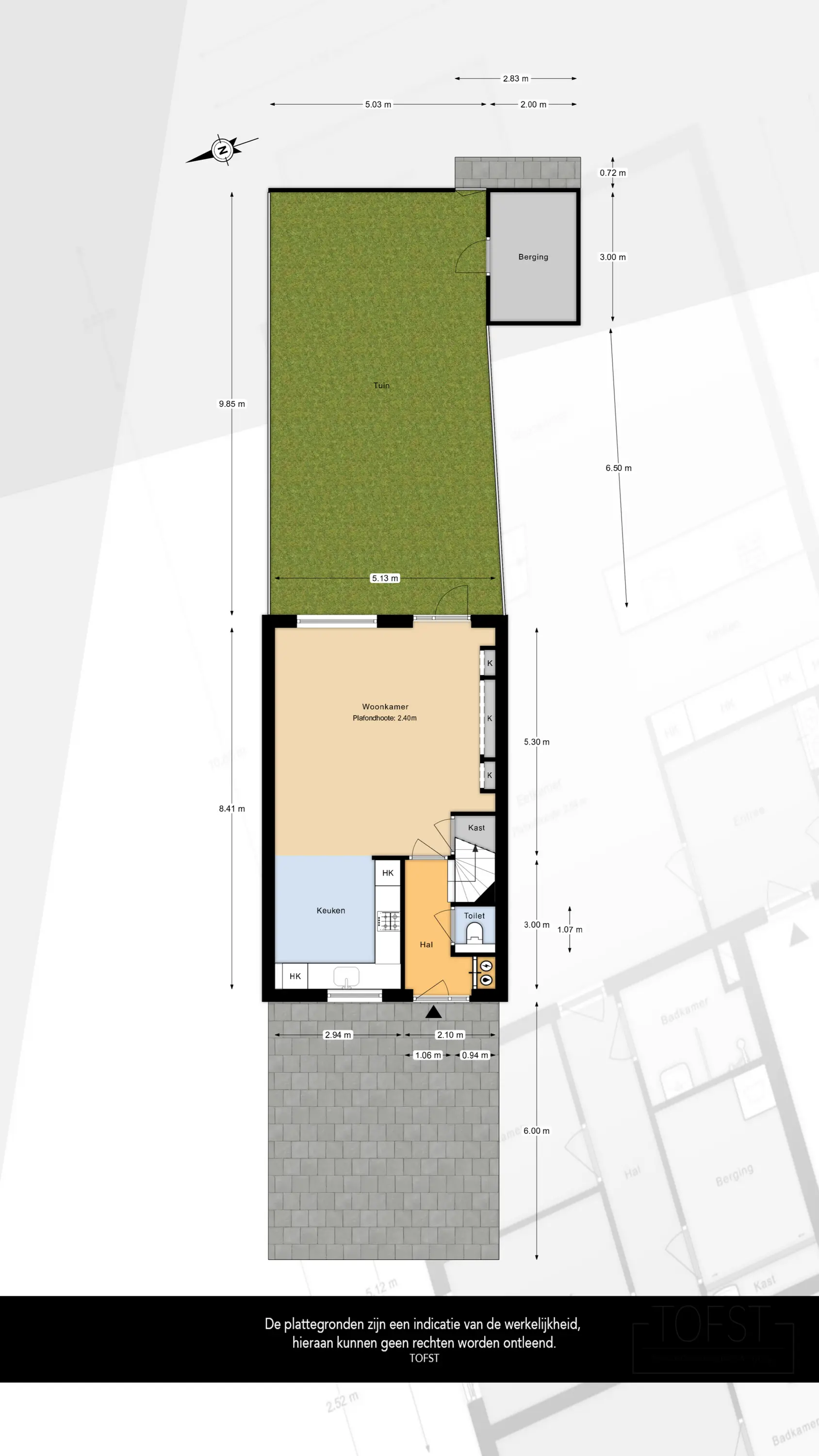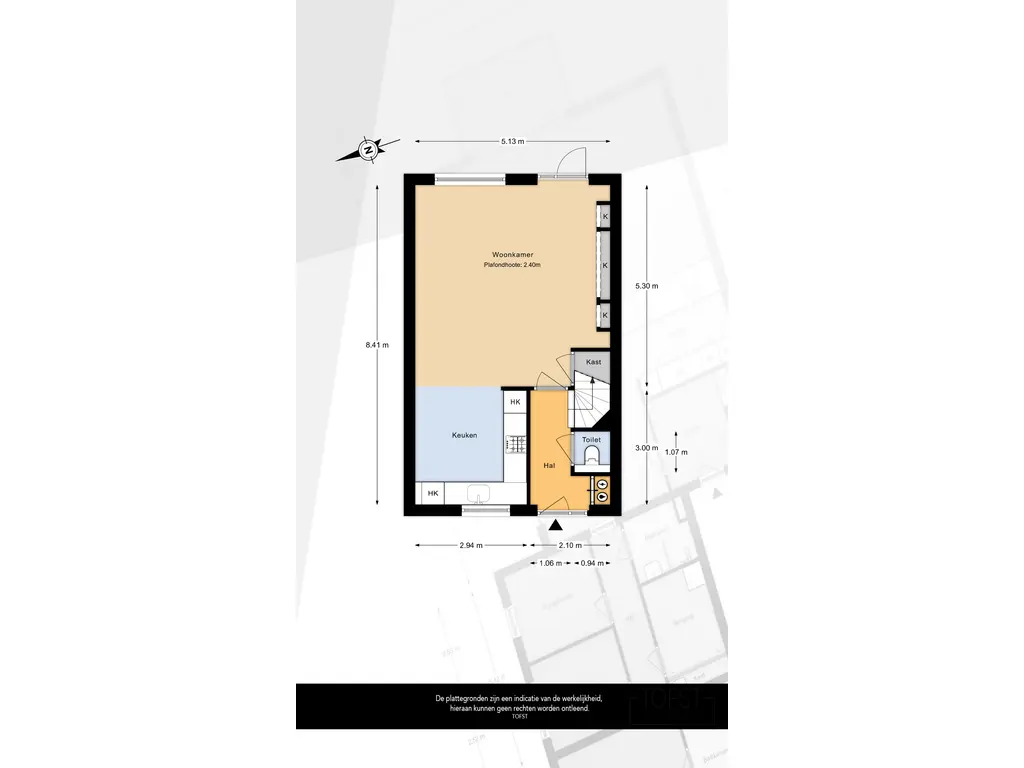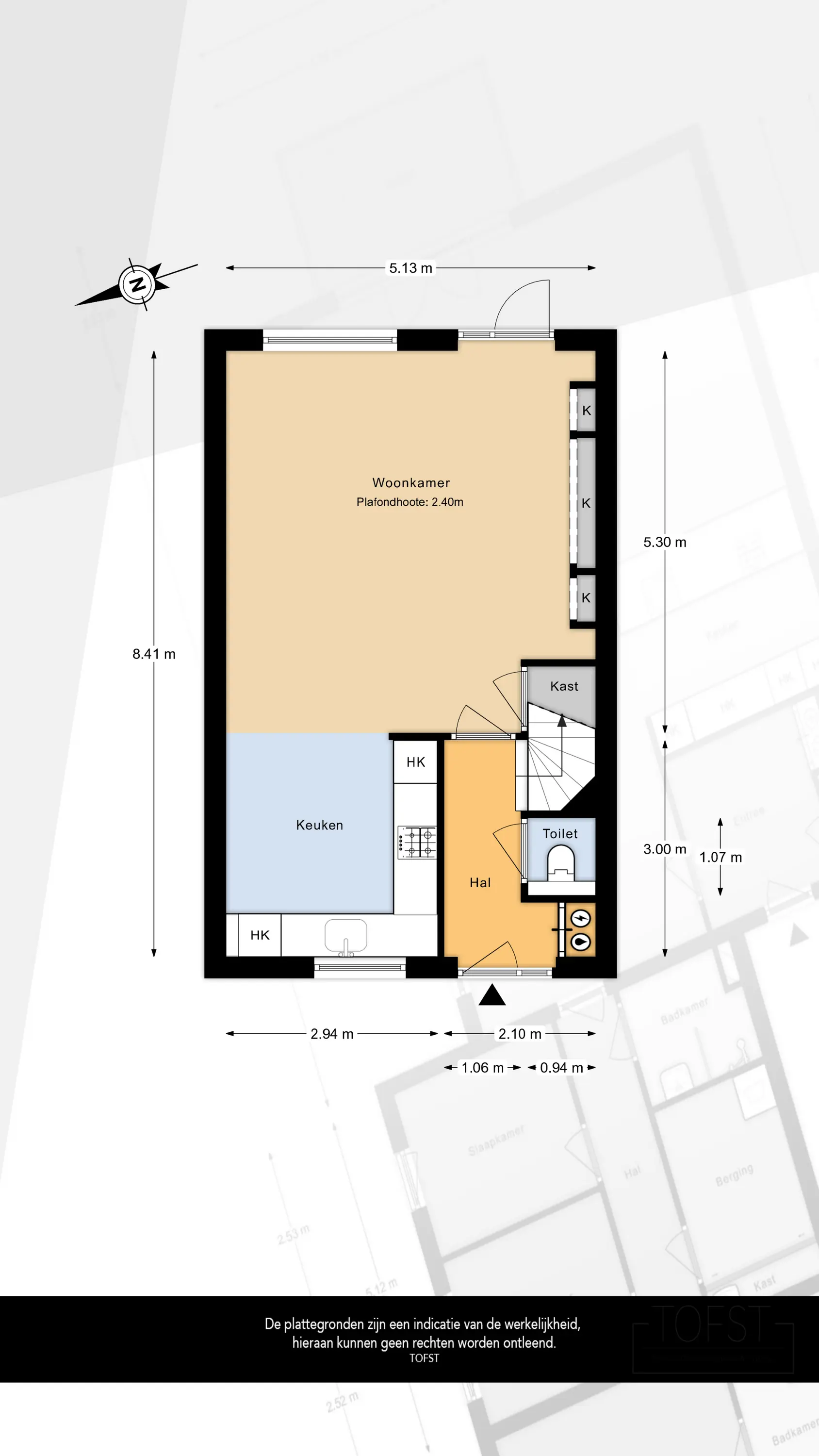 Via de verzorgde voortuin bereikt u de entree van de woning. In de hal bevinden zich de meterkast, het toilet en de trapopgang naar de eerste verdieping.
