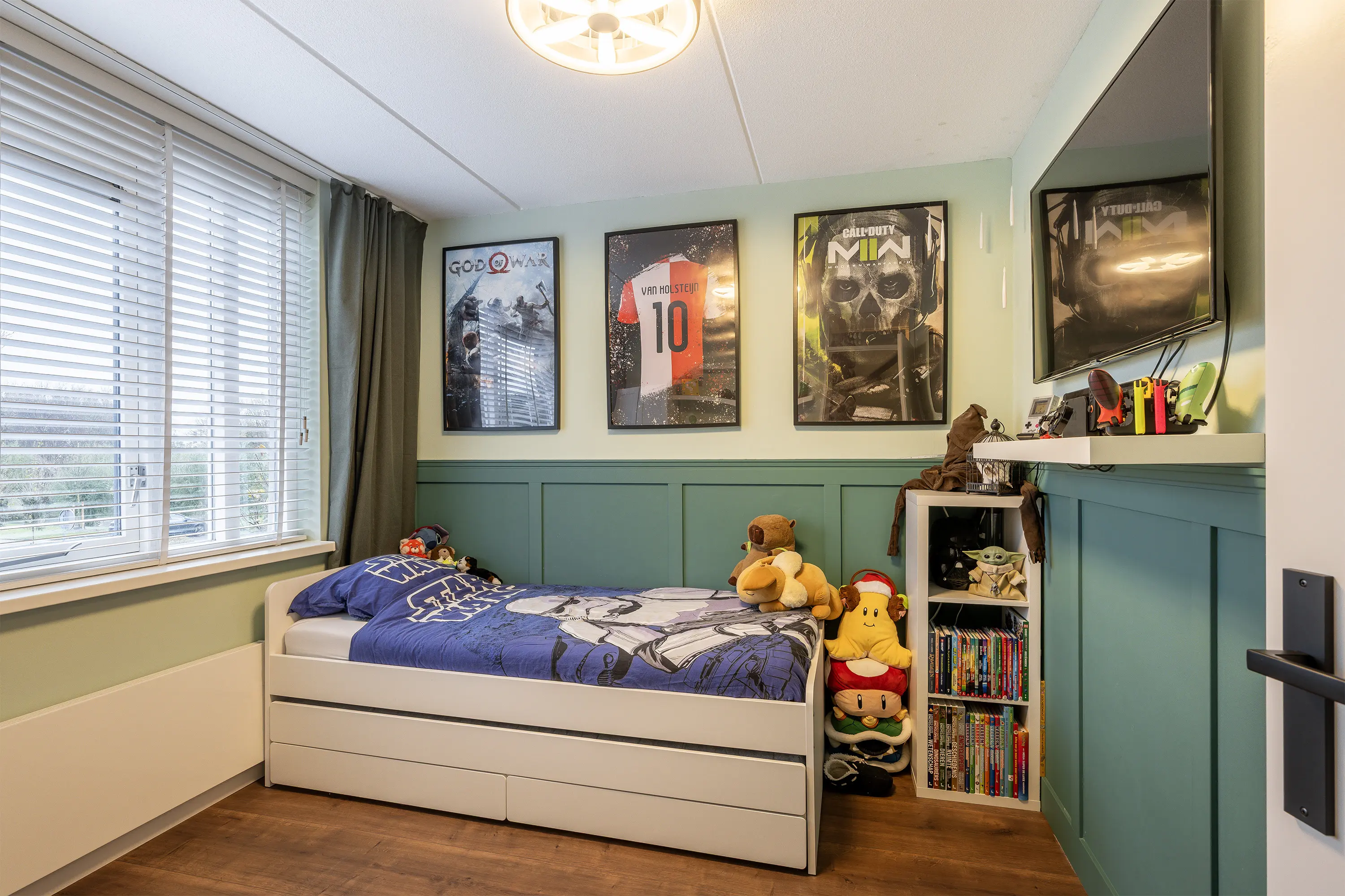 Twee slaapkamers liggen aan de achterzijde van de woning, de derde slaapkamer bevindt zich aan de voorzijde. Alle kamers beschikken over prettige lichtinval en zijn flexibel in te delen.
