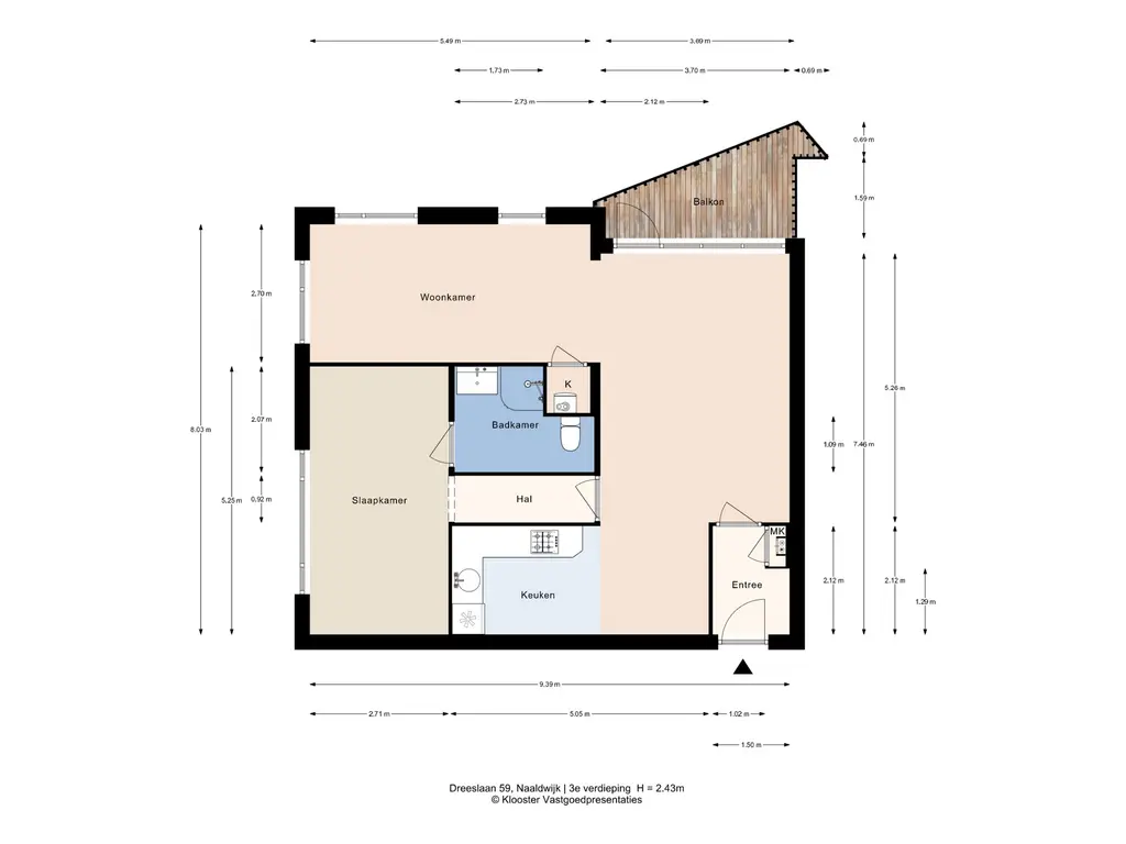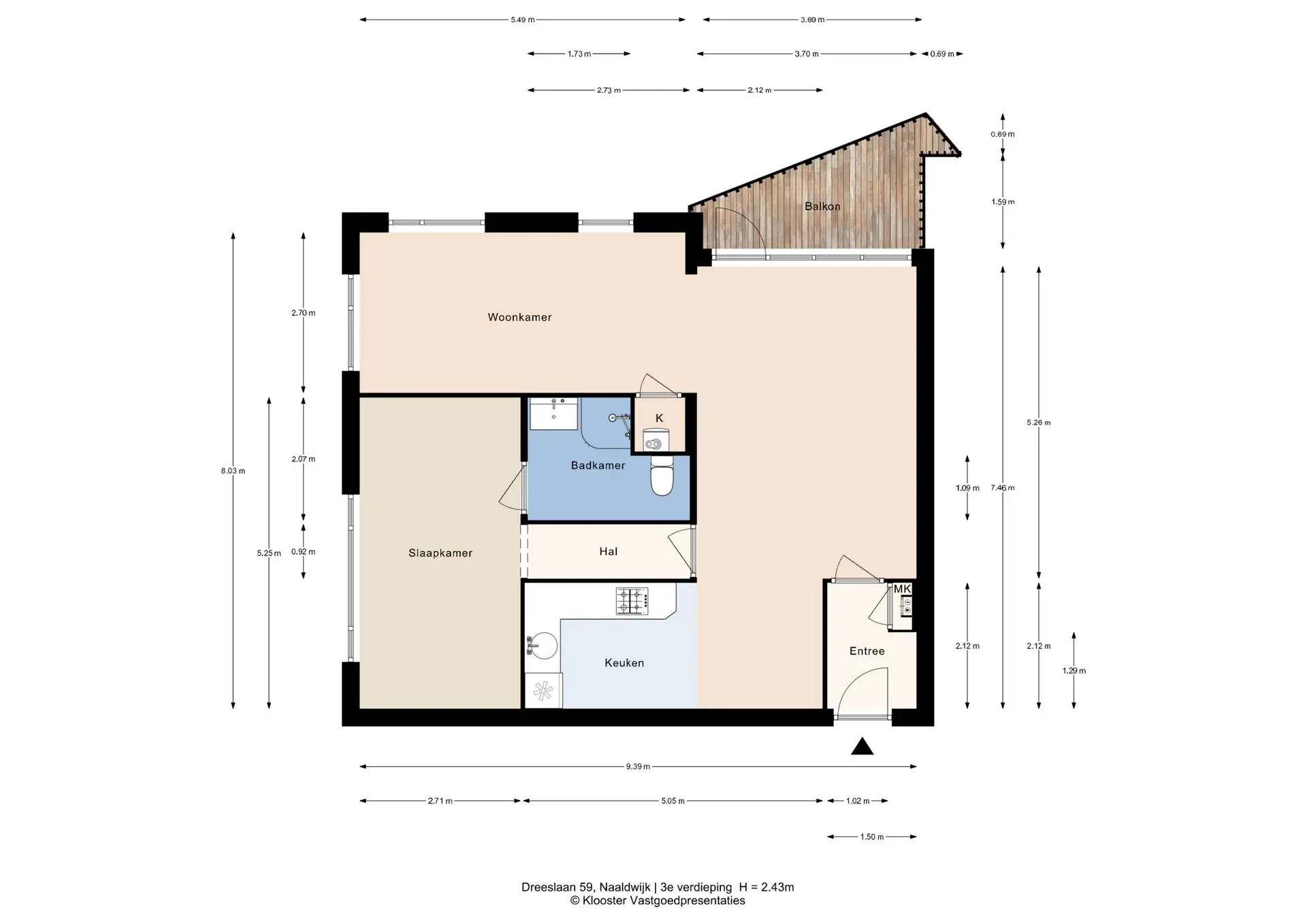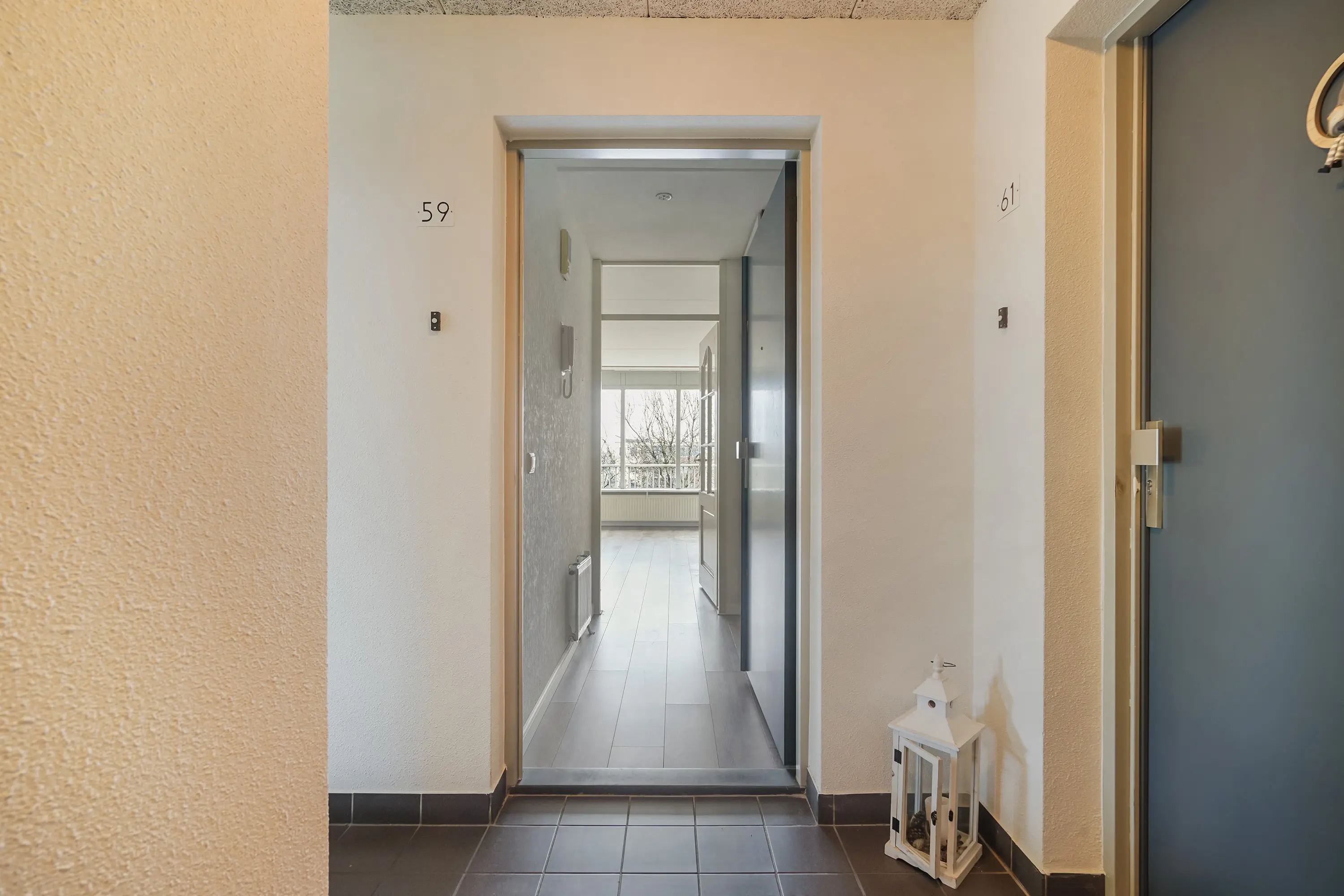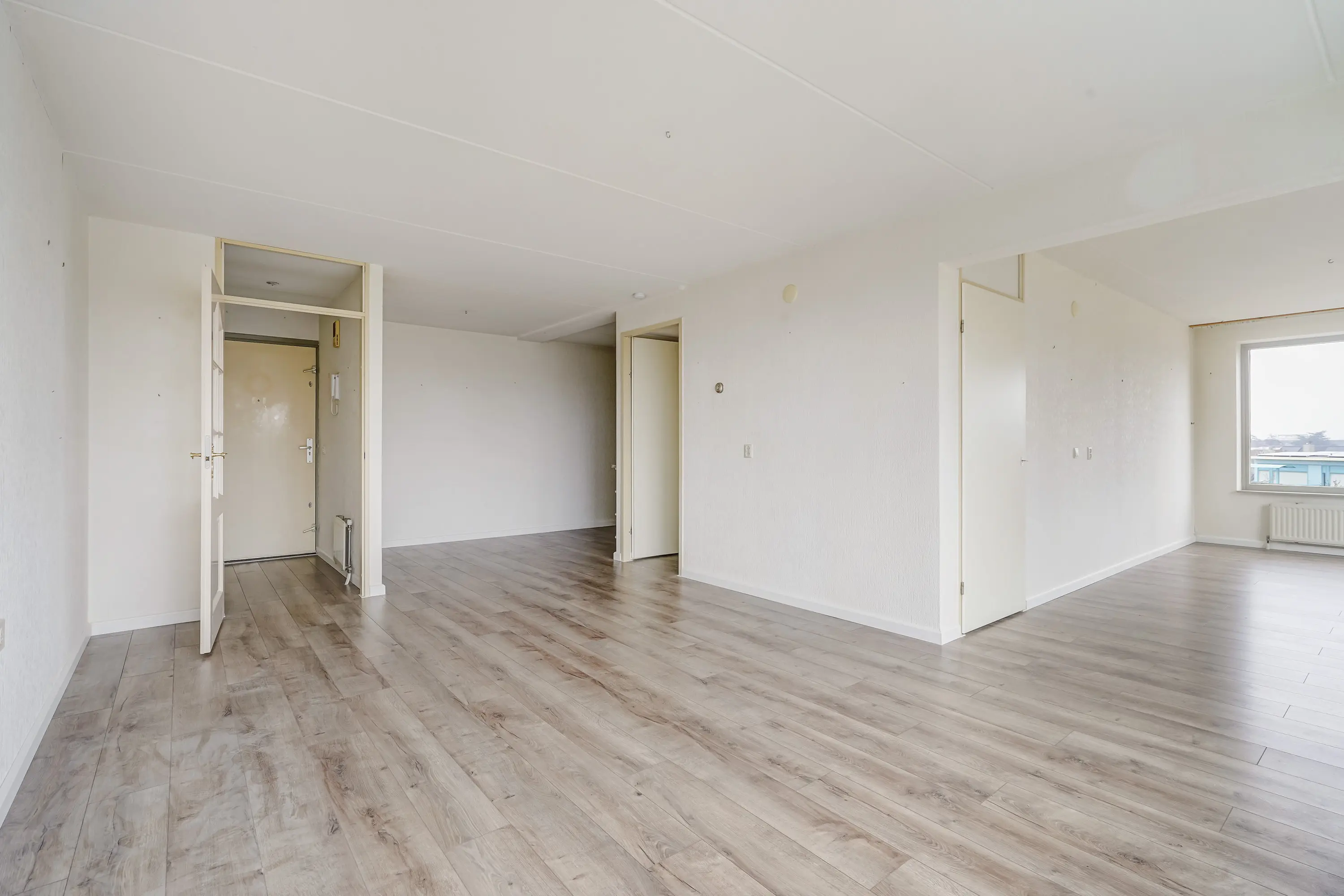 Op de derde verdieping van het complex vindt u de entree van het appartement. De entree is voorzien van een intercom, meterkast (5 groepen) en ruimte voor een garderobe.