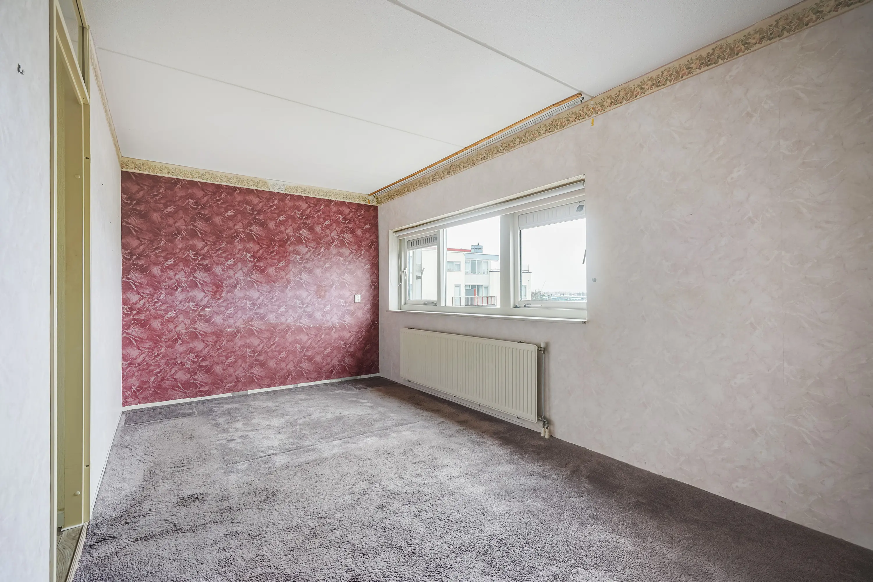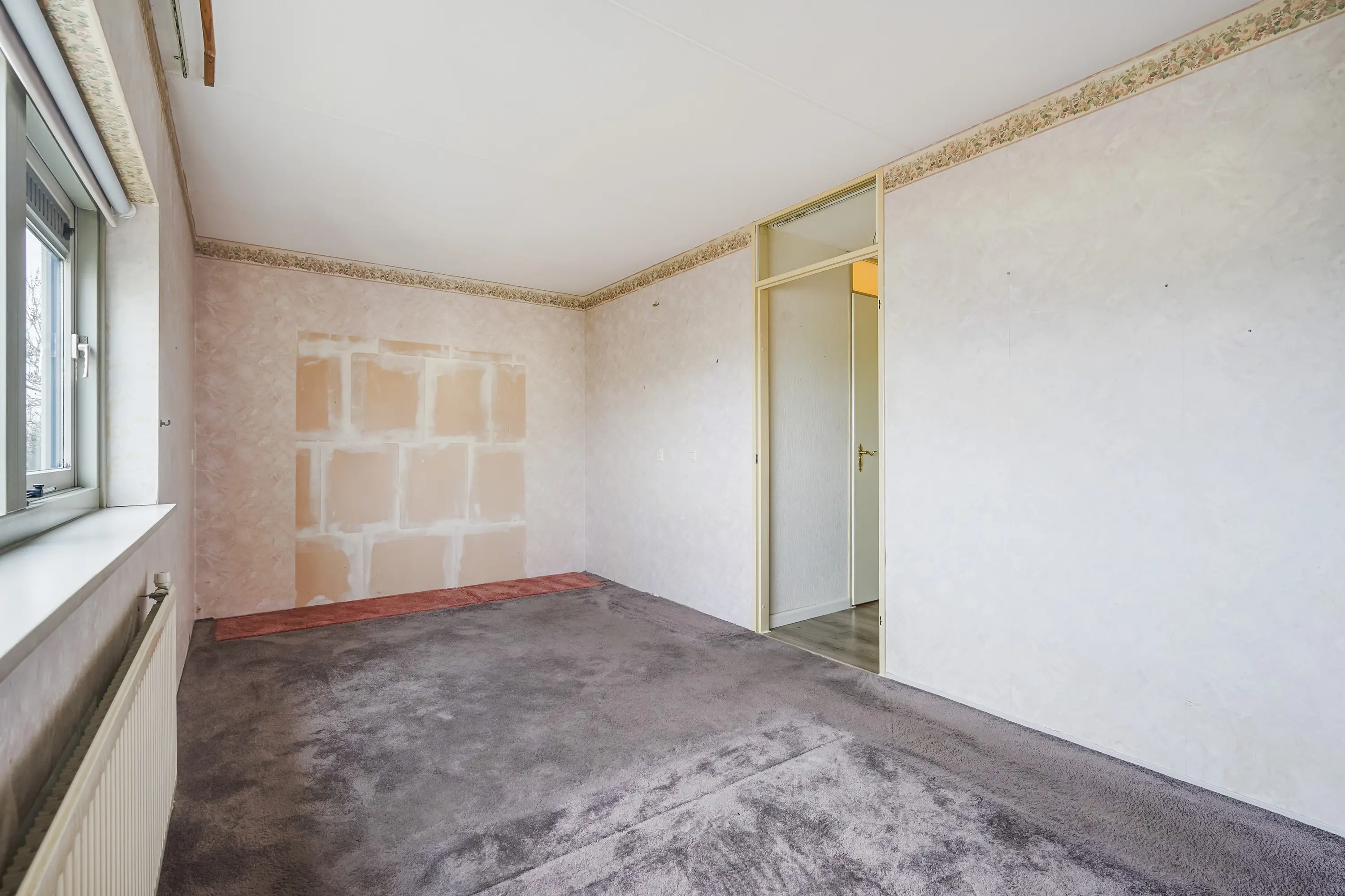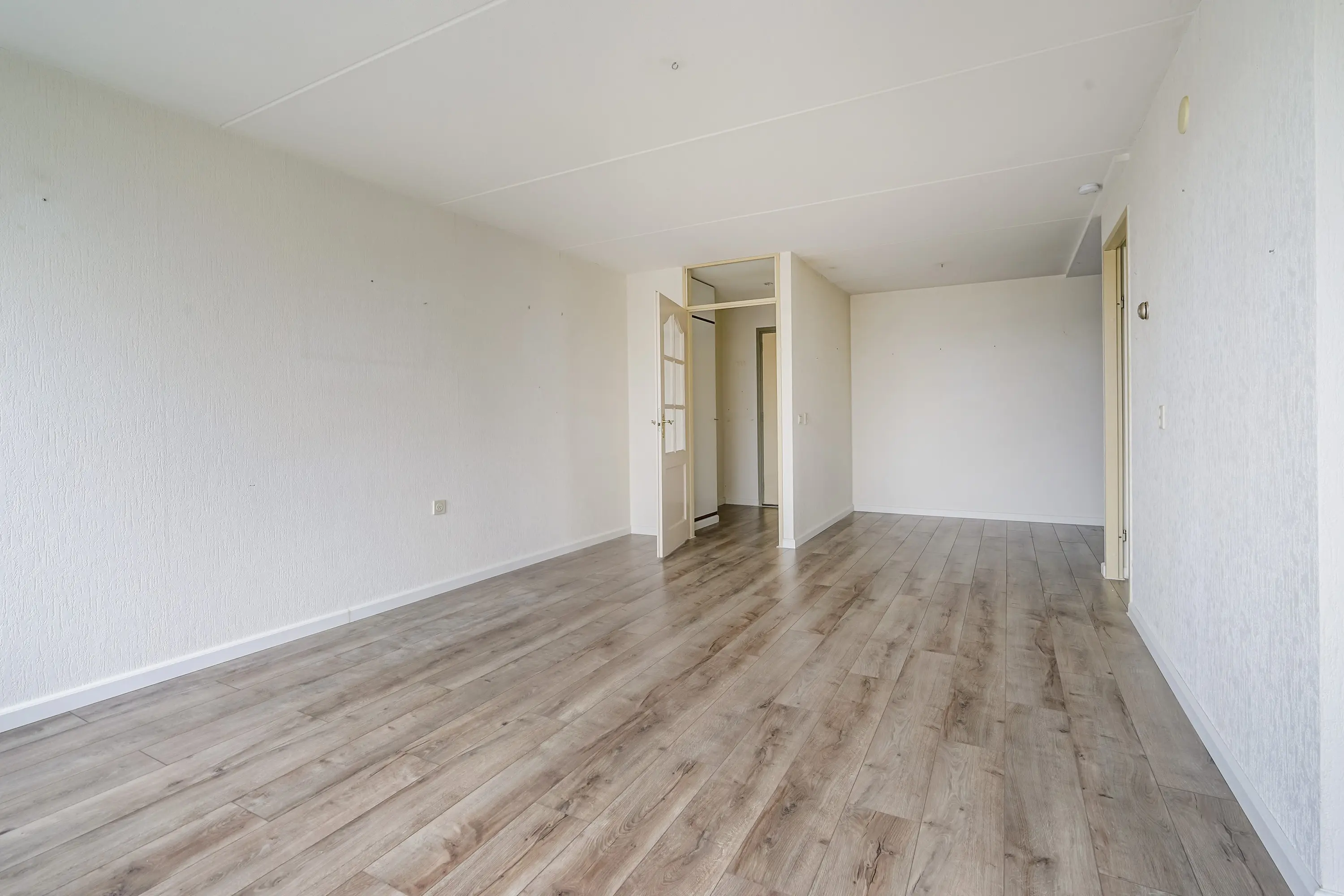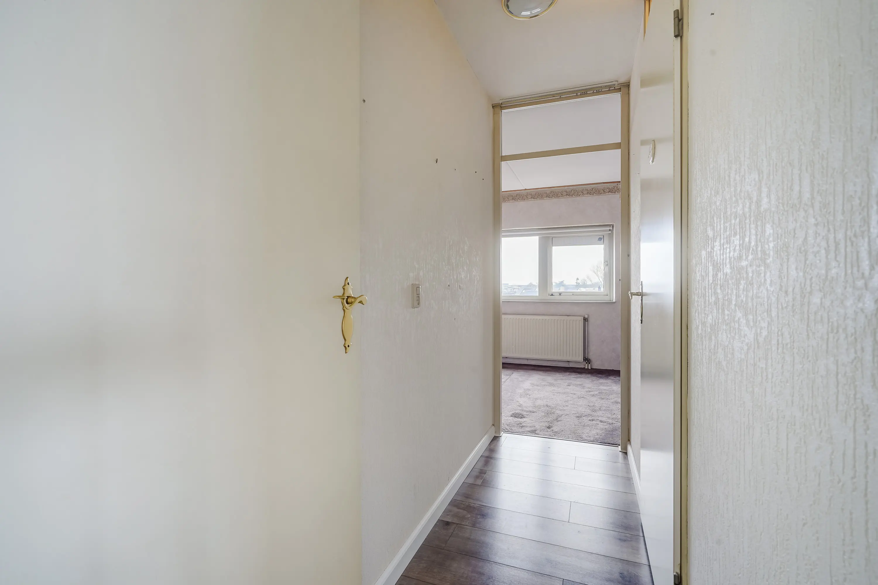 Via de hal, centraal gelegen in de woning, heeft u toegang tot zowel de badkamer als de slaapkamer. De slaapkamer beschikt over een grote raampartij die zorgt voor veel lichtinval. Voorheen waren er in dit appartement twee slaapkamers; dit is met het plaatsen van enkele wanden eenvoudig weer te realiseren.