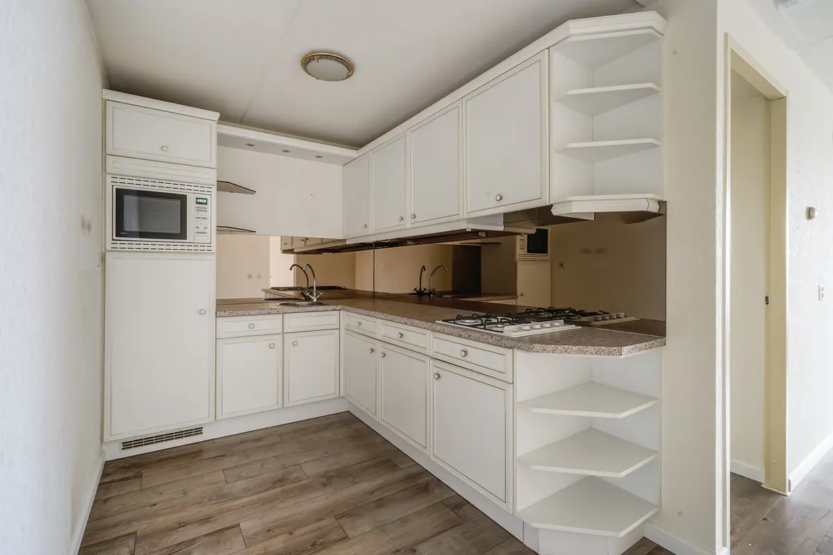 De keuken bevindt zich direct links naast de entree. Deze is voorzien van diverse inbouwapparatuur, waaronder een 4-pits gasfornuis, koelkast met vriesvak, magnetron en een vaatwasser.