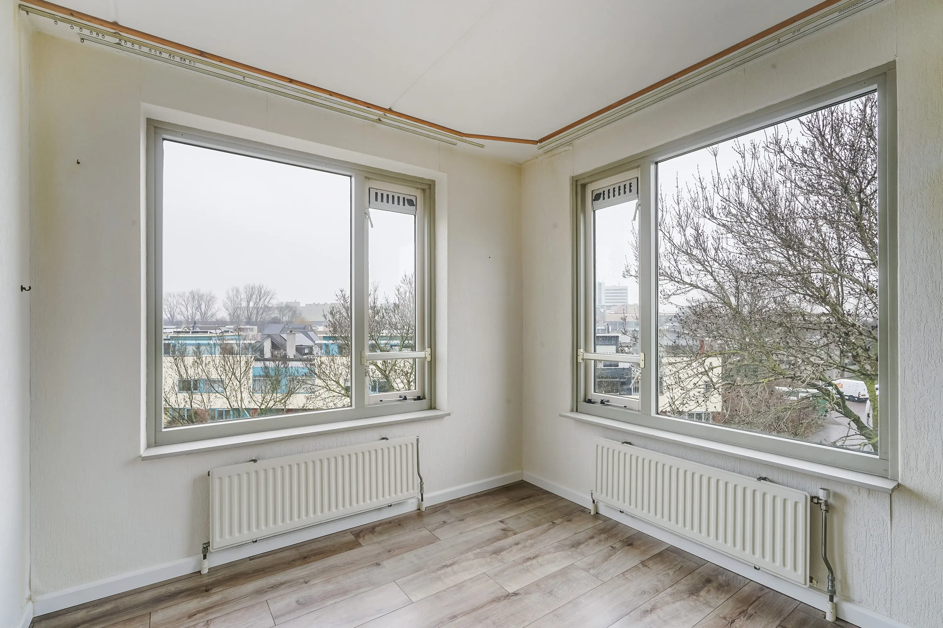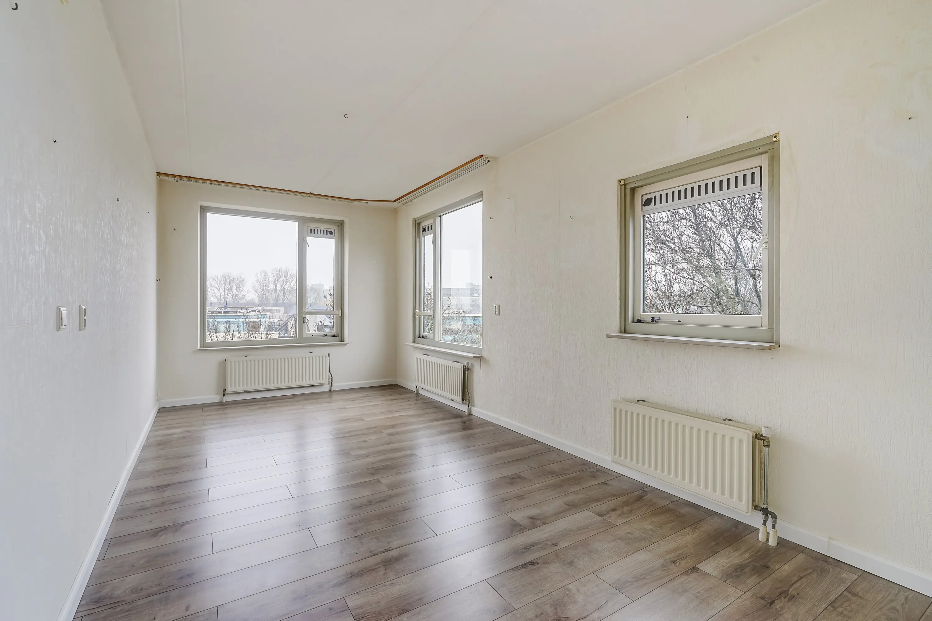 - Voorzien van laminaatvloer, radiatoren, hardhouten kozijnen, behangen wanden, mechanische ventilatie en cv-ketel;