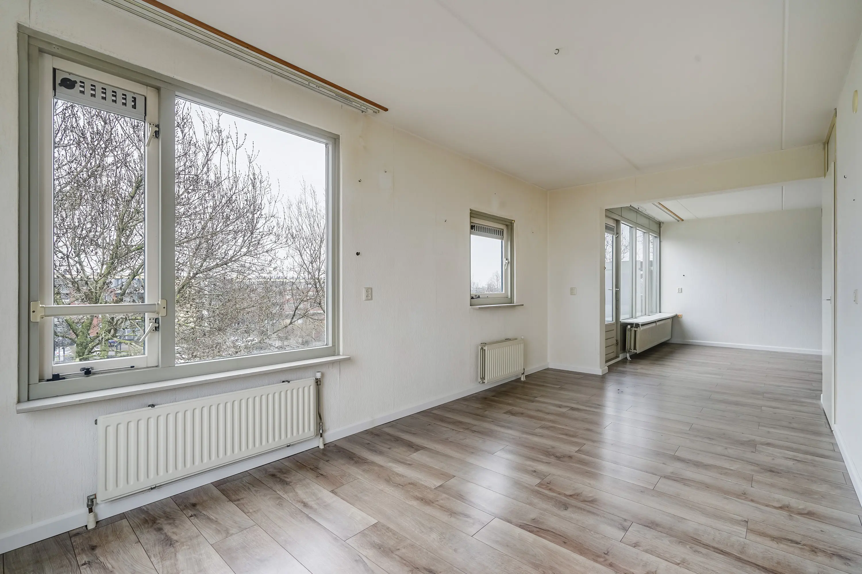 - L-vormige, zonnige woonkamer met grote raampartijen en veel natuurlijke lichtinval;
