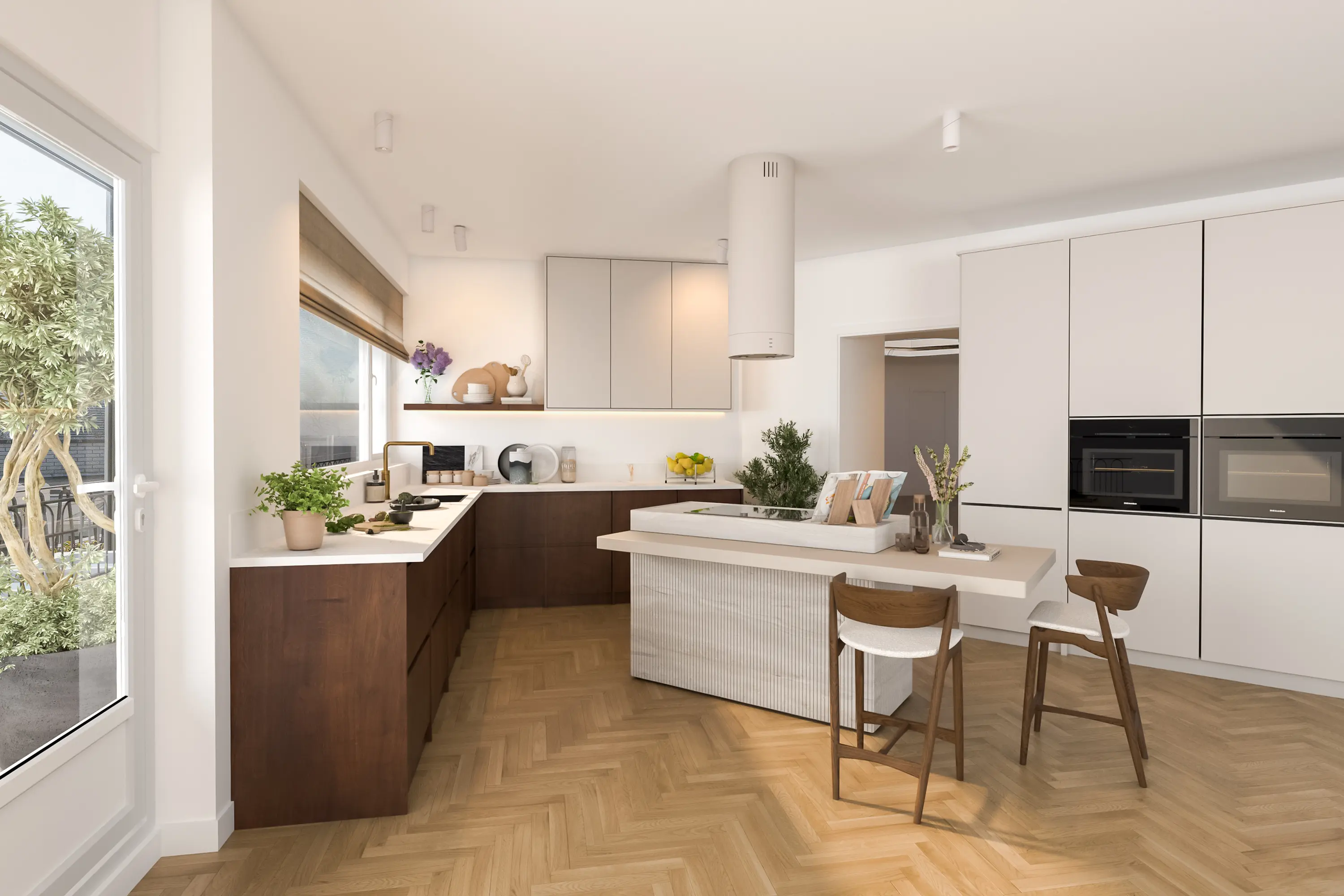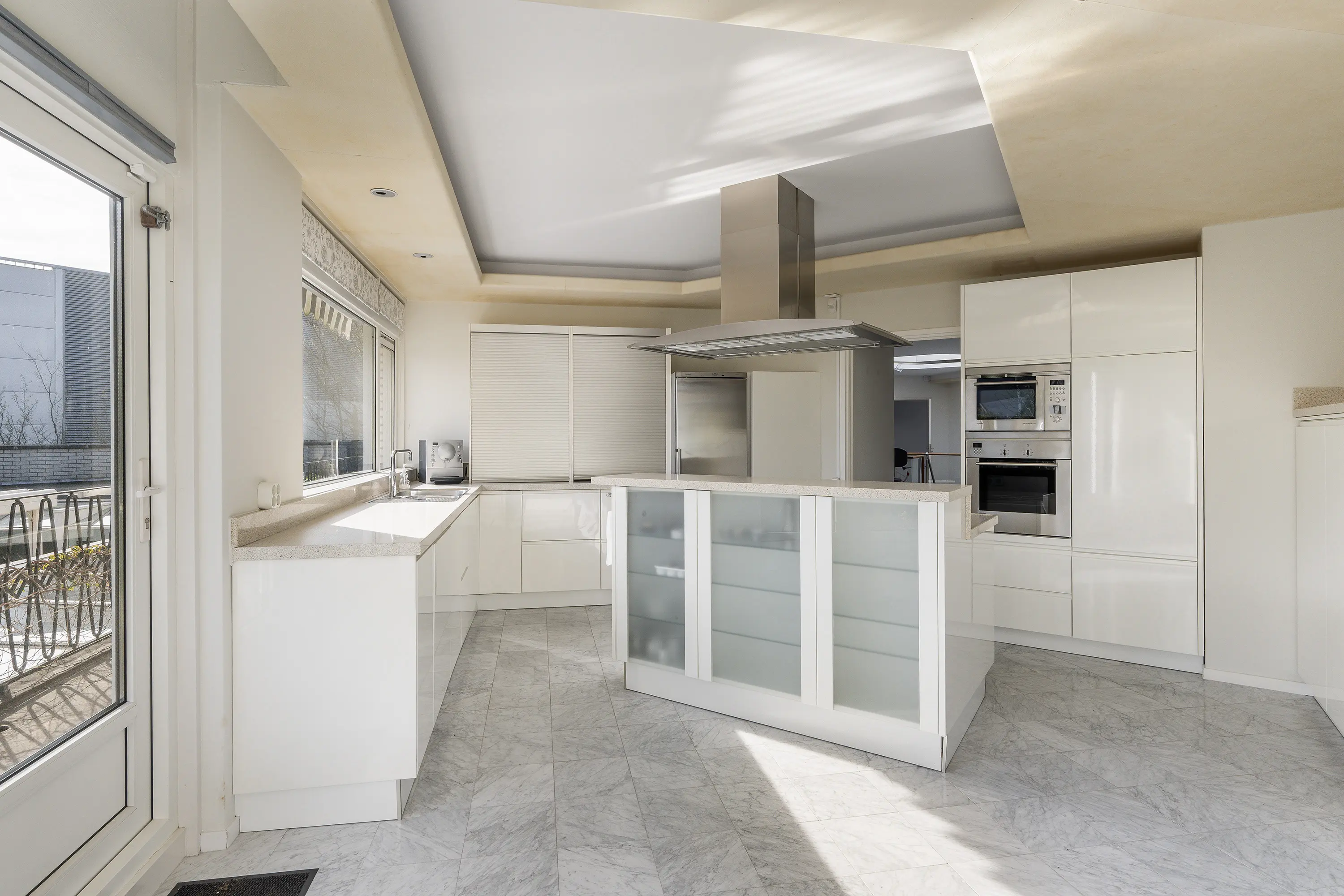 De moderne woonkeuken (2012) is uitgerust met hoogwaardige inbouwapparatuur, waaronder een Quooker, een oven, een combi-magnetron, inductiekookplaat, koelkast, vaatwasser en inbouwboiler. De keuken vormt het praktische en sfeervolle hart van de woning. Het kookeiland en het vele werkblad maken de keuken ideaal voor kookliefhebbers.
