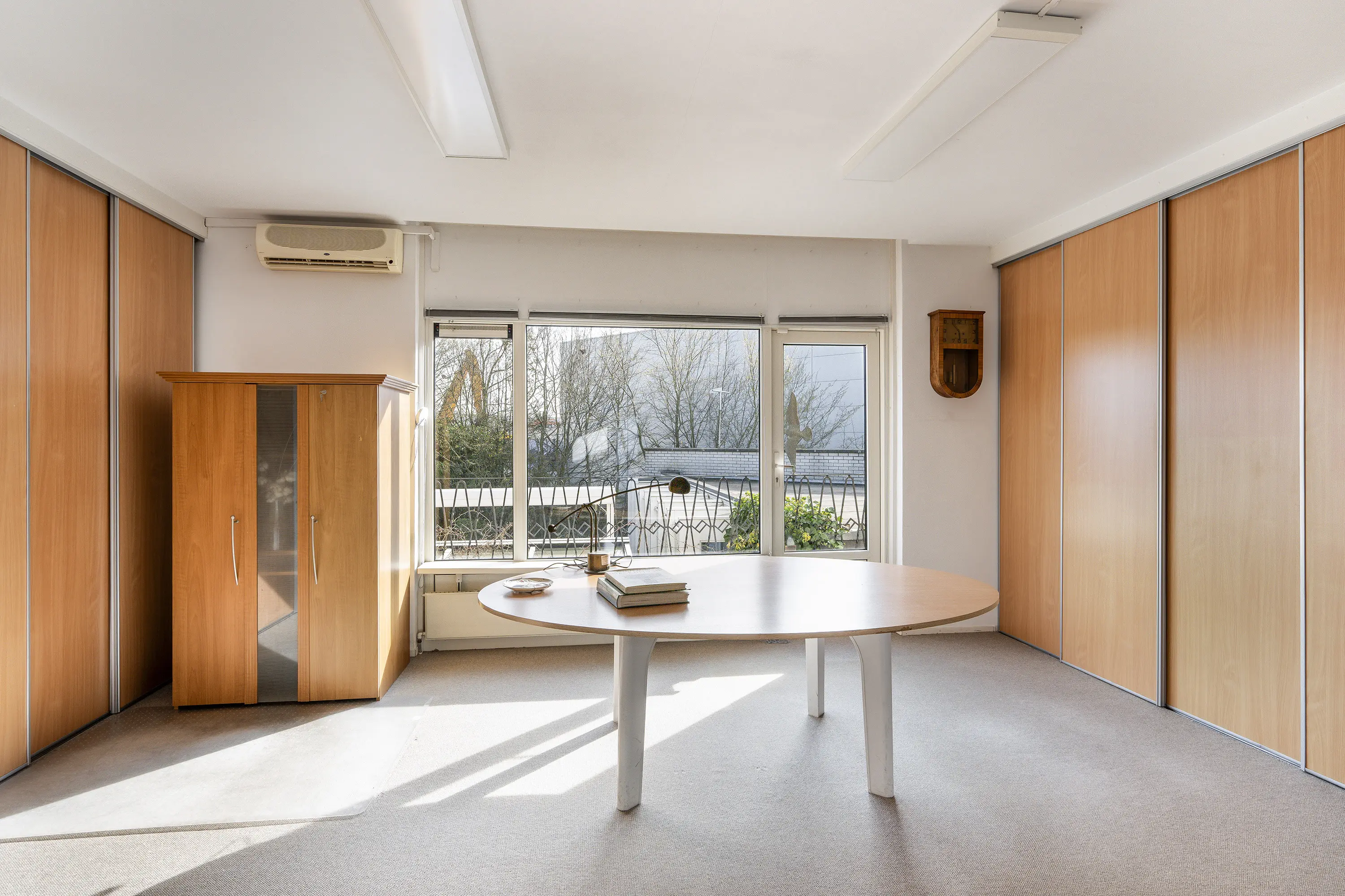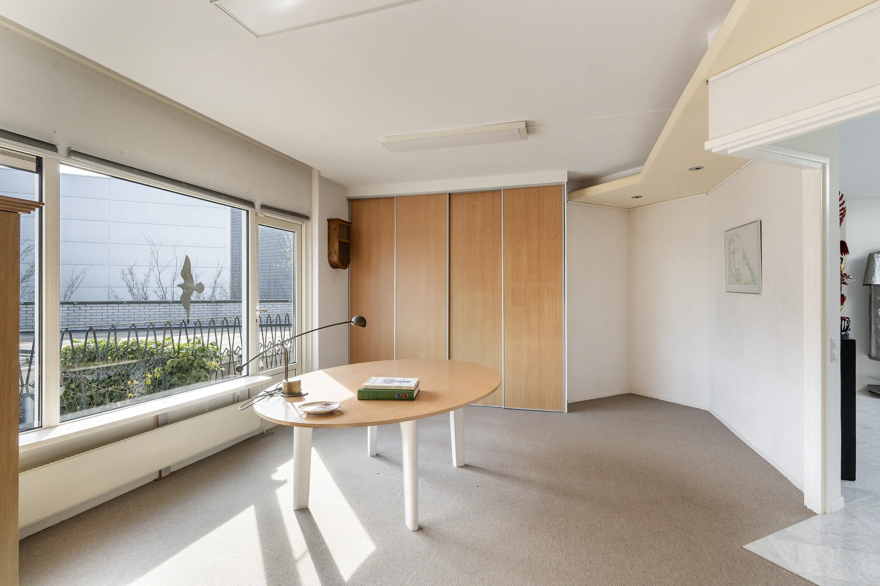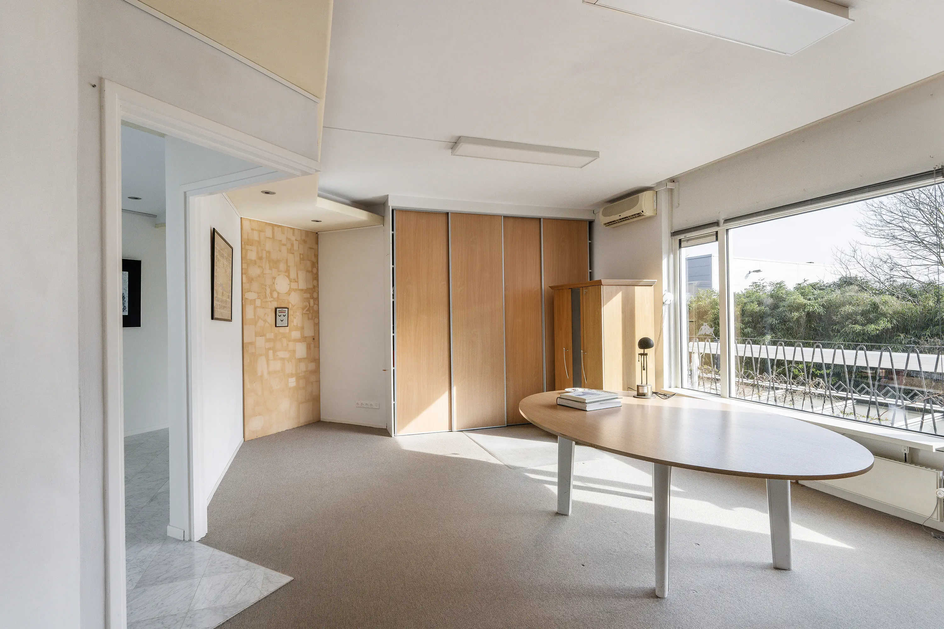 Aan de andere kant van de recreatieruimte is een riante werkkamer met separate bergruimte gesitueerd.