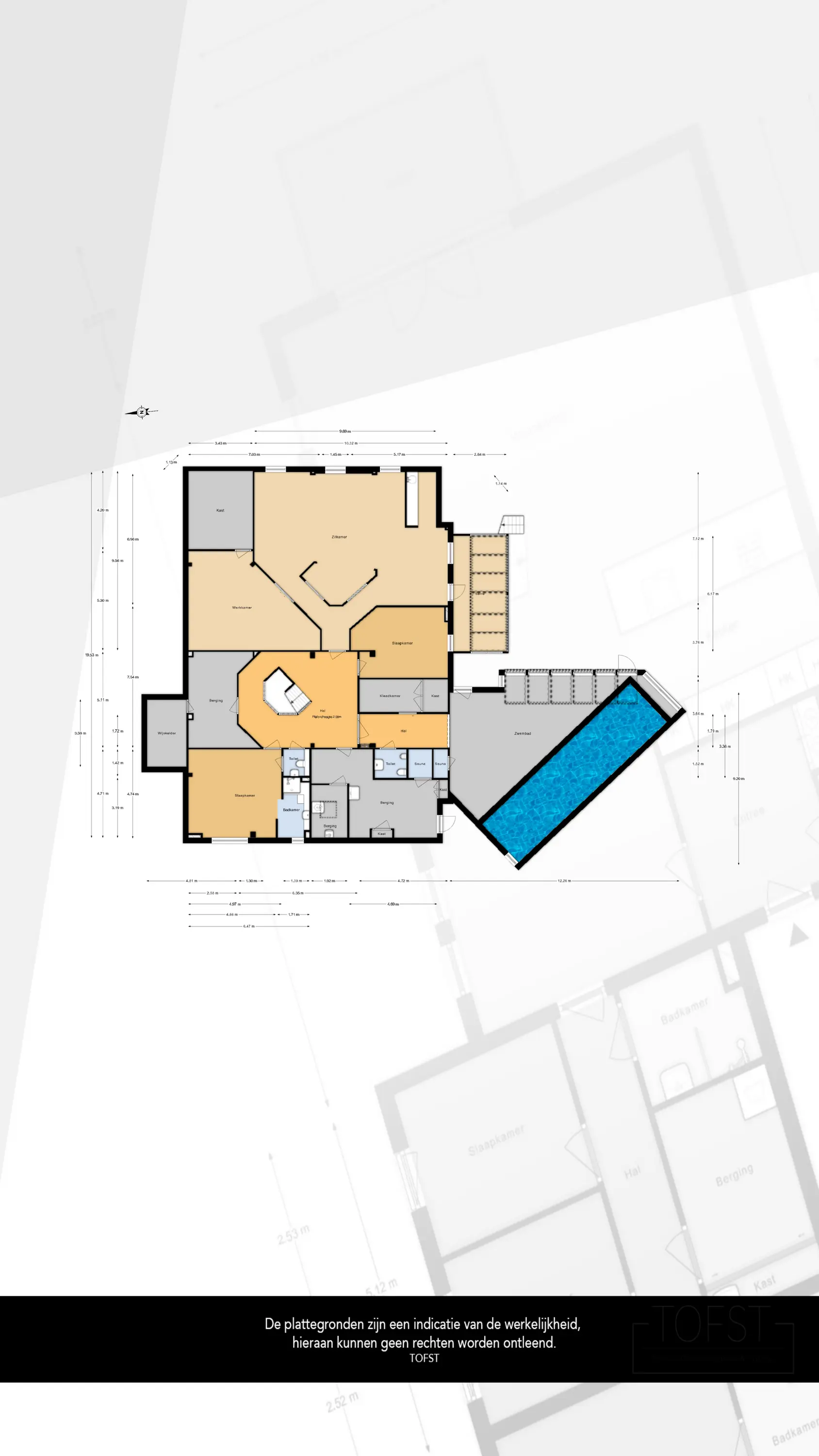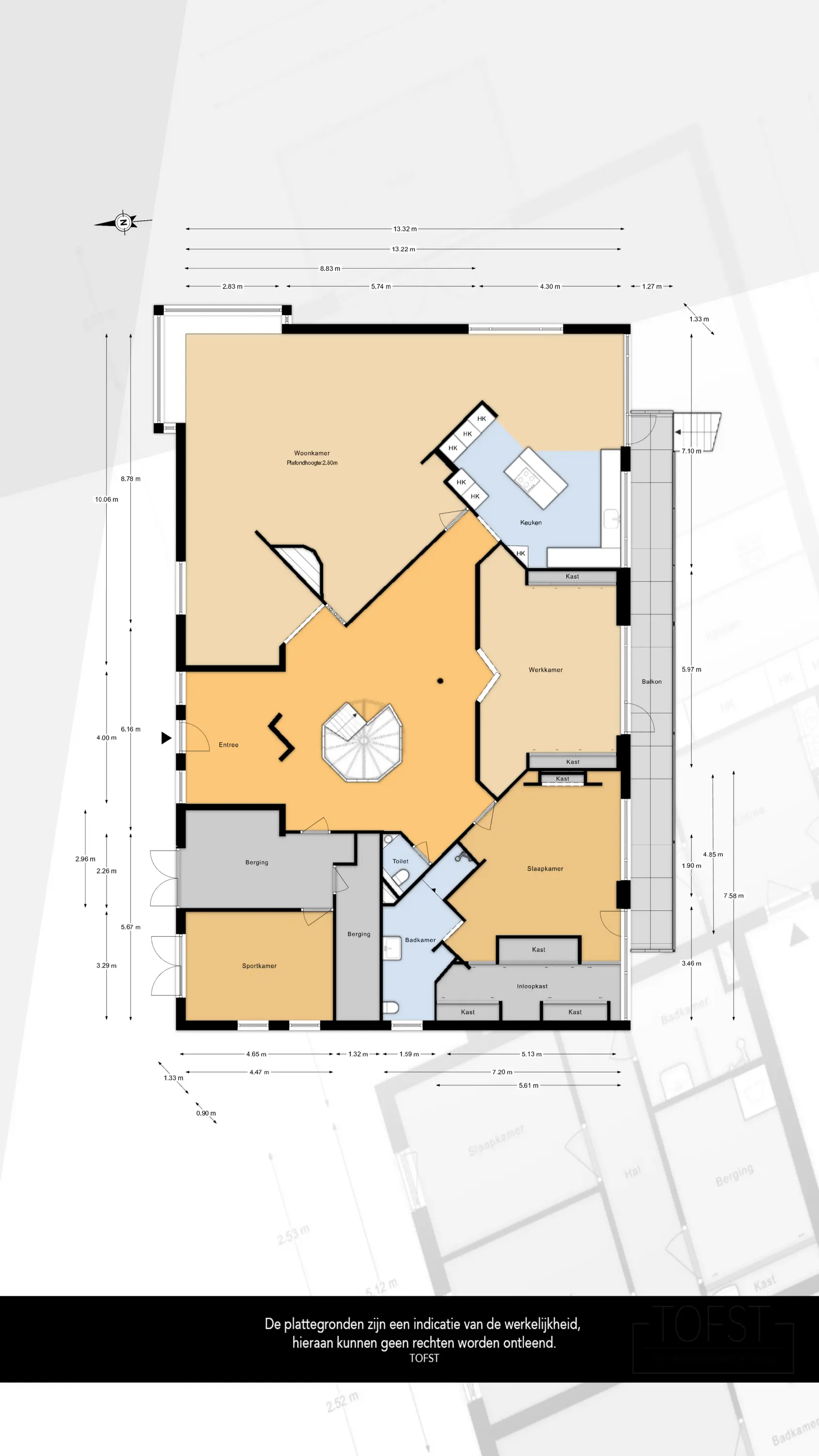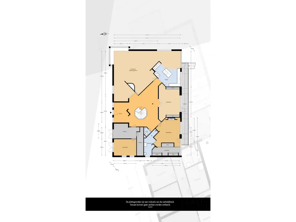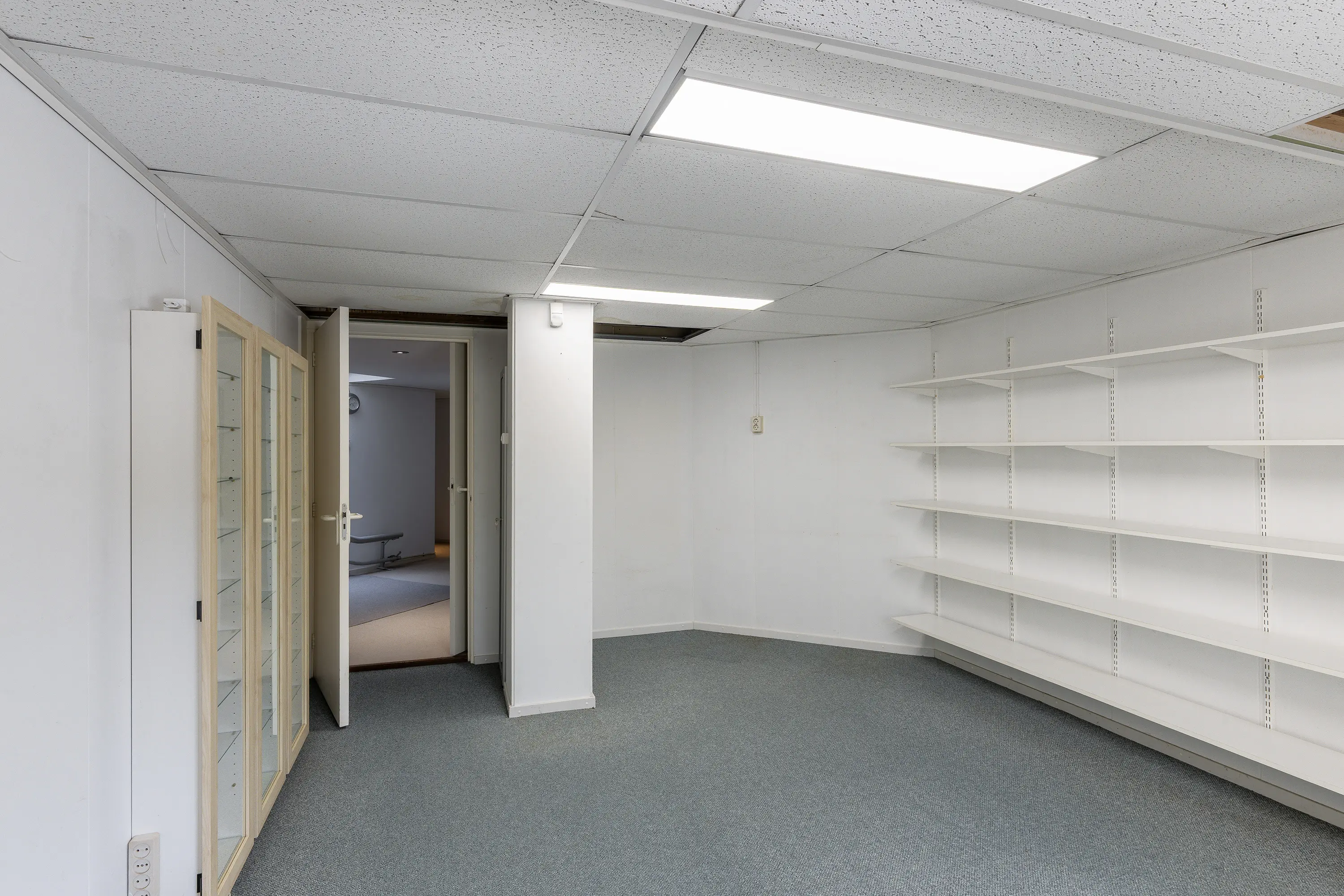 Aan de andere kant van de recreatieruimte is een riante werkkamer met separate bergruimte gesitueerd.