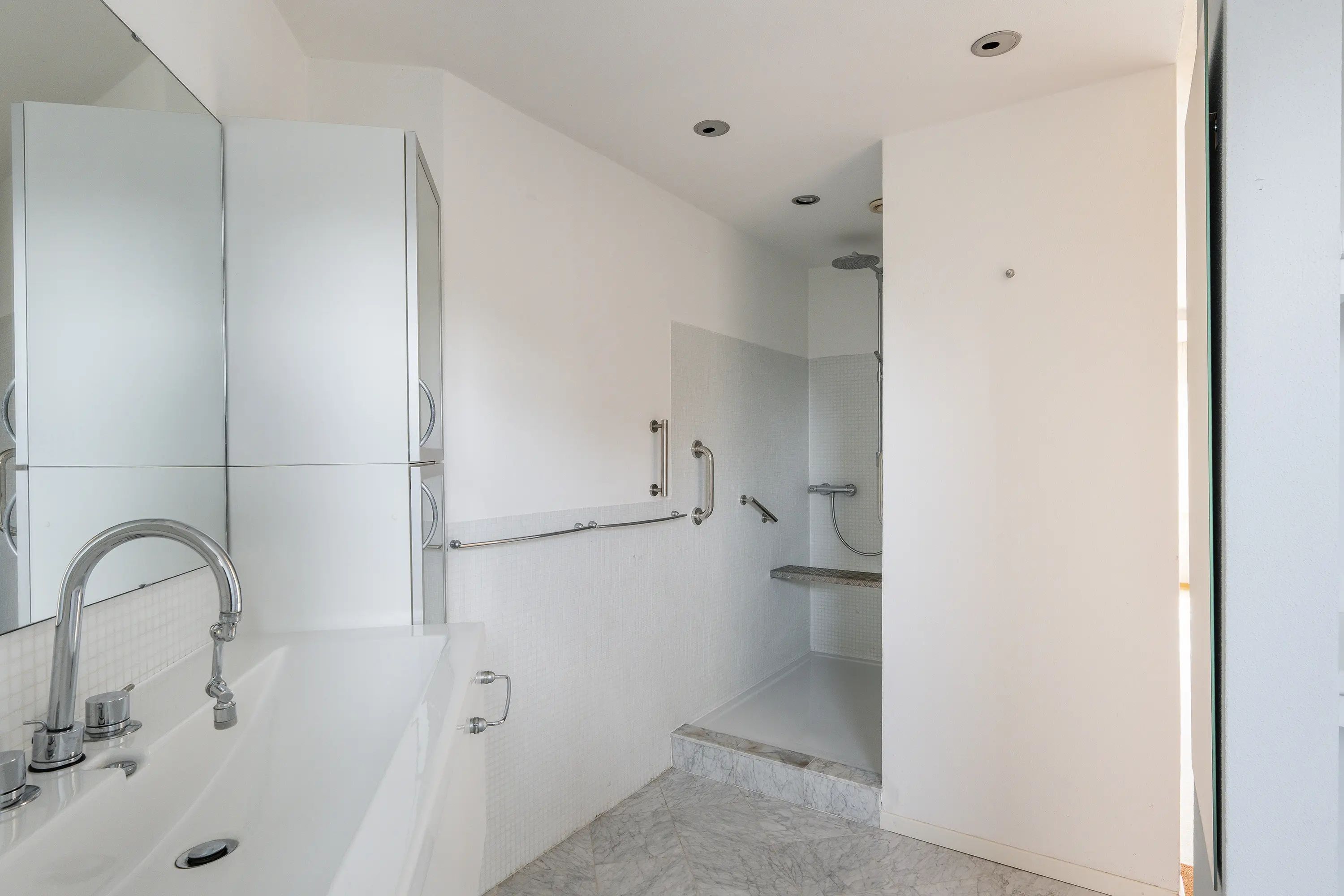 U treft hier tevens twee slaapkamers, waarvan één met aangrenzende badkamer, voorzien van wastafelmeubel en inloopdouche.