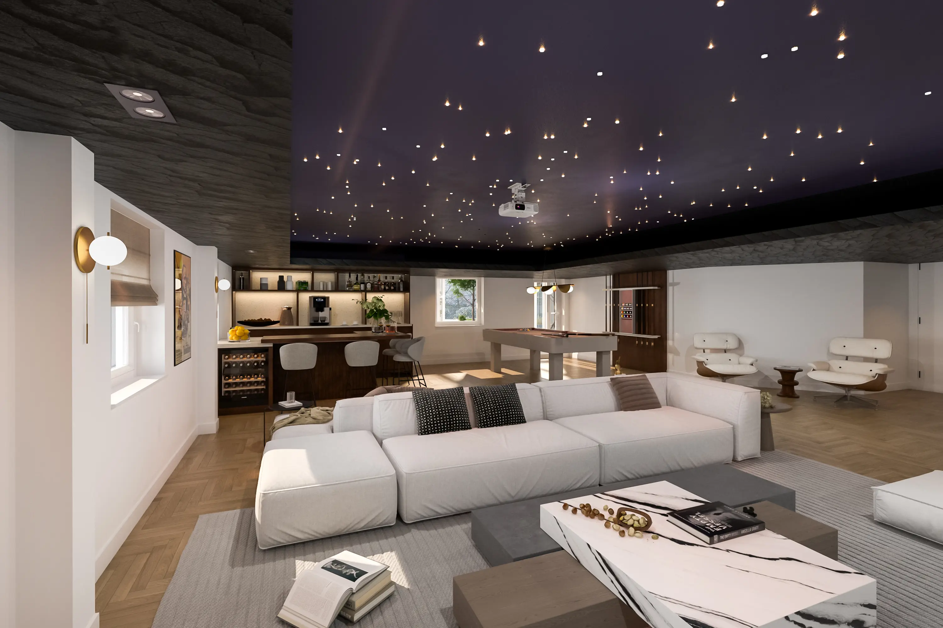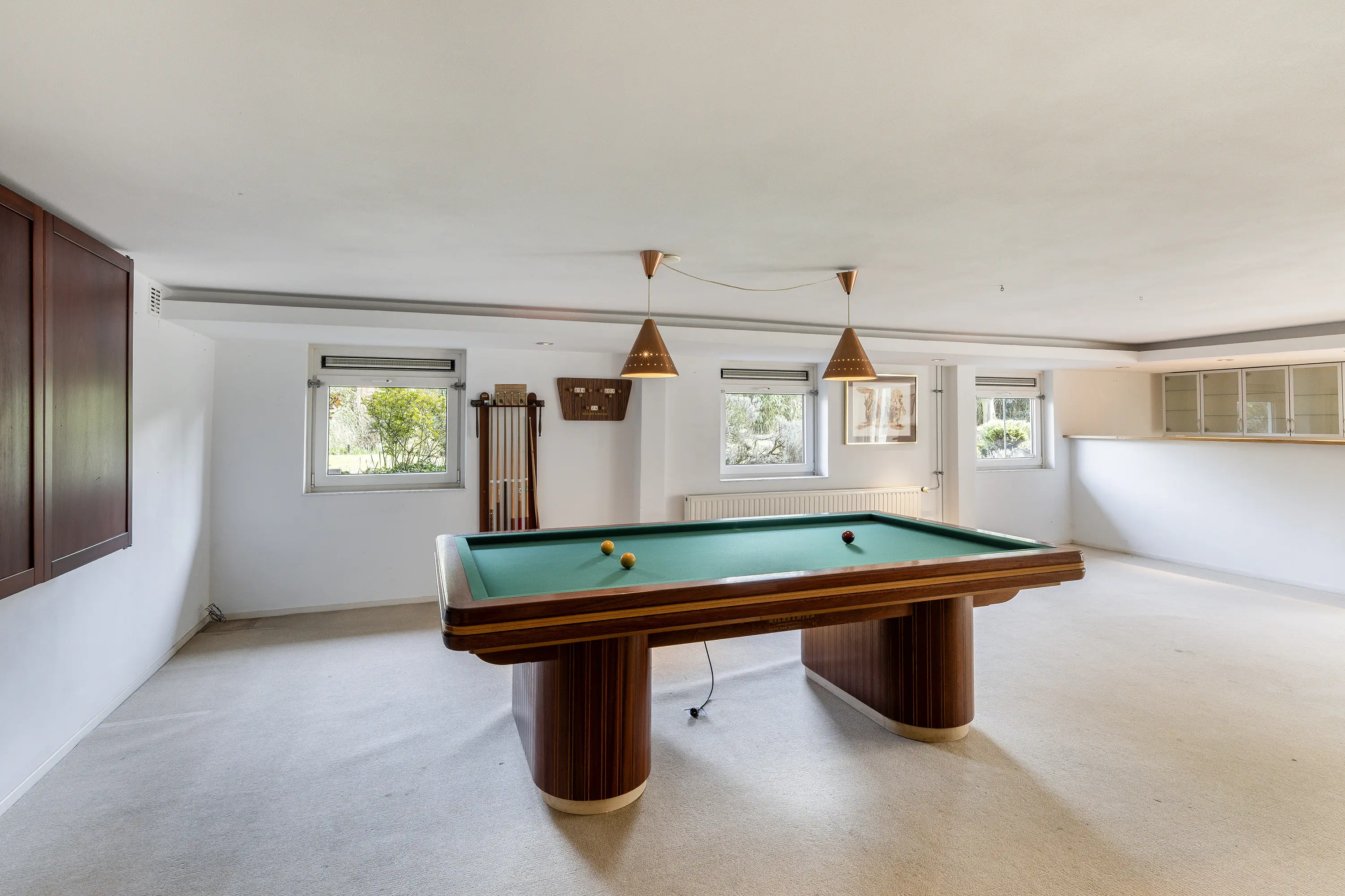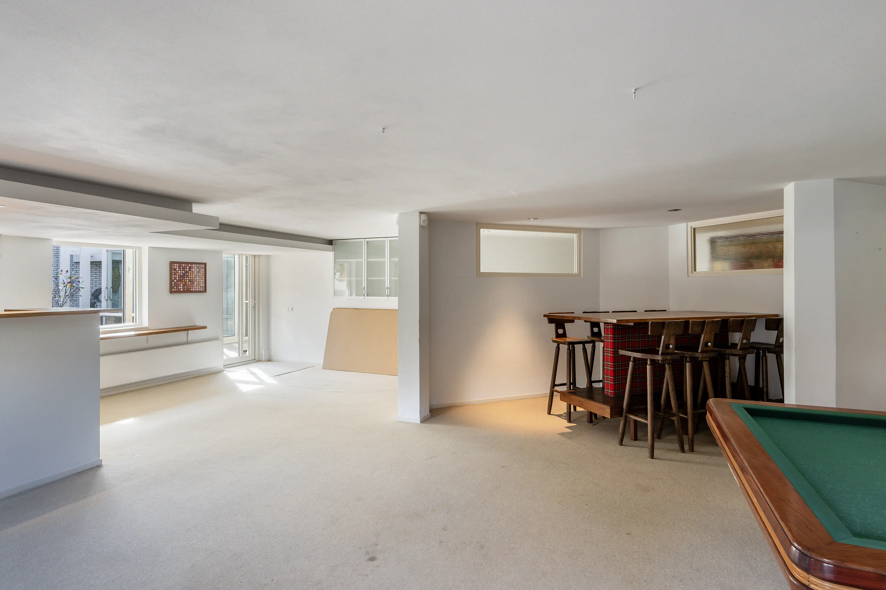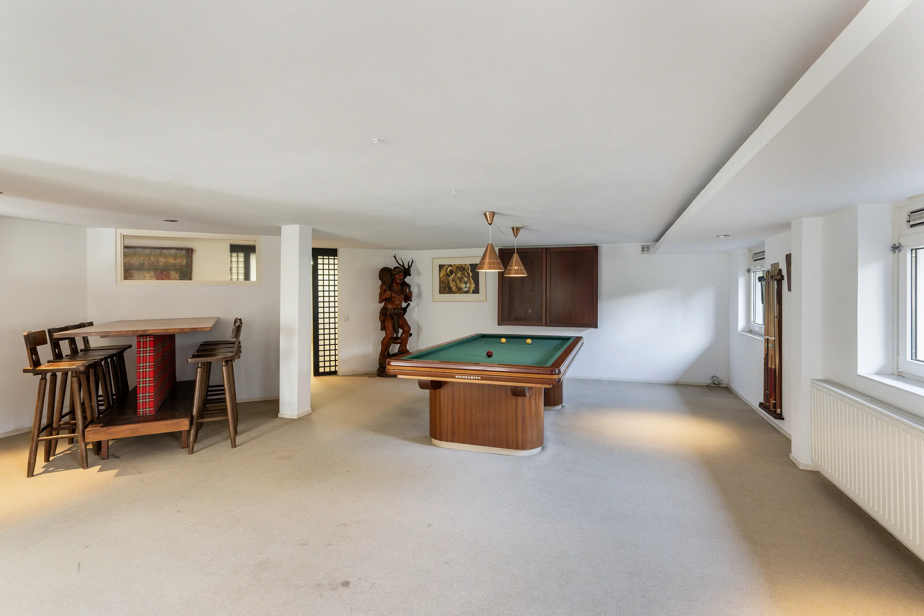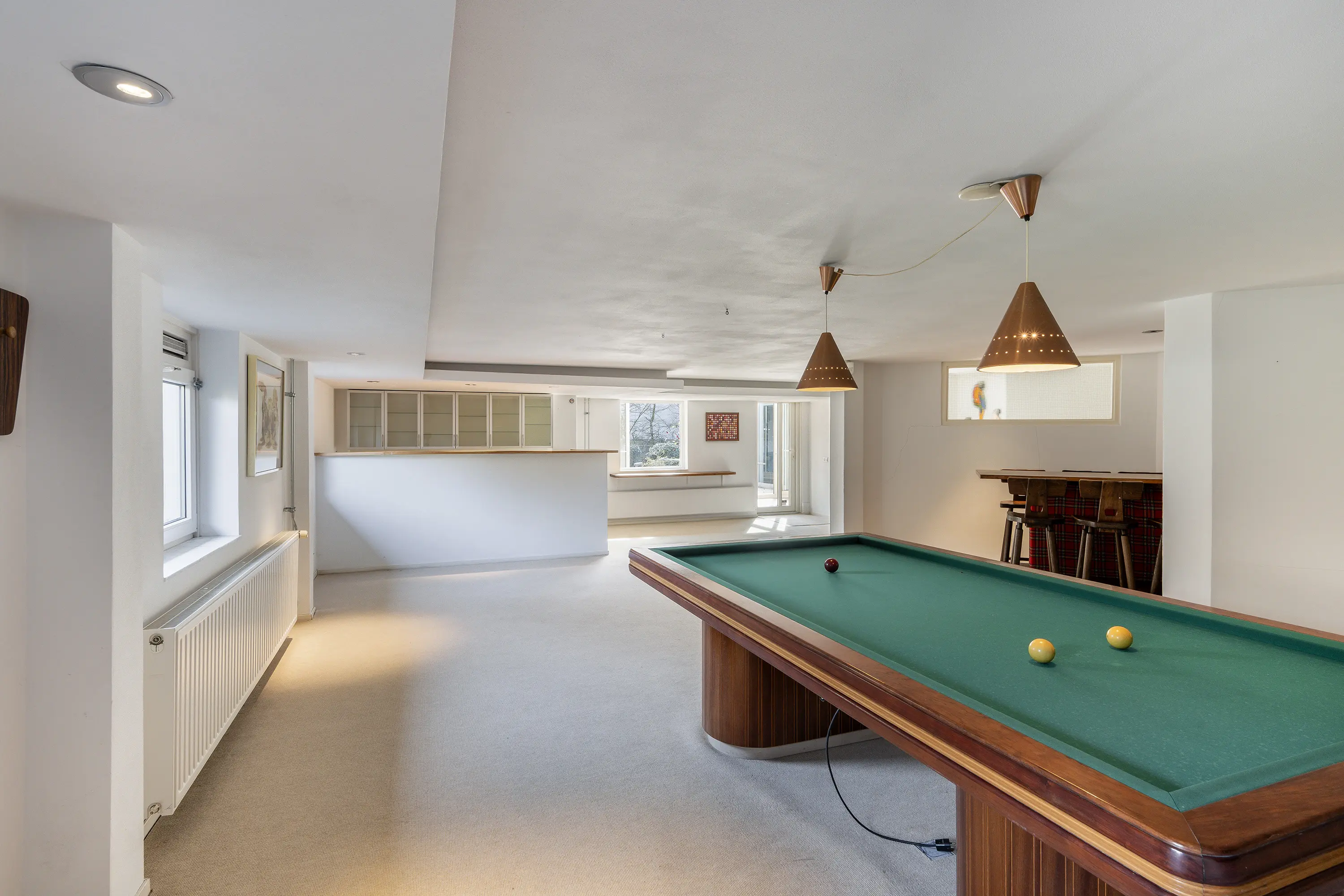 Het souterrain biedt een verrassend ruime recreatieruimte, perfect voor fitness, hobbygebruik of een privébioscoop. Verder beschikt deze verdieping over een professioneel ingerichte wijnkelder en een afgesloten kluisruimte, beide hoogwaardig afgewerkt.