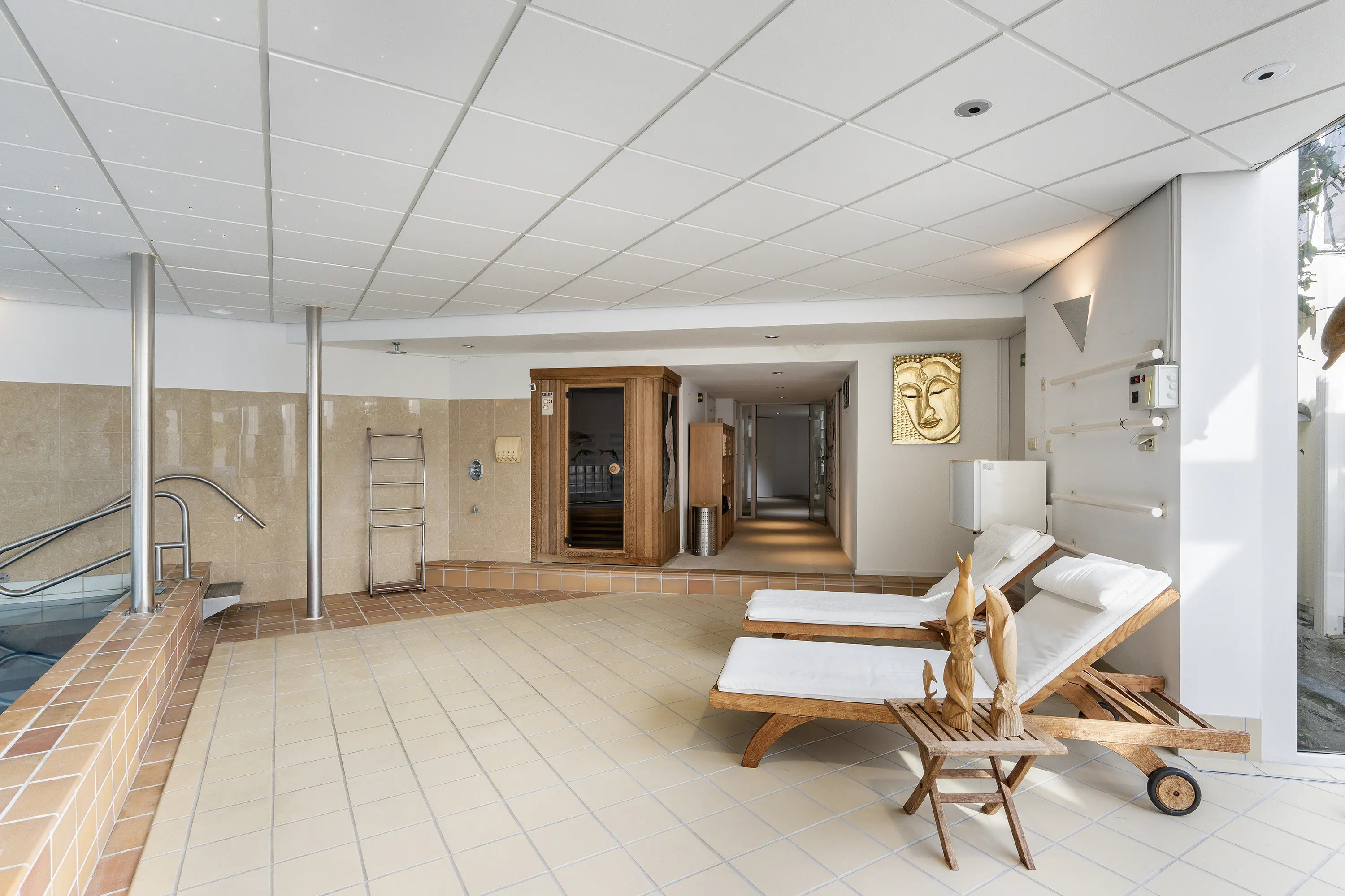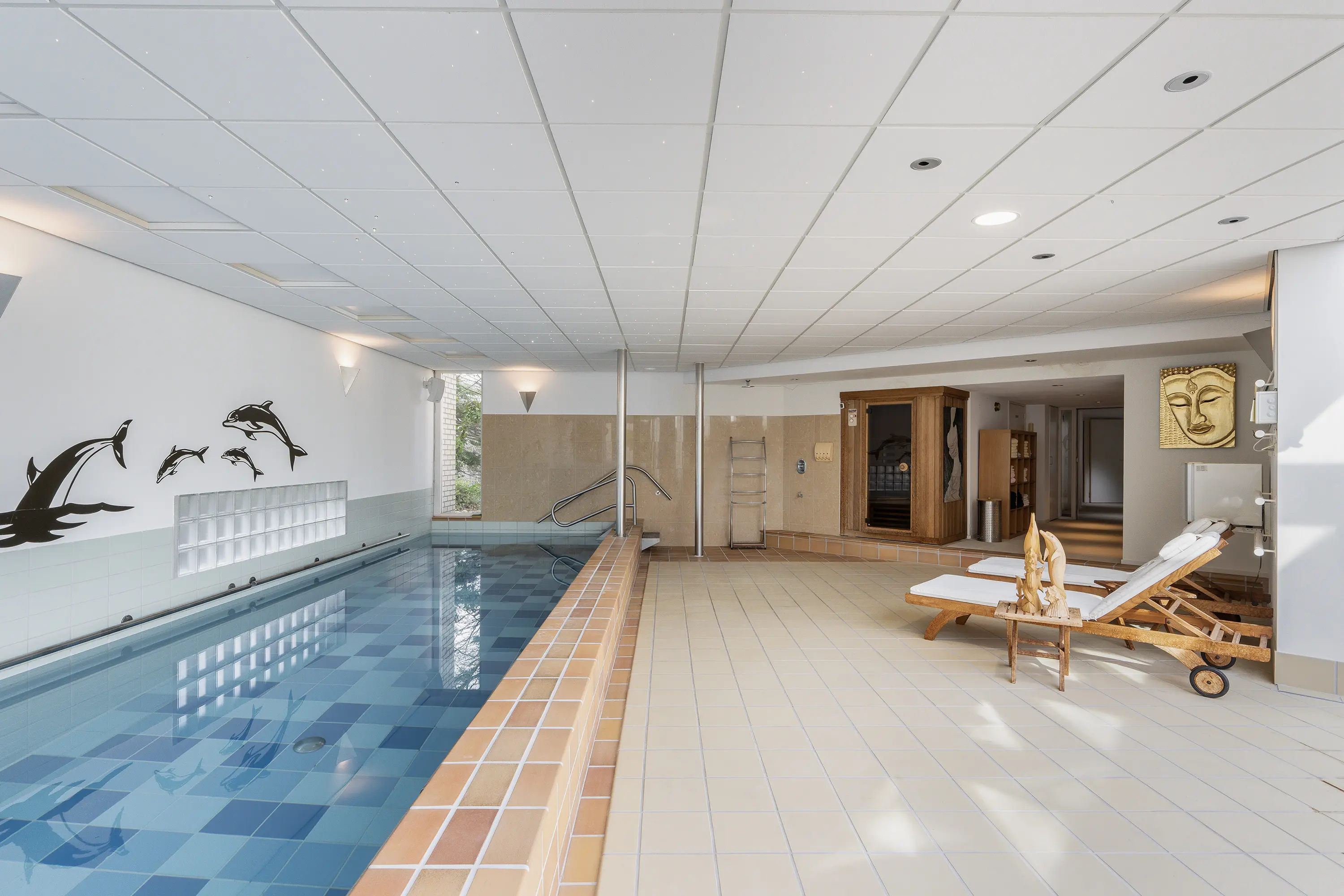 - Inpandig verwarmd zwembad en sauna.