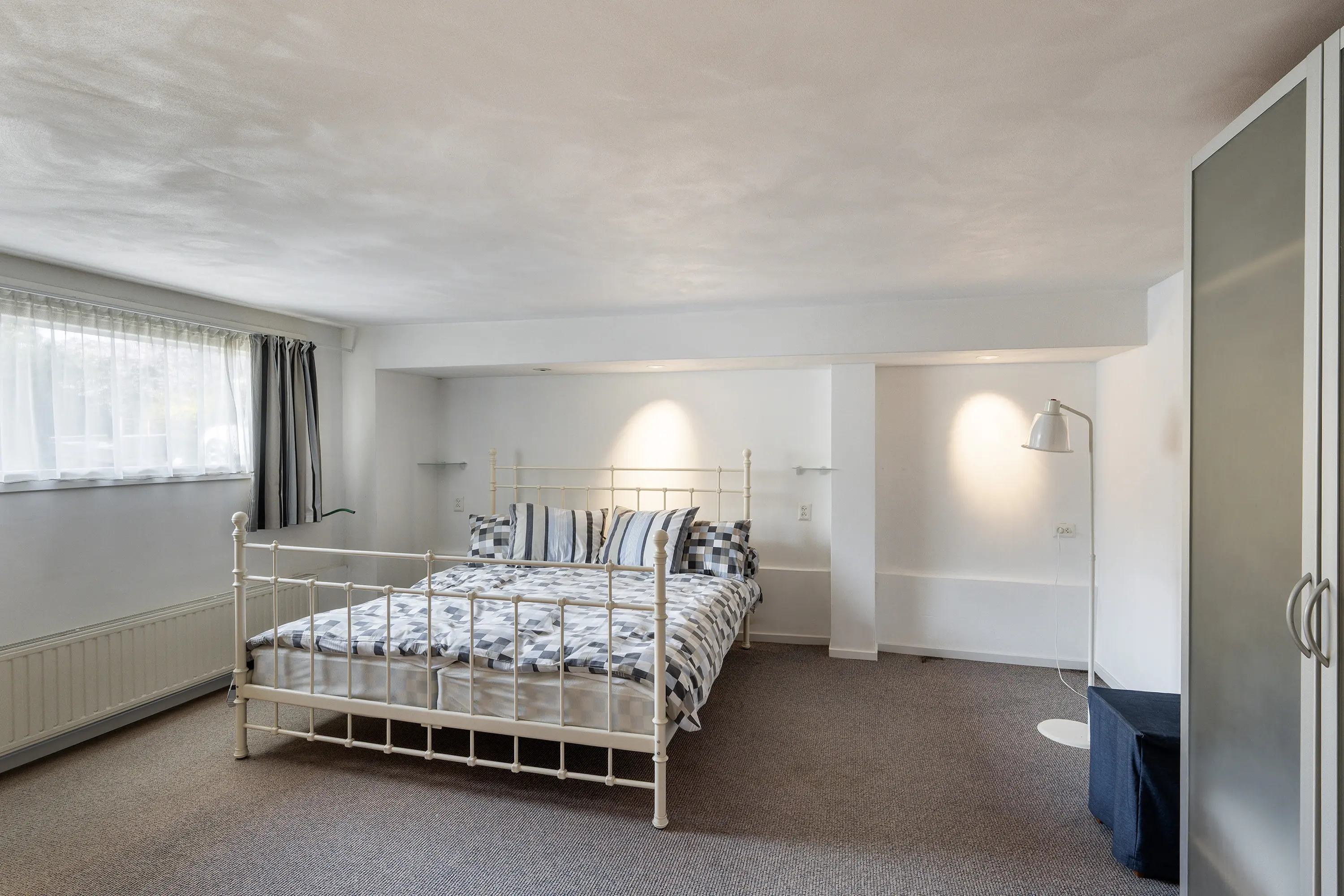 Op de verdieping vindt u een riante slaapkamer met vaste kastruimte (ideaal als ruime inloopkast), airconditioning en badkamer ensuite, ingericht met inloopdouche, wastafelmeubel en toilet.
