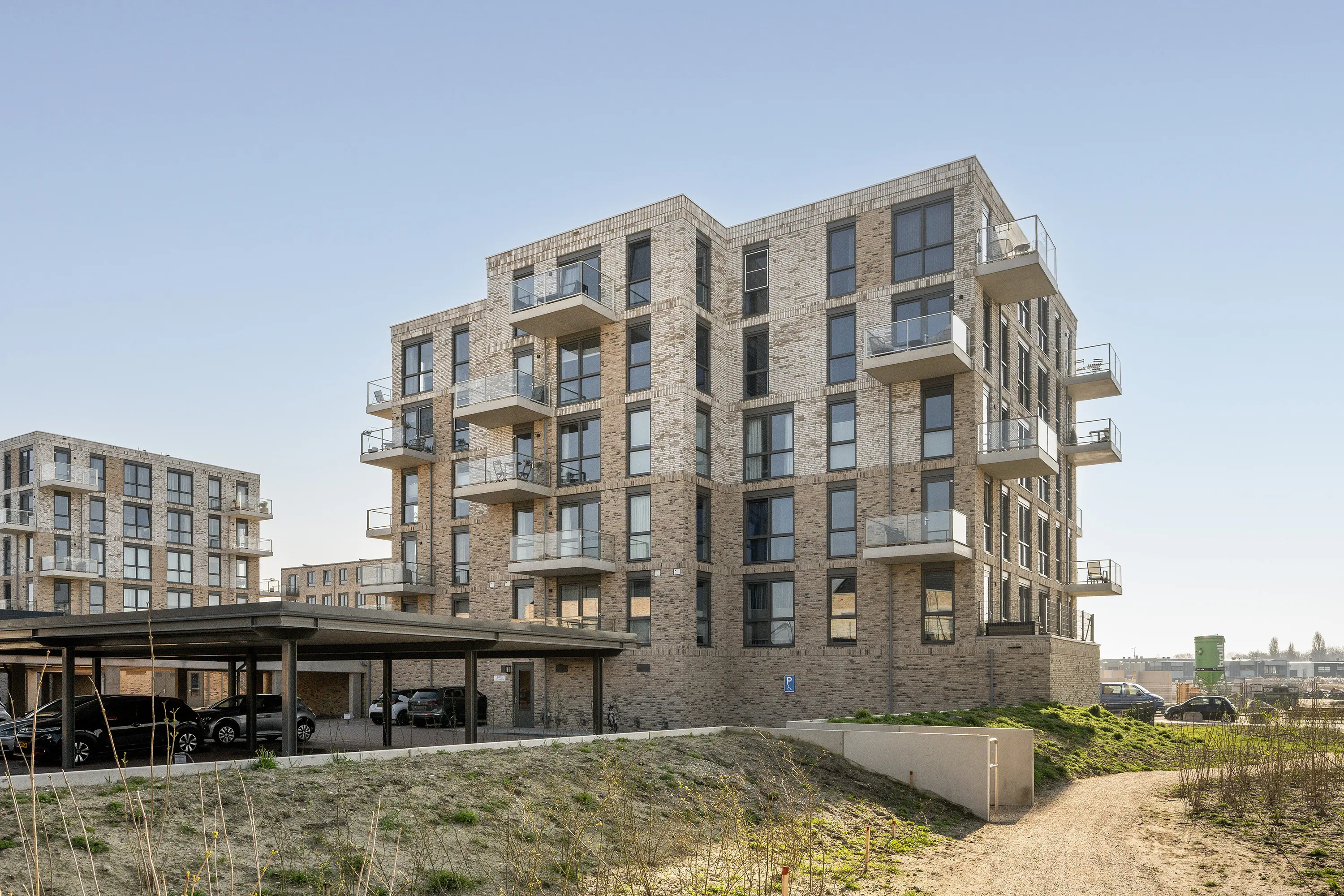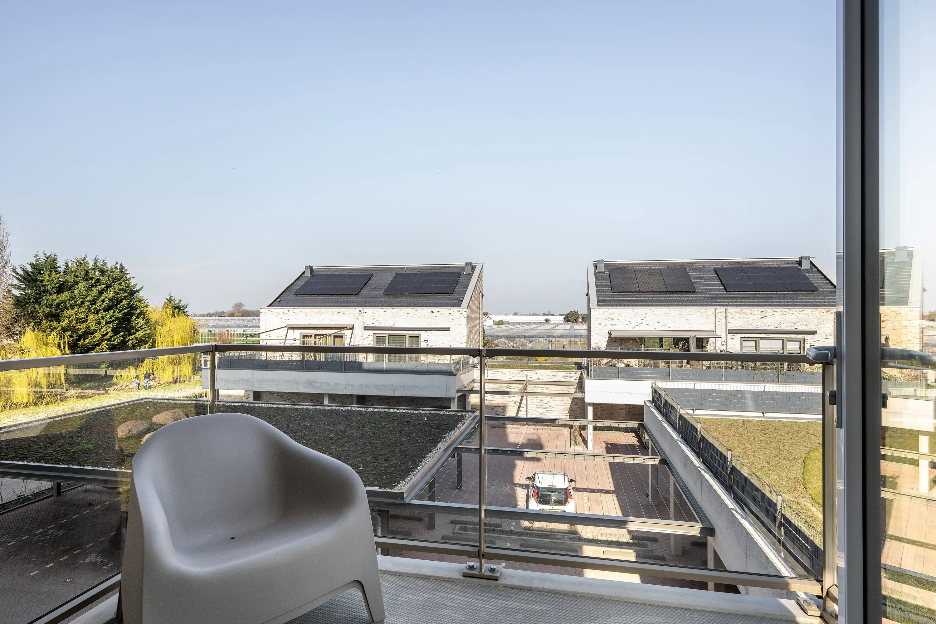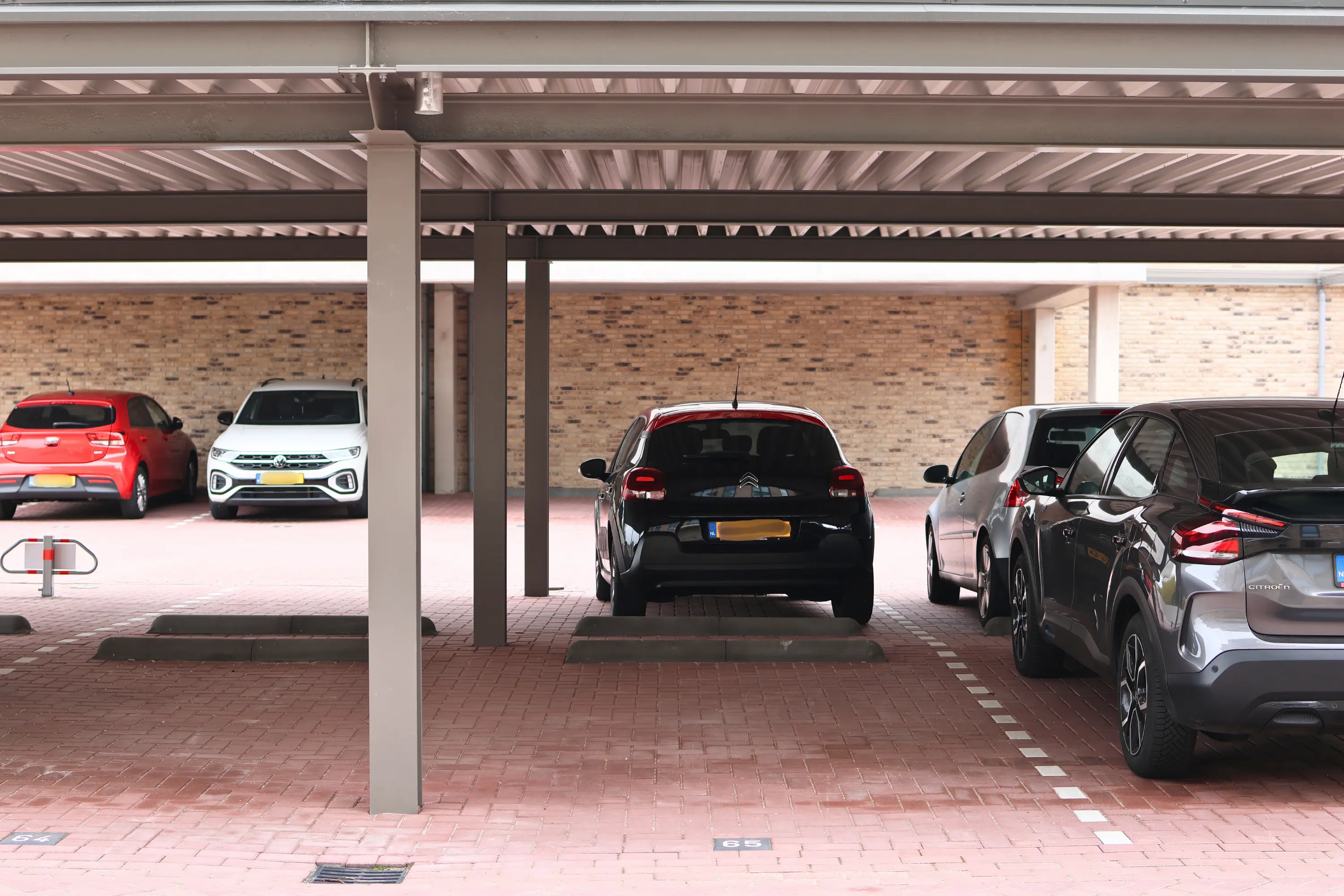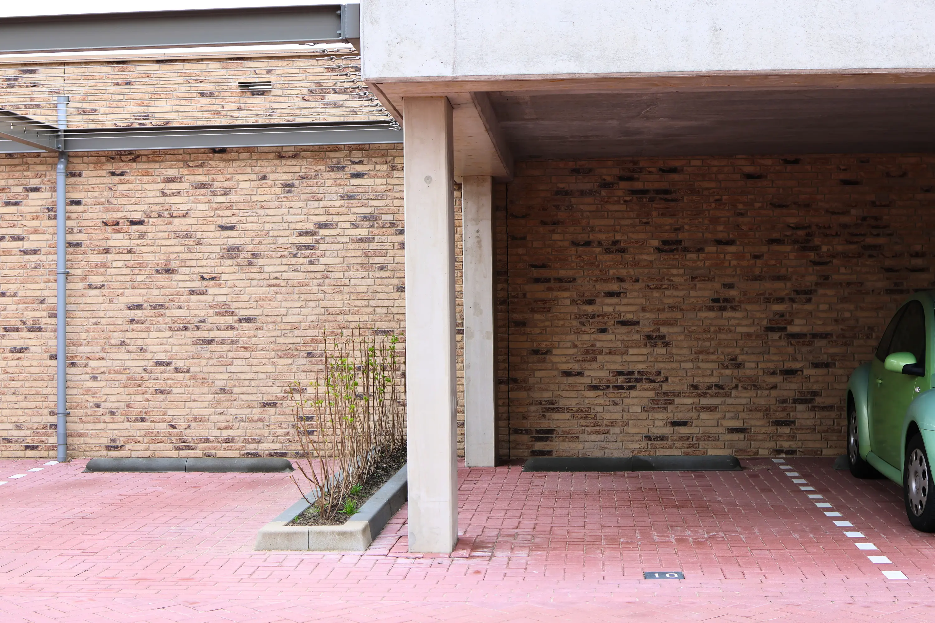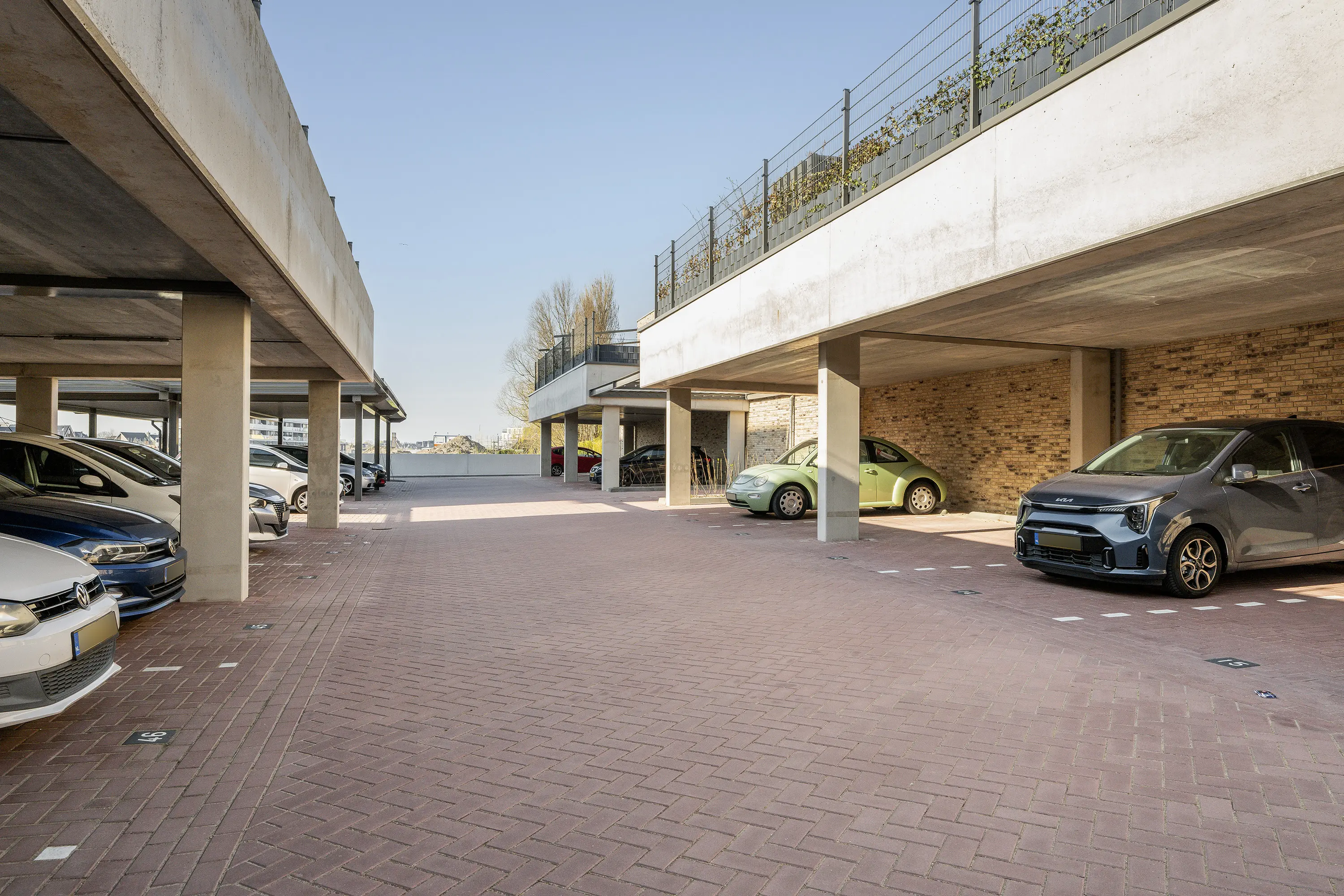 Op het eigen terrein van de twee appartementencomplexen beschik je over twee eigen parkeerplaatsen onder een carport.
