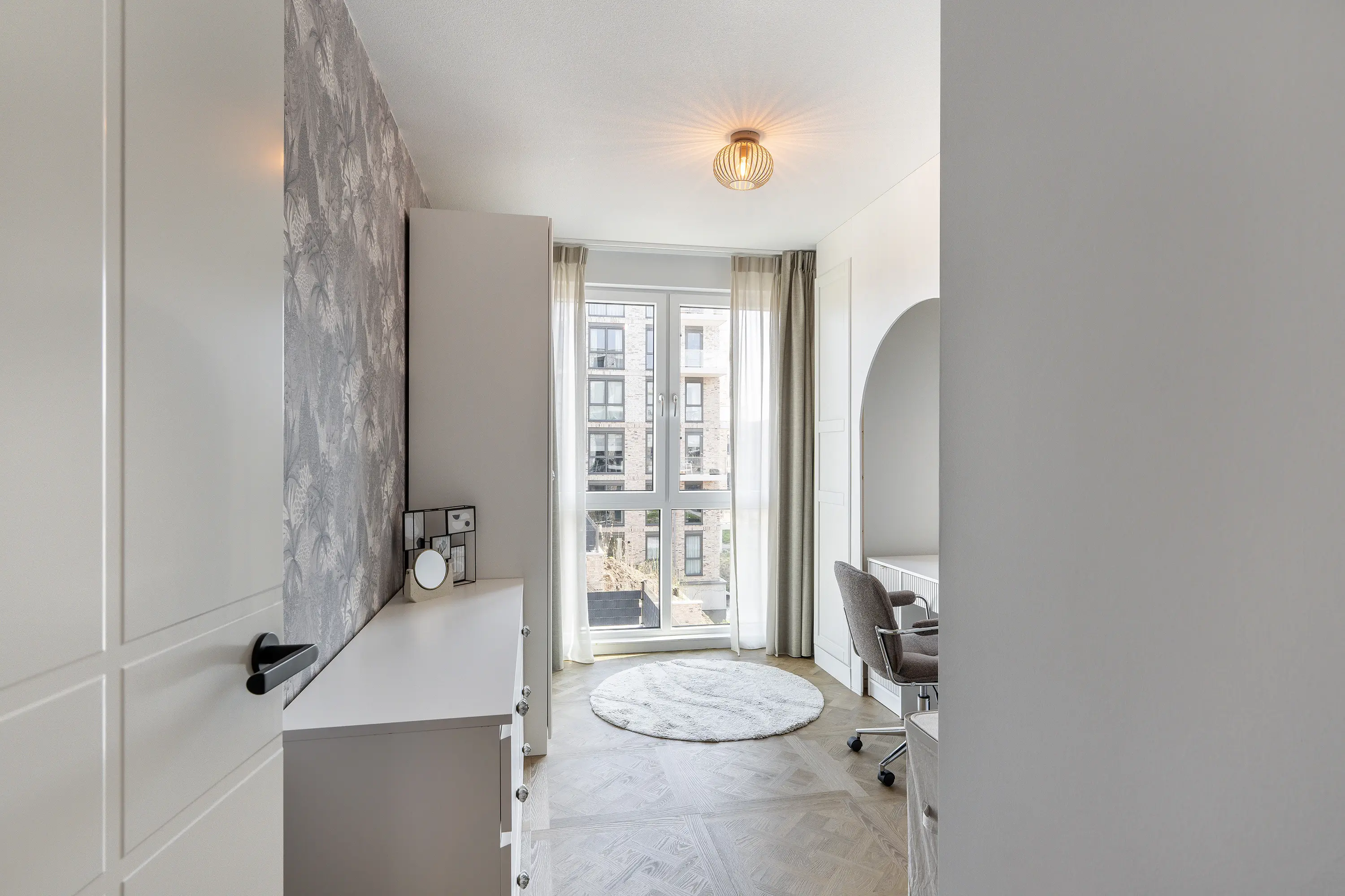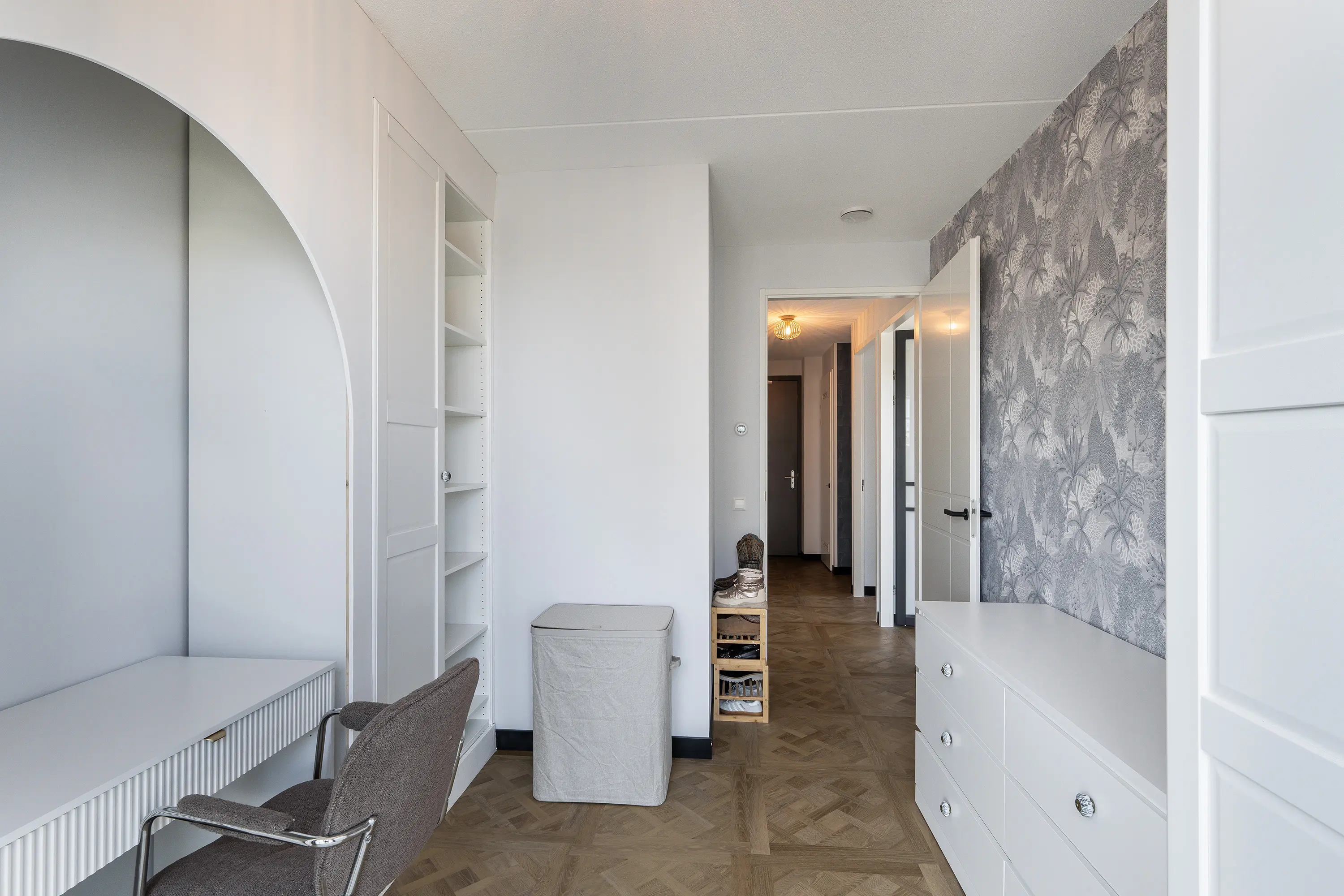 Een absolute plus is de tweede kamer. Deze kan optimaal gebruikt worden als thuiskantoor, hobbykamer of inloopkast. De kamer voelt licht en ruim dankzij de bijna kamerhoge ramen.