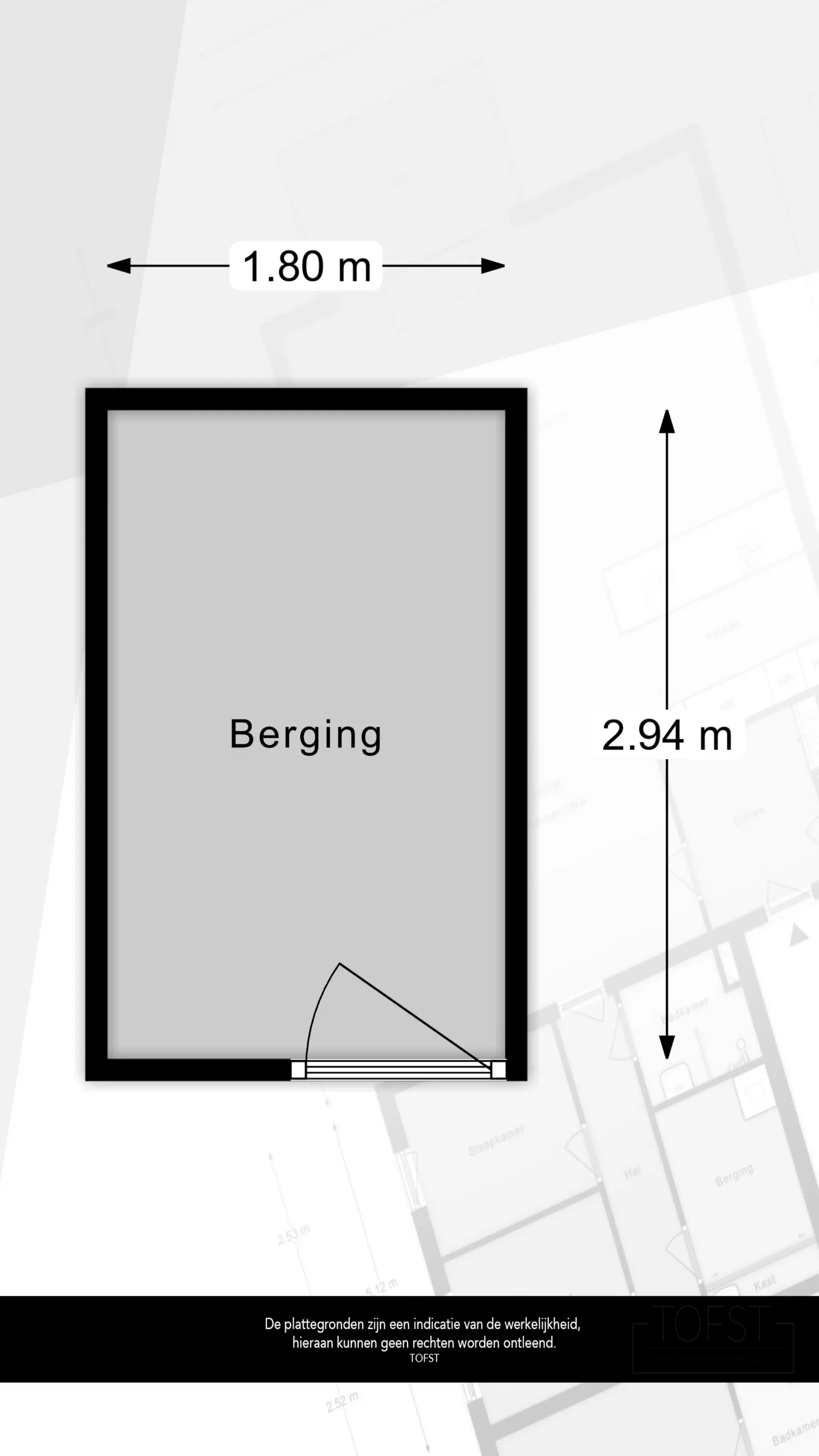 Bij het appartement hoort een privé berging (ca. 1,80 m x 2,94 m), ideaal voor fietsen, opslag of seizoensspullen.