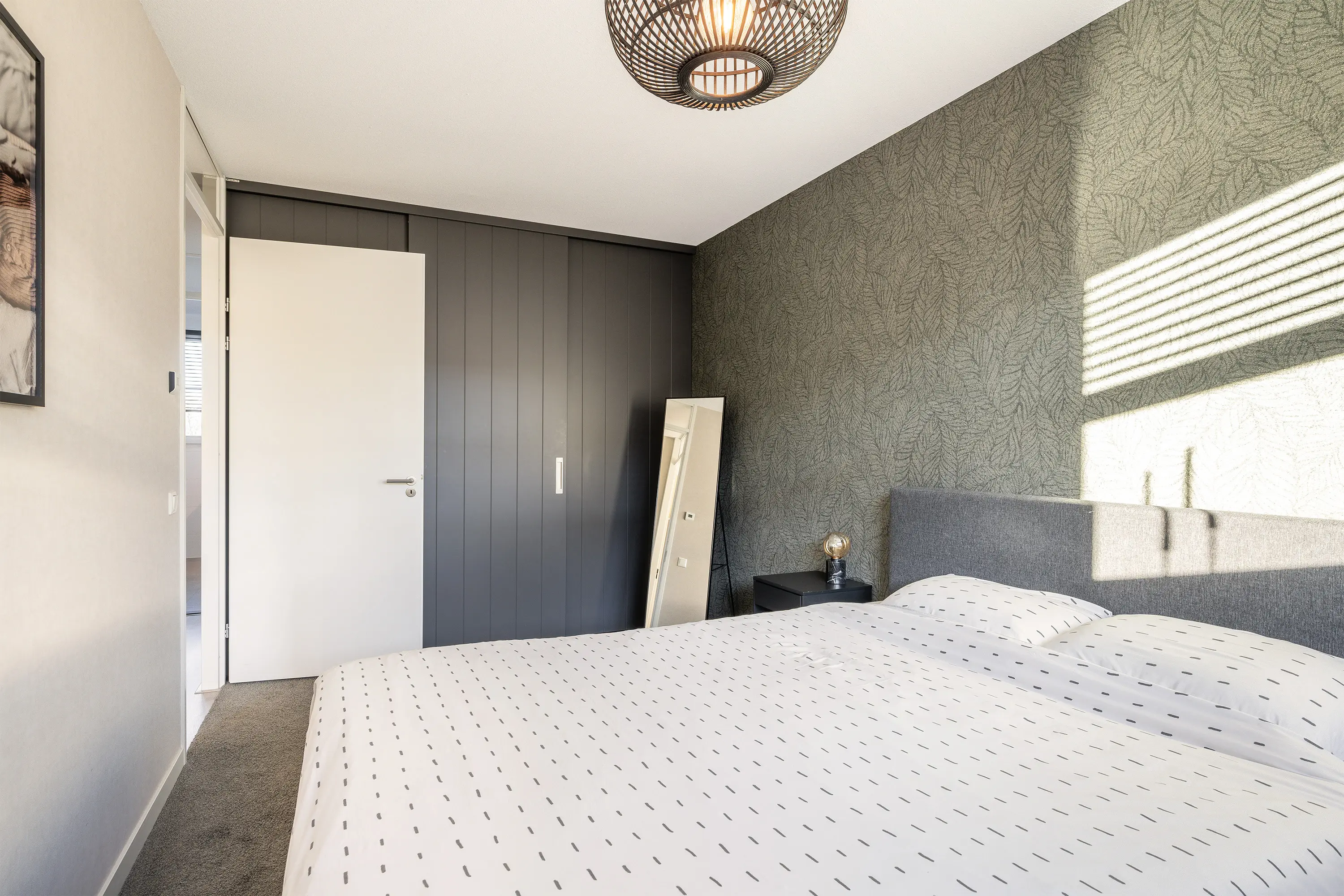 De hoofdslaapkamer is gelegen aan de achterzijde van de woning en beschikt over een ruime raampartij wat zorgt voor veel natuurlijke lichtinval. Daarnaast is de kamer voorzien van een vaste kastenwand, ideaal voor het opbergen van uw kleding.
