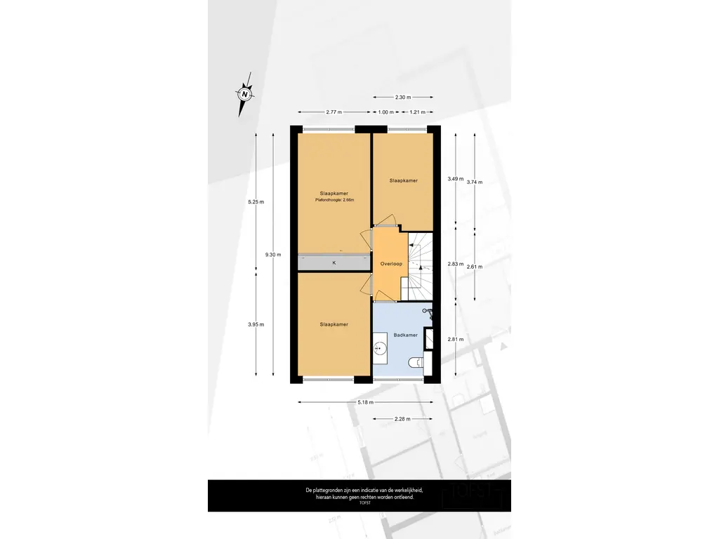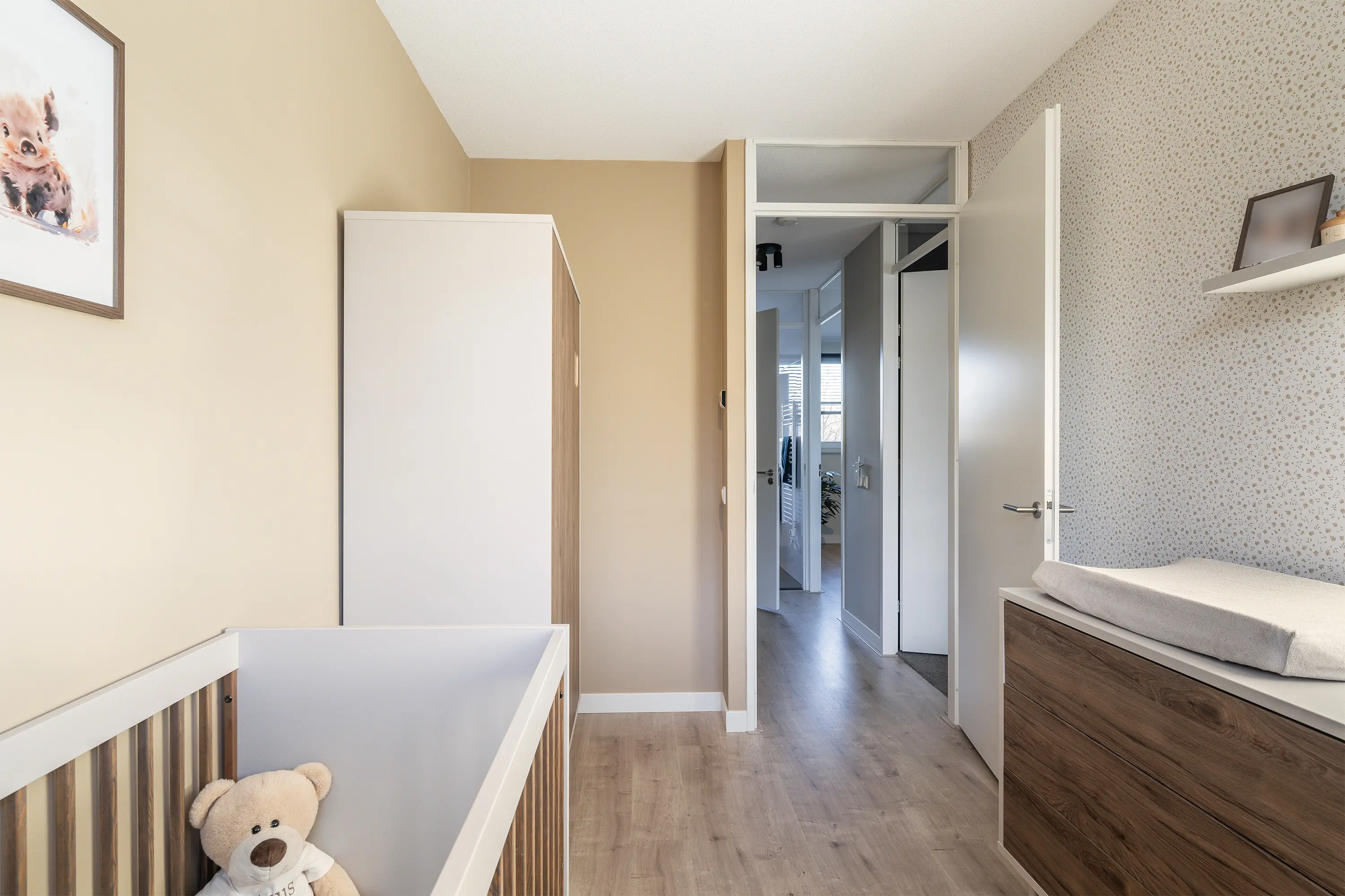 De tweede slaapkamer bevindt zich eveneens aan de achterzijde van de woning en is momenteel in gebruik als kinderkamer en is licht en praktisch van formaat.