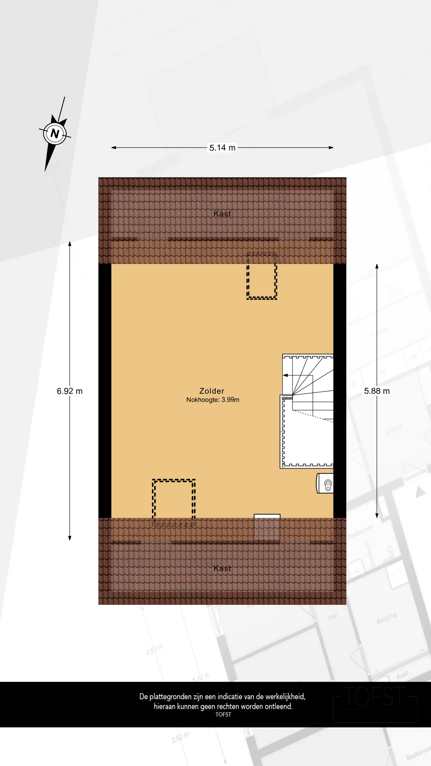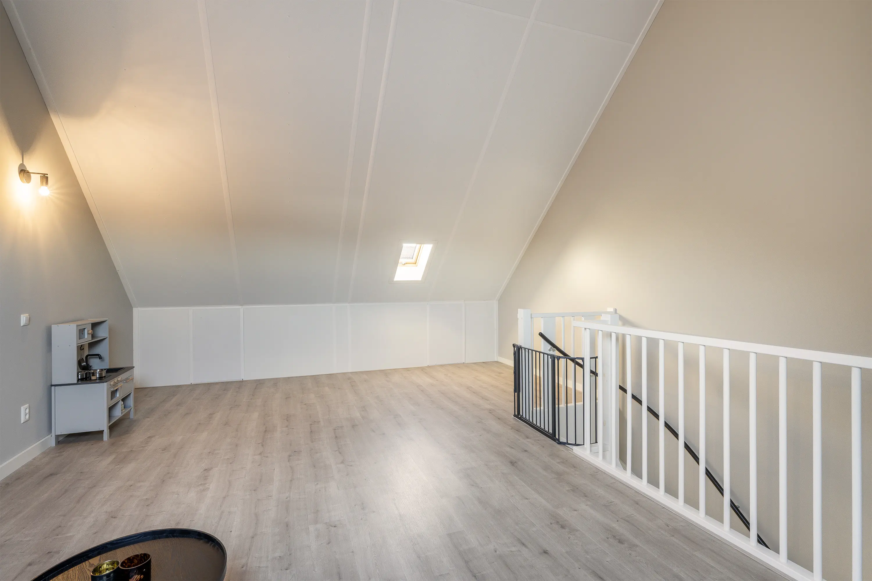 De tweede verdieping is momenteel open ingedeeld en beschikt over twee dakramen. Deze verdieping kan eenvoudig worden verdeeld in een vierde en zelfs vijfde slaapkamer, maar is ook uitstekend te gebruiken als hobbykamer of werkplek, zoals bijvoorbeeld een salon aan huis.
